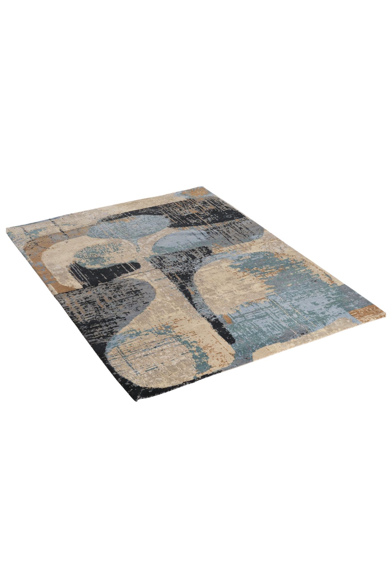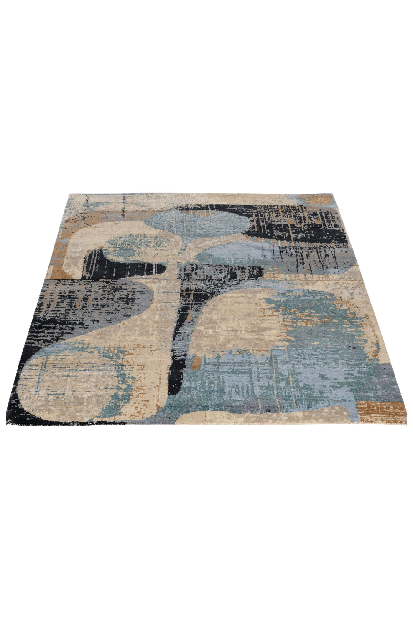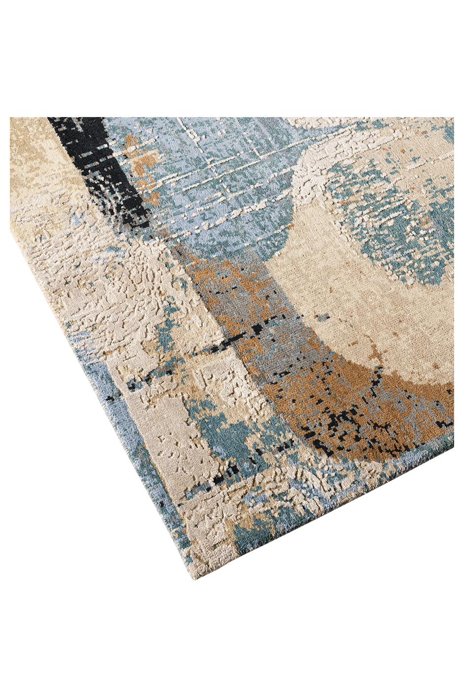 Dieser moderne, handgeknüpfte Teppich ist ein abstraktes Teppichkunstwerk am Boden. Der Hintergrund des Teppichs ist aus strapazierfähiger, von Hand versponnener Hochlandwolle, die farbigen Partien sind aus bester, handversponnener Naturseide geknüpft. Die hochwertigen Materialien und die kontrollierten Farben sorgen für Qualität und Strapazierfähigkeit des Teppichs. Wir empfehlen unter unsere handgeknüpften Teppiche eine Unterlage zu legen. Diese sind für sämtliche Böden und Fußbodenheizung verwendbar.