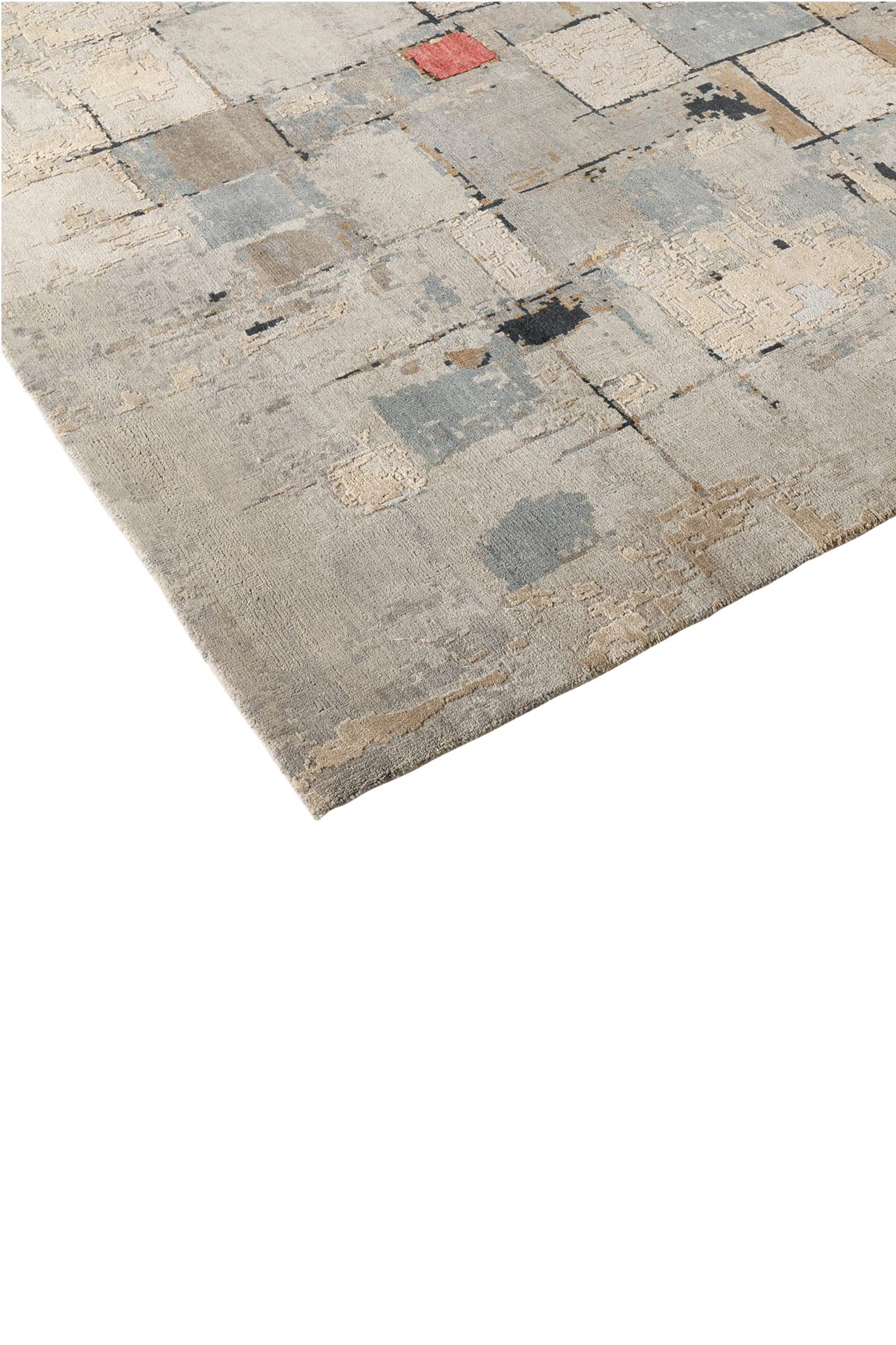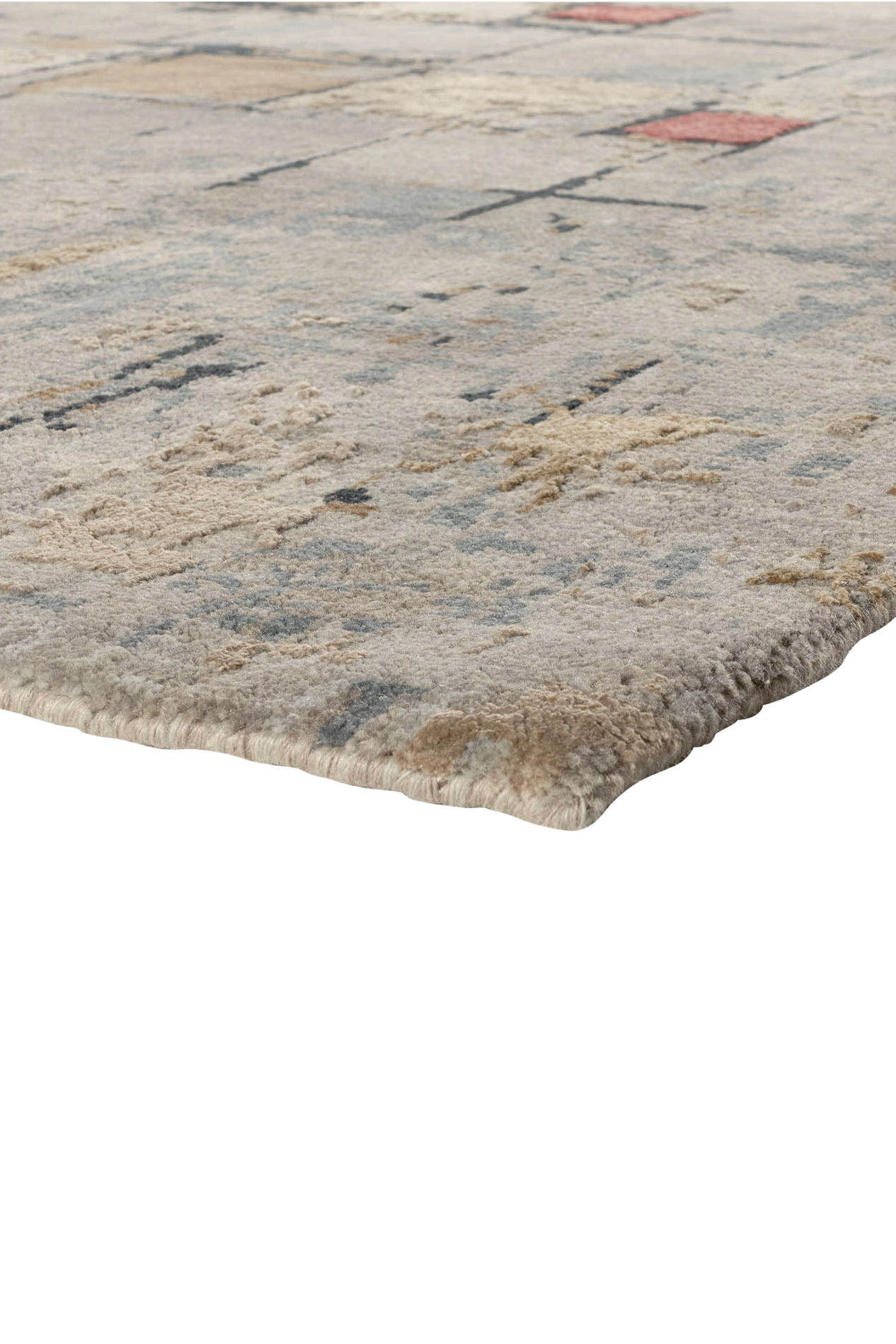 Dieser moderne, handgeknüpfte Teppich ist ein abstraktes Teppichkunstwerk am Boden. Der Hintergrund des Teppichs ist aus strapazierfähiger, von Hand versponnener Hochlandwolle, die farbigen Partien sind aus bester, handversponnener Naturseide geknüpft. Die hochwertigen Materialien und die kontrollierten Farben sorgen für Qualität und Strapazierfähigkeit des Teppichs. Wir empfehlen unter unsere handgeknüpften Teppiche eine Unterlage zu legen. Diese sind für sämtliche Böden und Fußbodenheizung verwendbar.