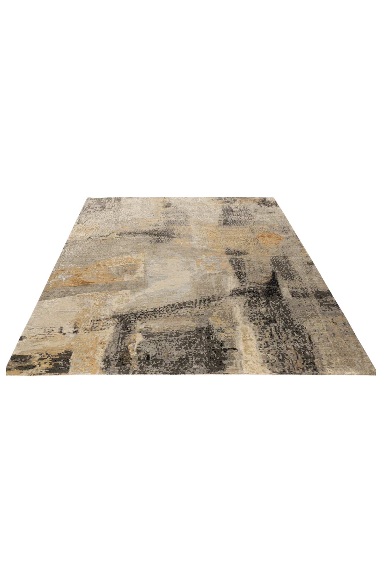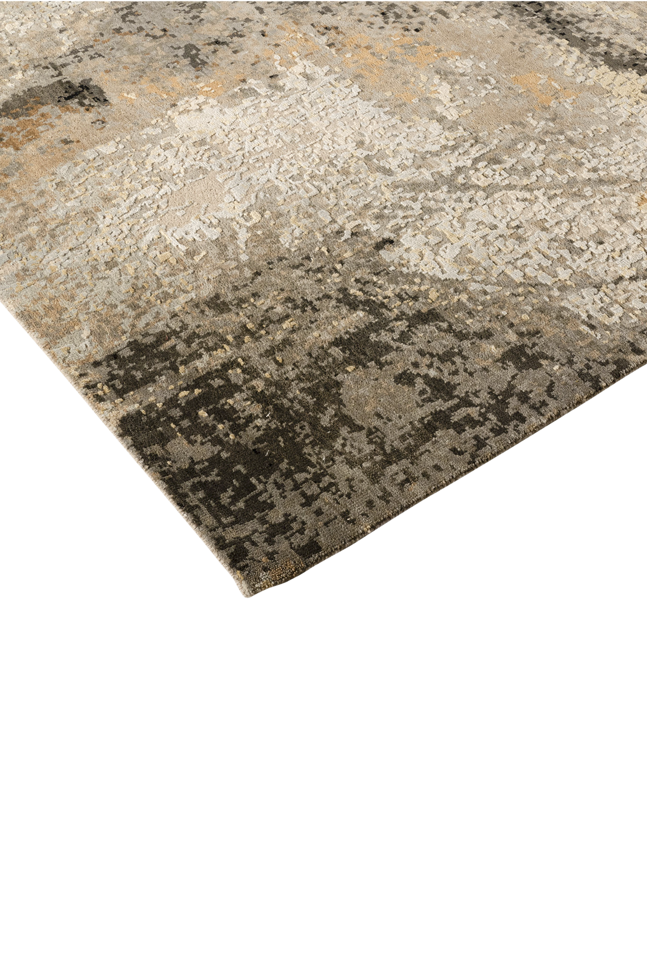 Handgeknüpft aus Naturseide und feinster Schurwolle, bietet „Canvas“ nicht nur visuelle, sondern auch haptische Tiefe. Jeder Knoten erzählt von Handwerk – jede Nuance von künstlerischer Absicht. Der Teppich wirkt wie ein Kunstwerk, das nicht an die Wand, sondern in den Raum gehört.