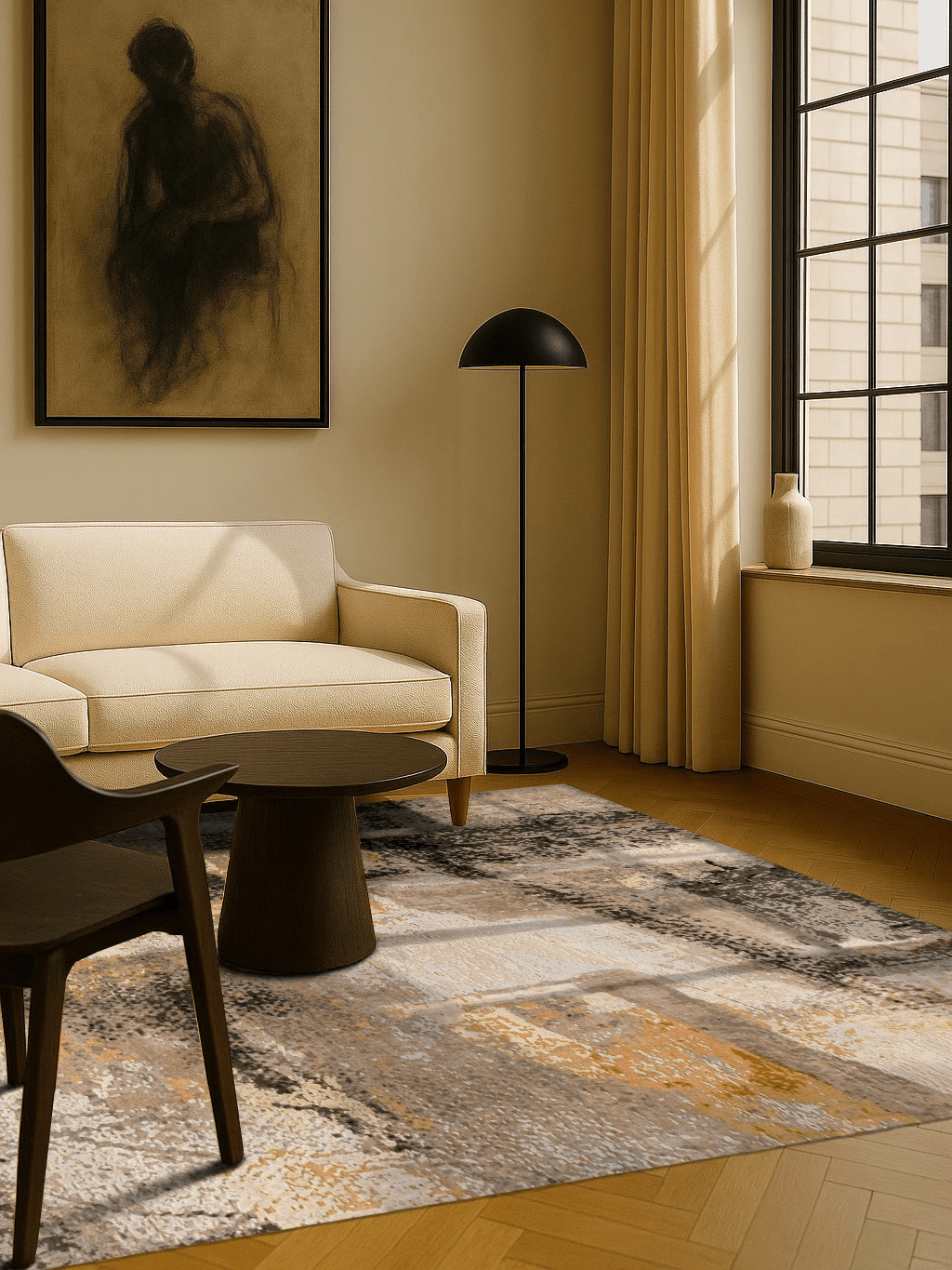 Mit „Canvas“ wird der Teppich zur Leinwand: Dieses exklusive Designstück fängt das Gefühl eines Ateliers in SoHo ein – rau, reduziert, voller Charakter. Warme Beige- und Grautöne überlagern sich wie Schichten aus Farbe, Licht und Textur. Die weiche Unregelmäßigkeit erinnert an gespachtelte Flächen, an Farbfelder, an die stille Poesie urbaner Wände.