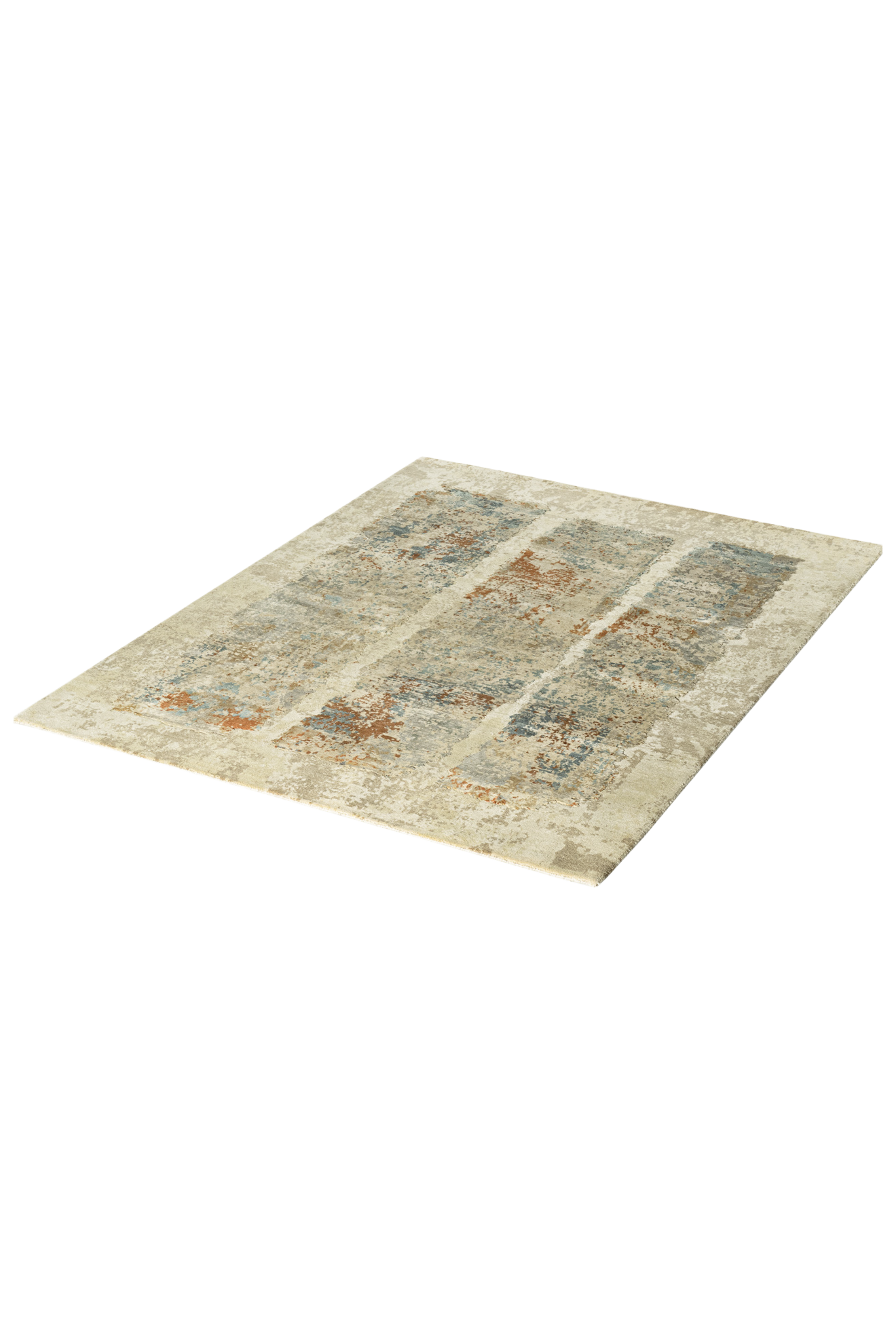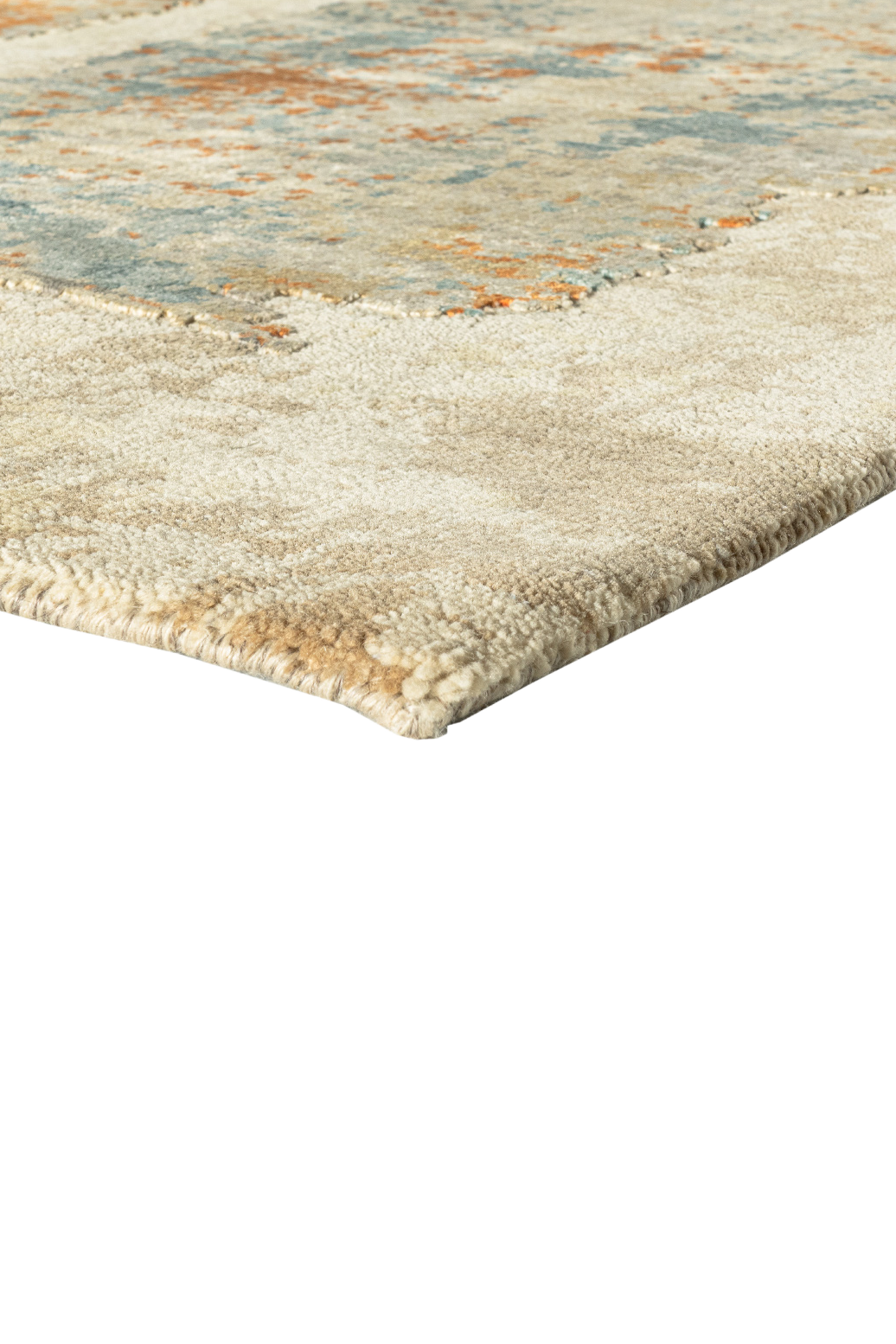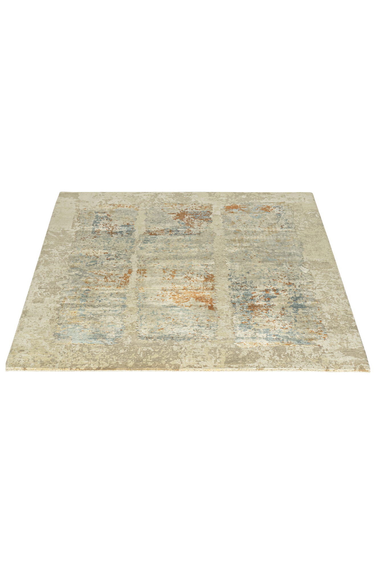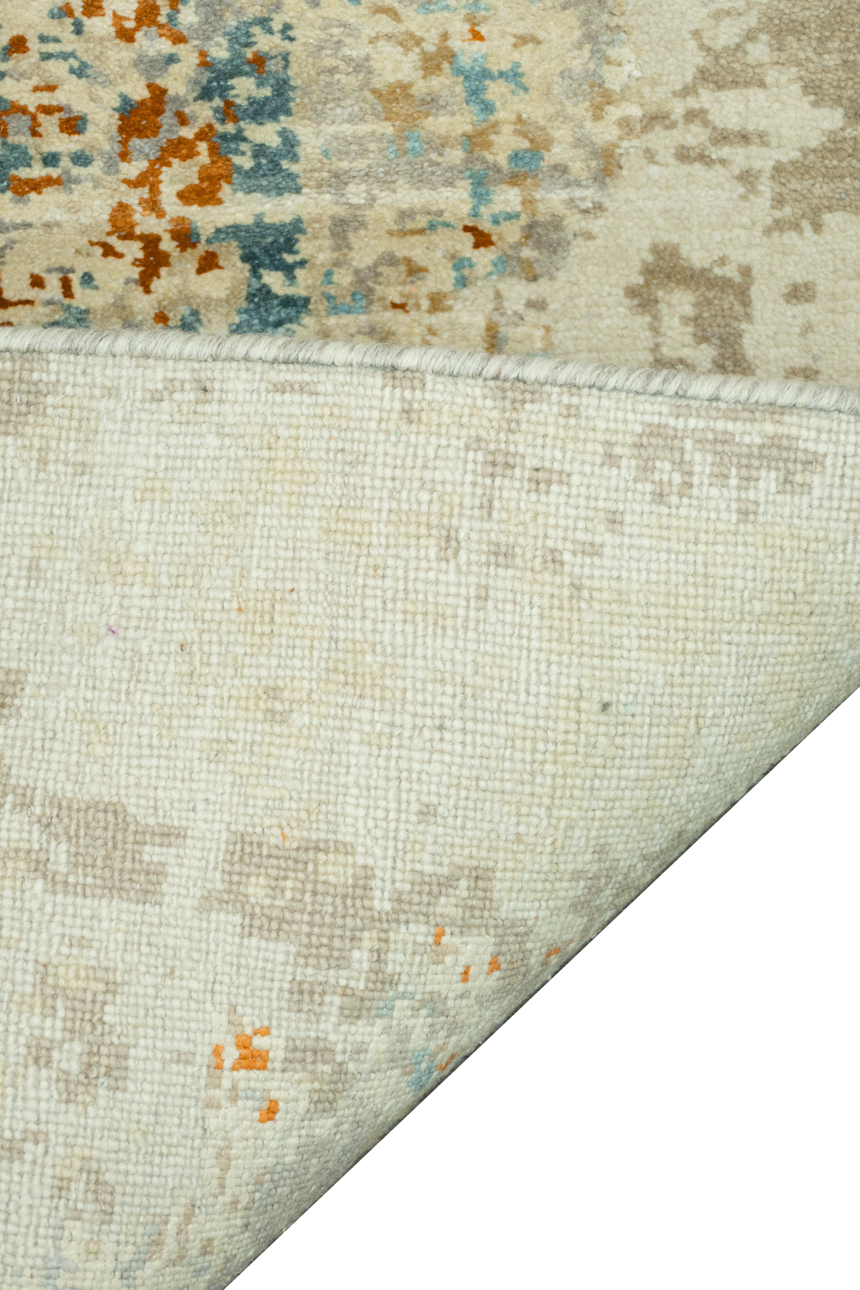 Dieser elegante Design-Teppich aus unserer exklusiven Jordan-Design Collection hat einen goldfarbenen Untergrund, der dem Teppich eine schöne Wärme verleiht. Man erkennt drei Lichkegel, die in dem goldenen Licht stehen. Das Licht bricht in verschiedene Farbkegel. Der abstrakte Teppich sieht aus wie ein Ölgemälde auf einer Leinwand, was von einem berühmten Maler gemalt wurde. Der Betrachter kann vielerlei Bedeutung in dem Teppichbild sehen. Durch die verwendete, beste Naturseide bekommt der Teppich einen edlen Glanz, denn die Seide liegt etwas höher im Flor, als hochwertige und von Hand versponnene Hochlandwolle. Von talentierten Knüpfern wurde das Unikat in Indien sehr fein von Hand geknüpft und mit einer Schere von Hand konturgeschnitten. Aufgrund der hochwertigen Materialien ist der Teppich nicht nur ein optisches Hightlight, sondern auch qualitativ etwas besonderes und äußerst strapazierfähig.