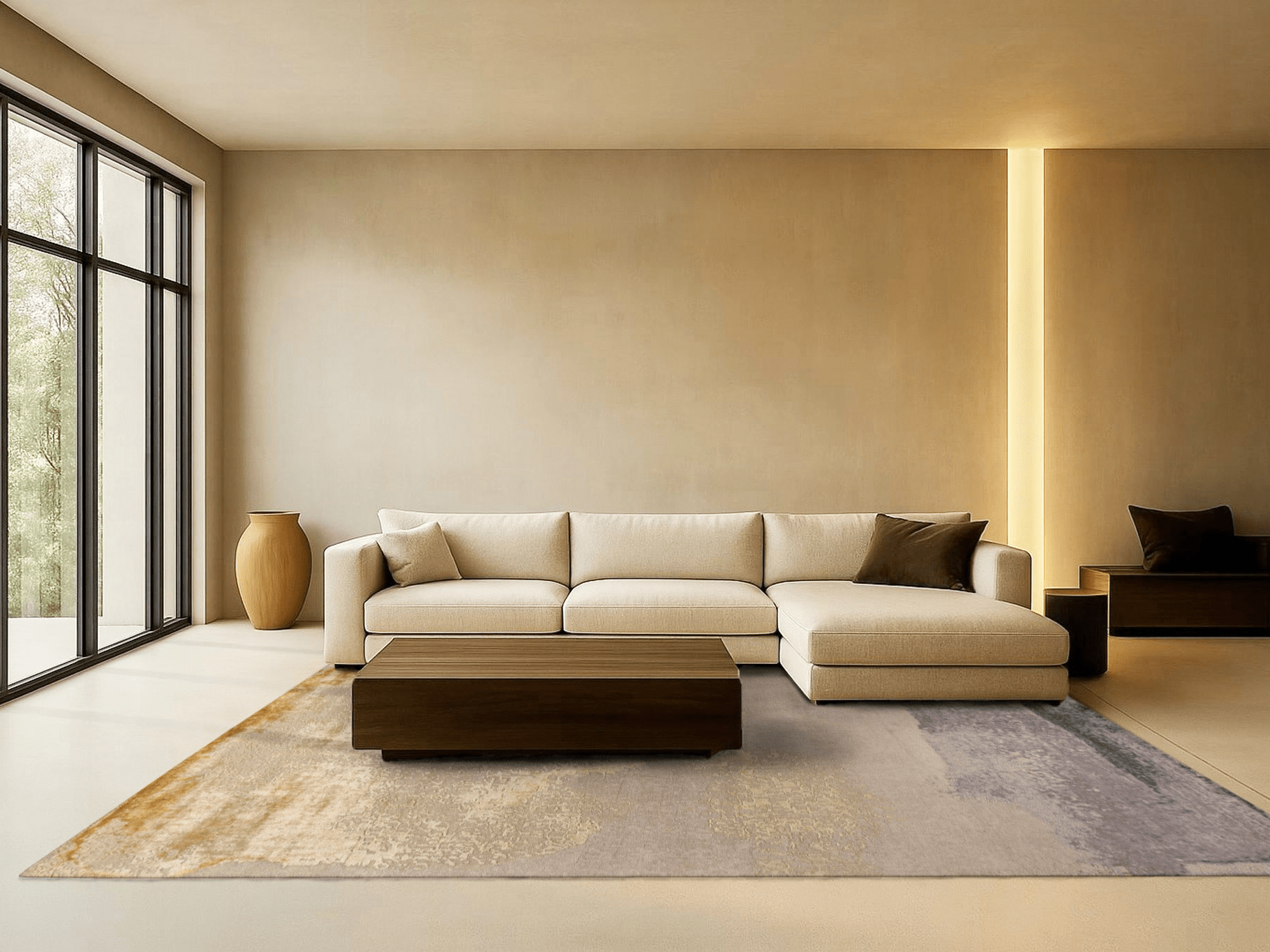 Dieser wunderschöne Design-Teppich aus der Jordan Collection zeigt ein modernes, elegantes Design. Die aufgelöste Zeichnung und die weichen Farben und Beige, Gold und Grau fließen weich ineinander über. Für den handgeknüpften Teppich wurde beste, Naturseide und Schurwolle verwendet. Von talentierten Knüpfern aus Indien wurde dieses Kunstwerk geknüpft. Die hochwertigen Materialien und die kontrollierten Farben sorgen für Qualität und Strapazierfähigkeit des Teppichs. Wir empfehlen eine rutschfeste Unterlage für unsere handgeknüpften Teppiche.