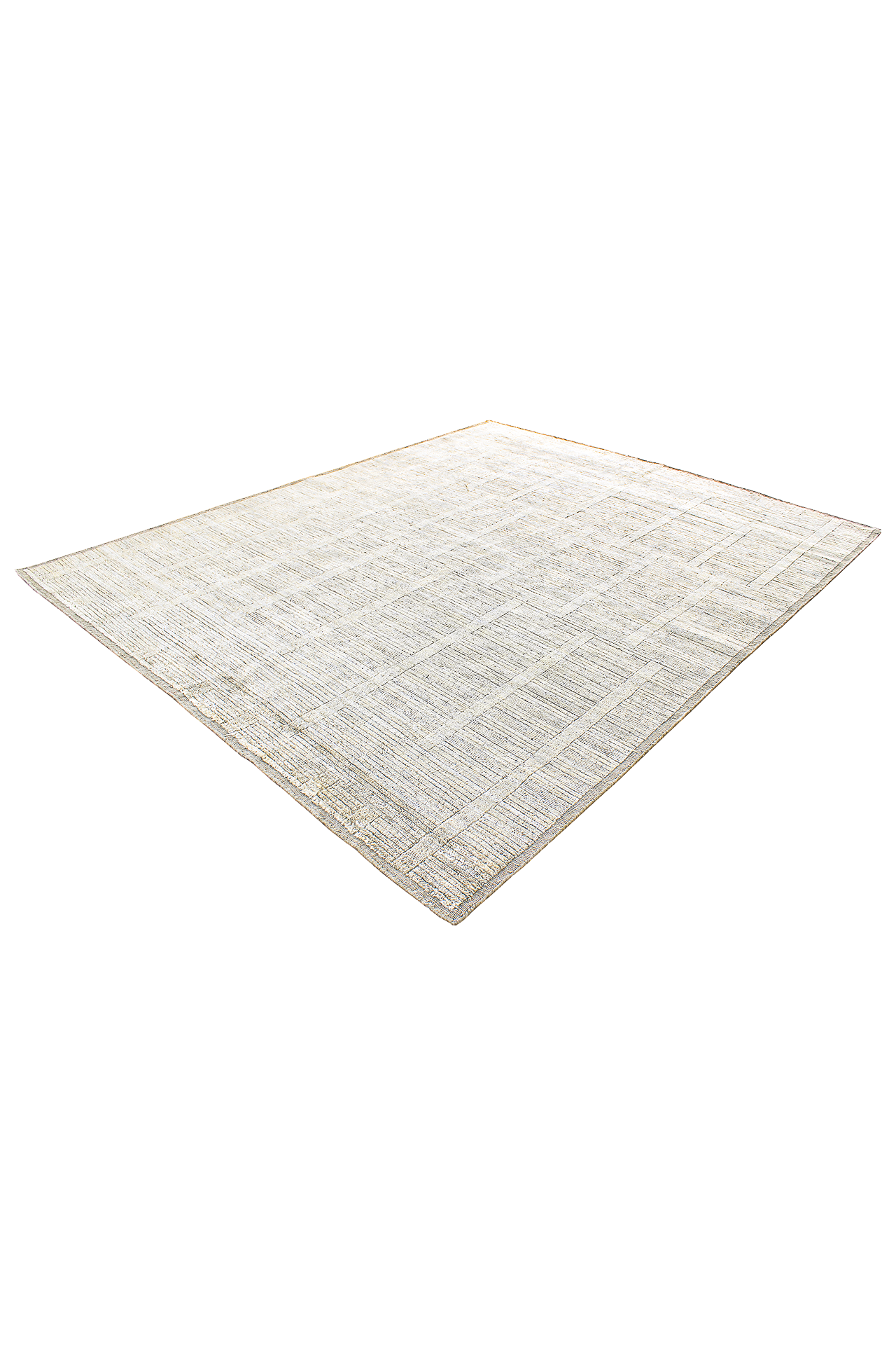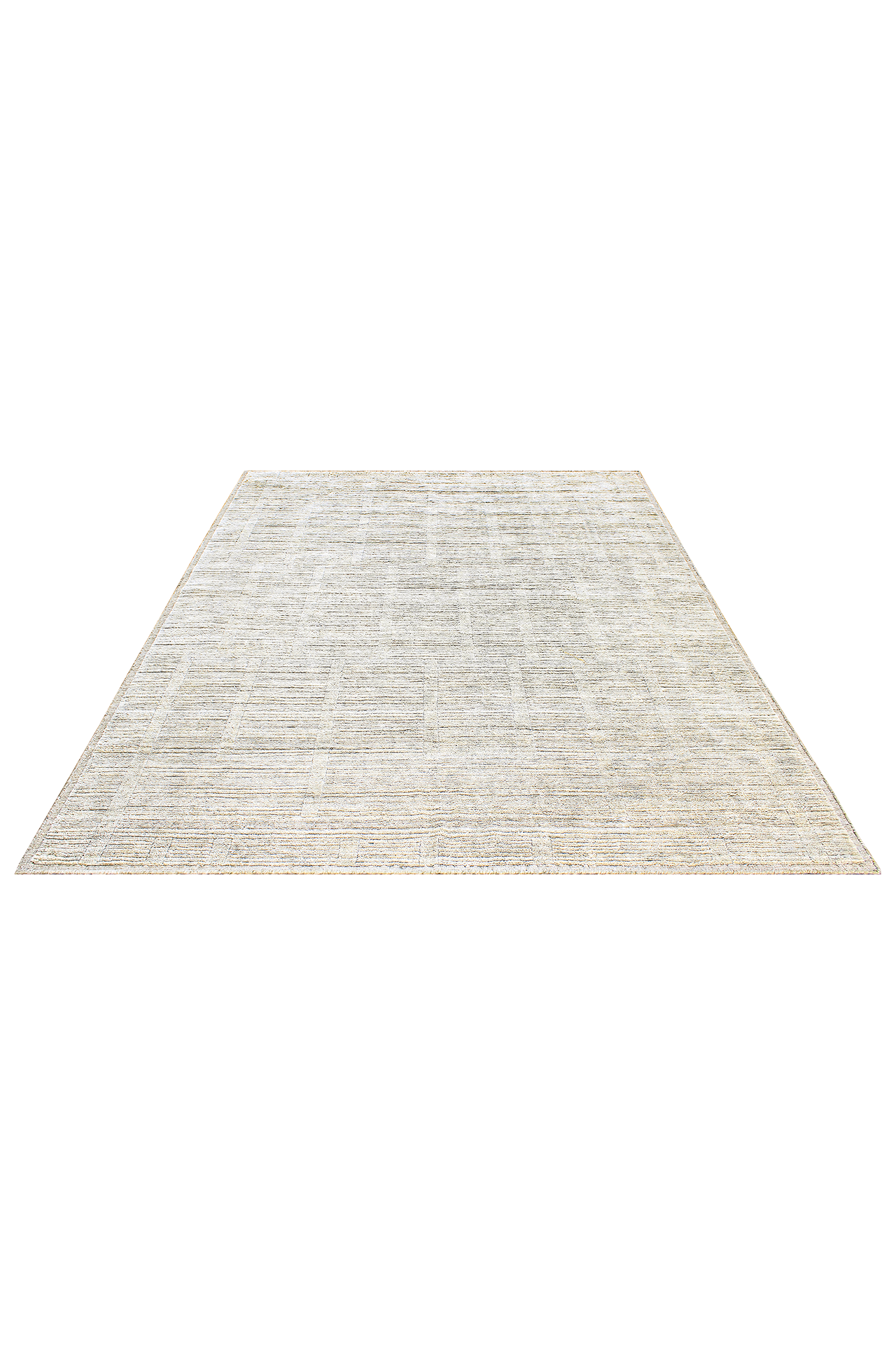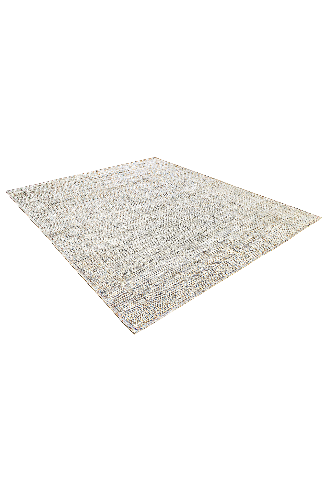 Der Teppich Hidden Geometry in Silber verbindet handwerkliche Präzision mit moderner Zurückhaltung. Aus feinster Schurwolle gefertigt, wirkt er klar und kühl. Eine tieferliegende Bordüre erinnert an die Technik handgearbeiteter Kelims und rahmt den Teppich dezent ein. Das kaum erkennbare geometrische Muster im Inneren sorgt für Raffinesse ohne Dominanz.