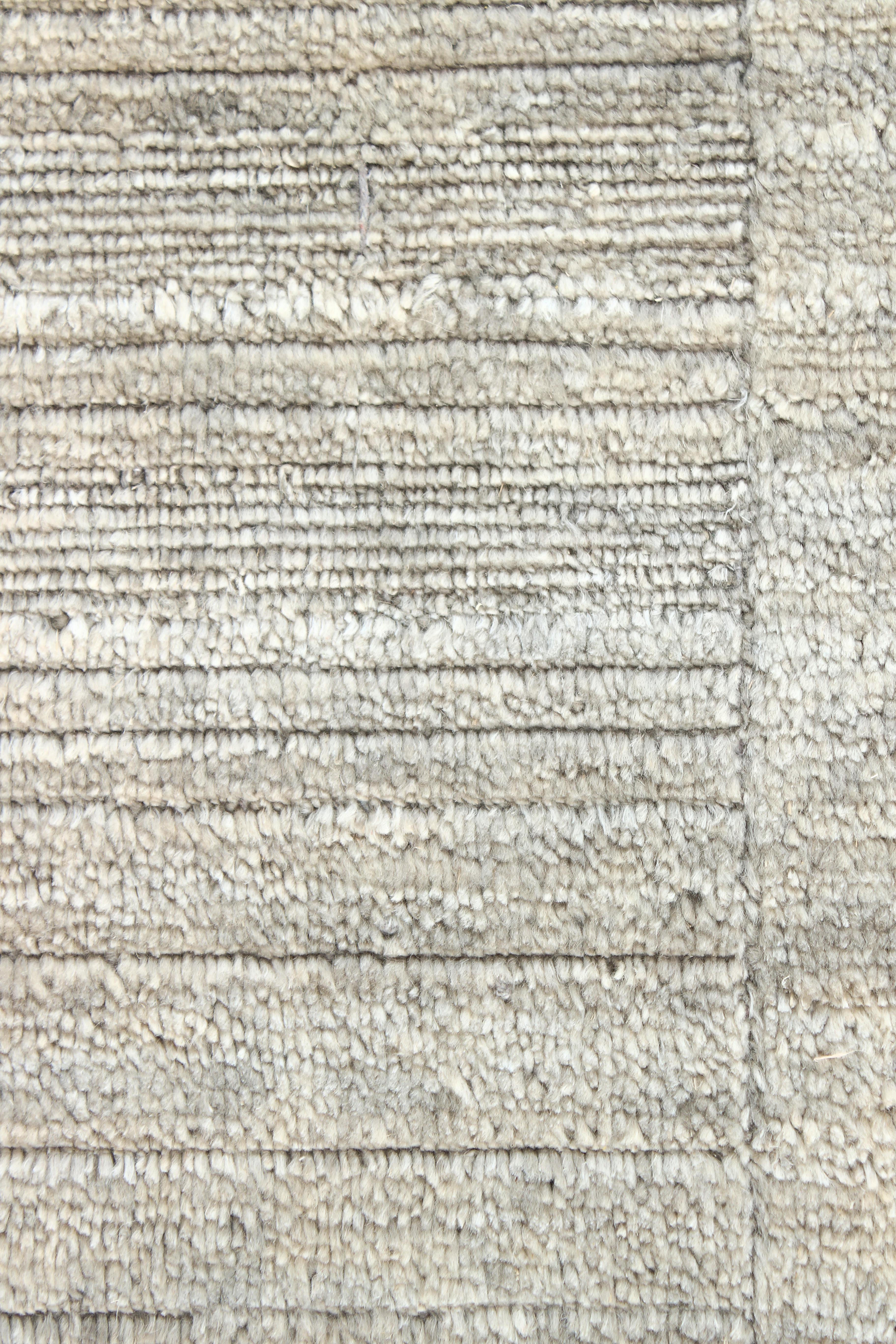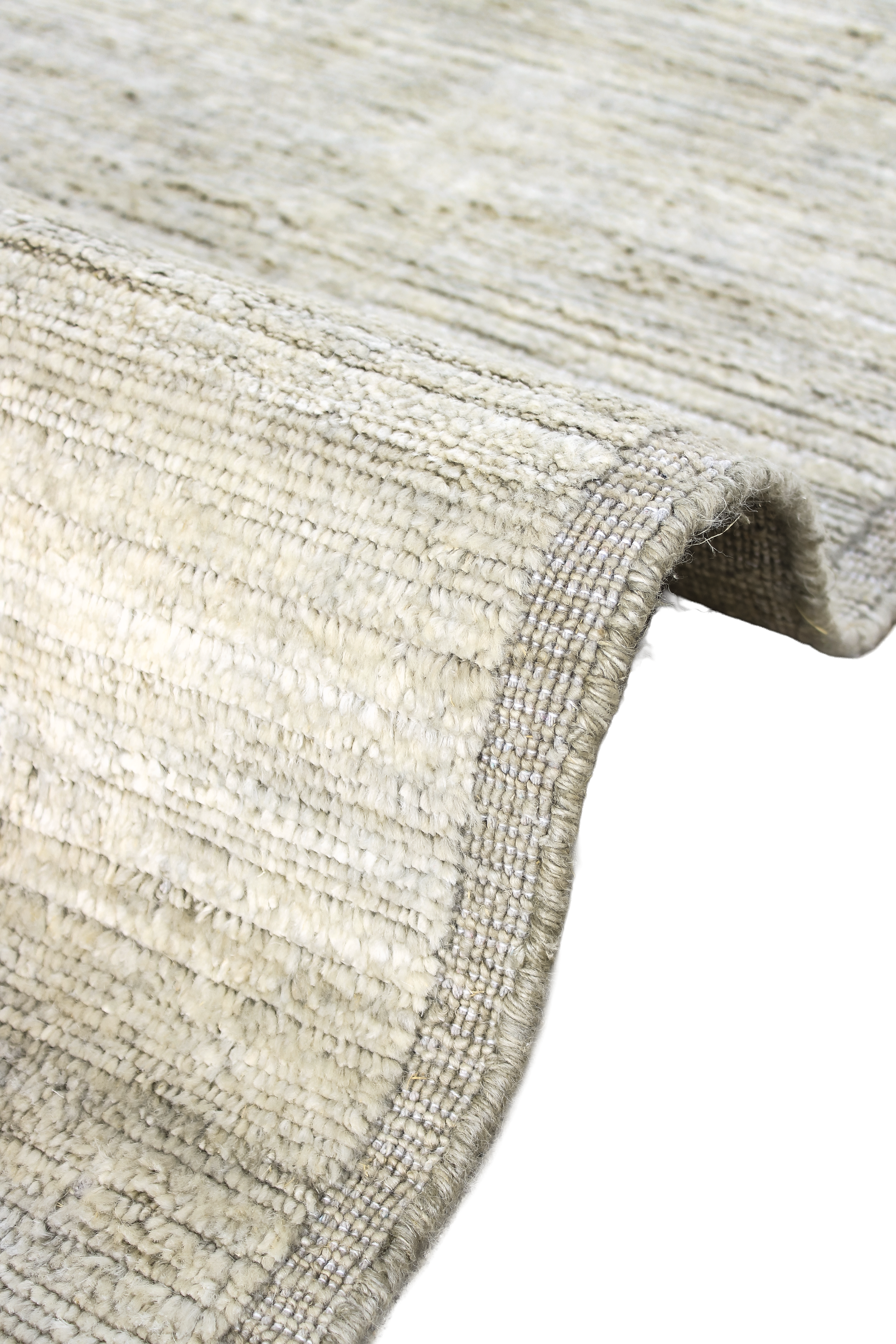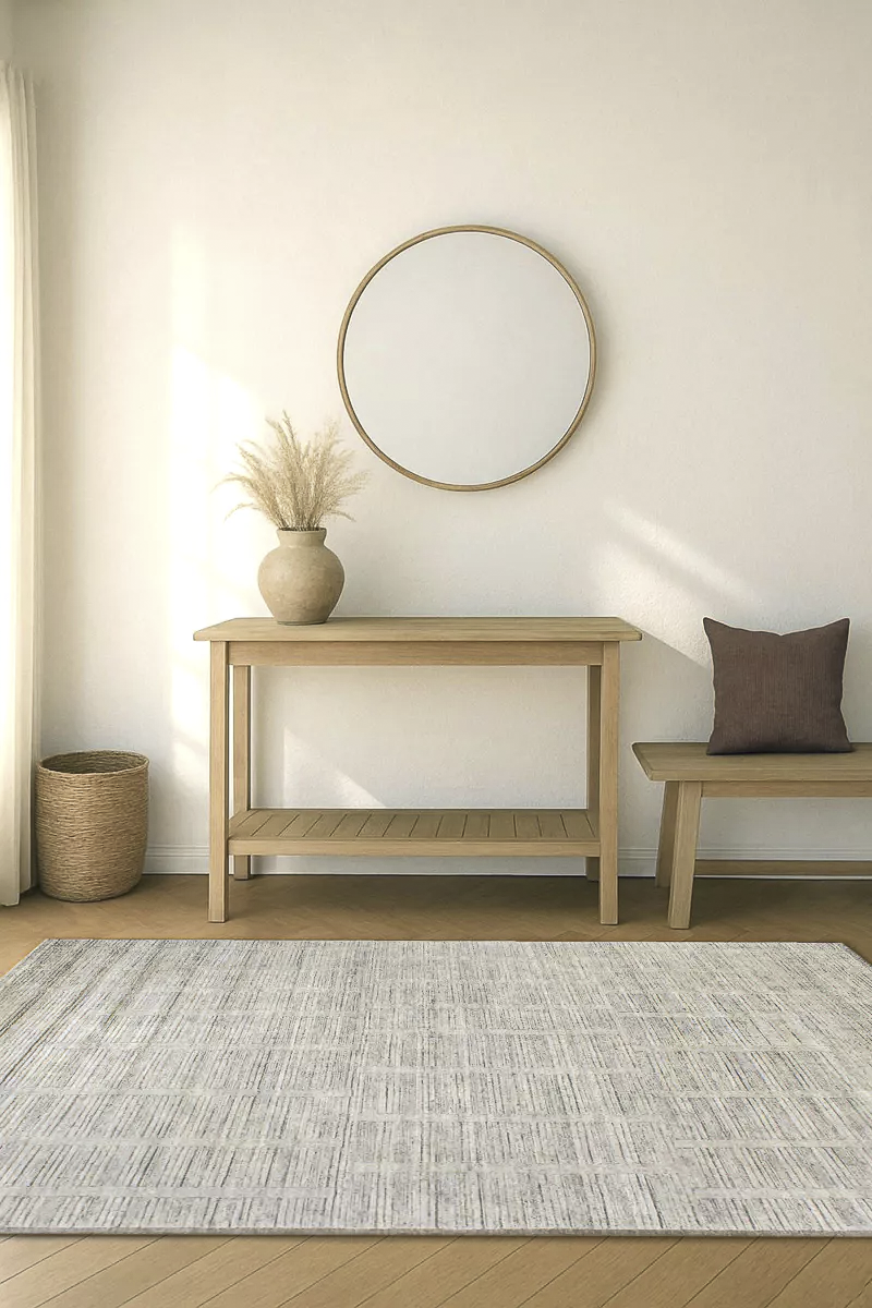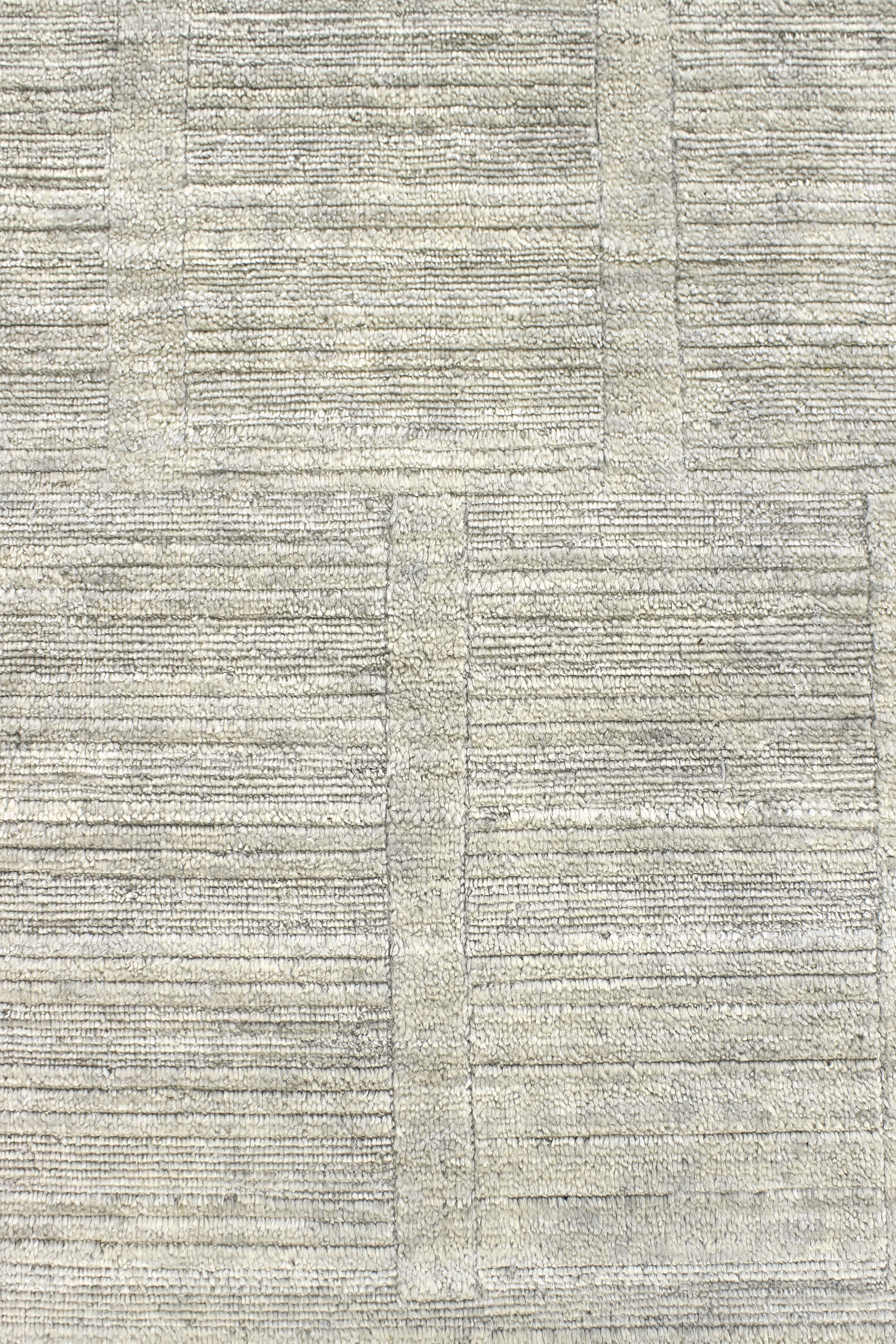 Der Teppich Hidden Geometry in Silber verbindet handwerkliche Präzision mit moderner Zurückhaltung. Aus feinster Schurwolle gefertigt, wirkt er klar und kühl. Eine tieferliegende Bordüre erinnert an die Technik handgearbeiteter Kelims und rahmt den Teppich dezent ein. Das kaum erkennbare geometrische Muster im Inneren sorgt für Raffinesse ohne Dominanz.