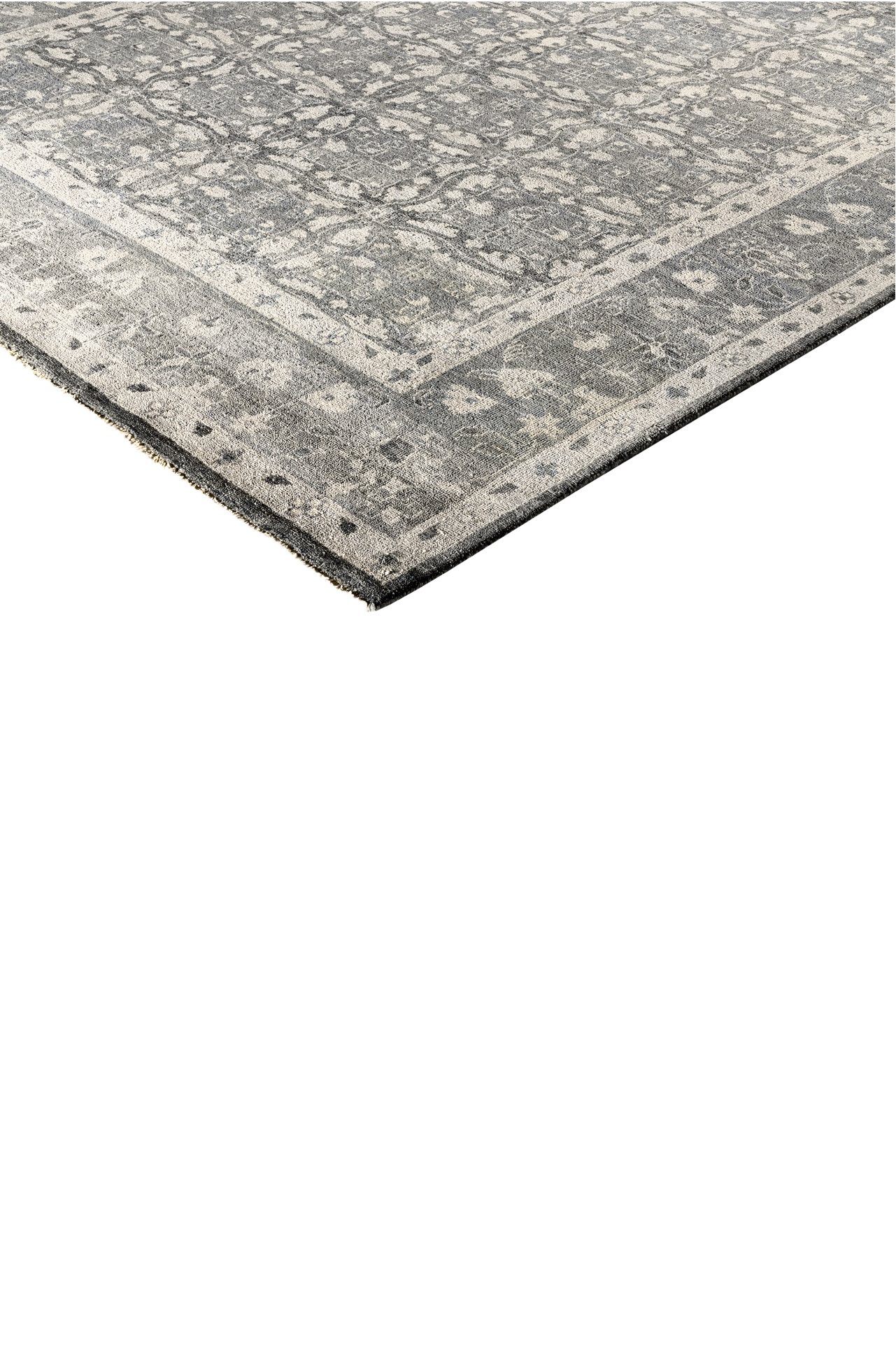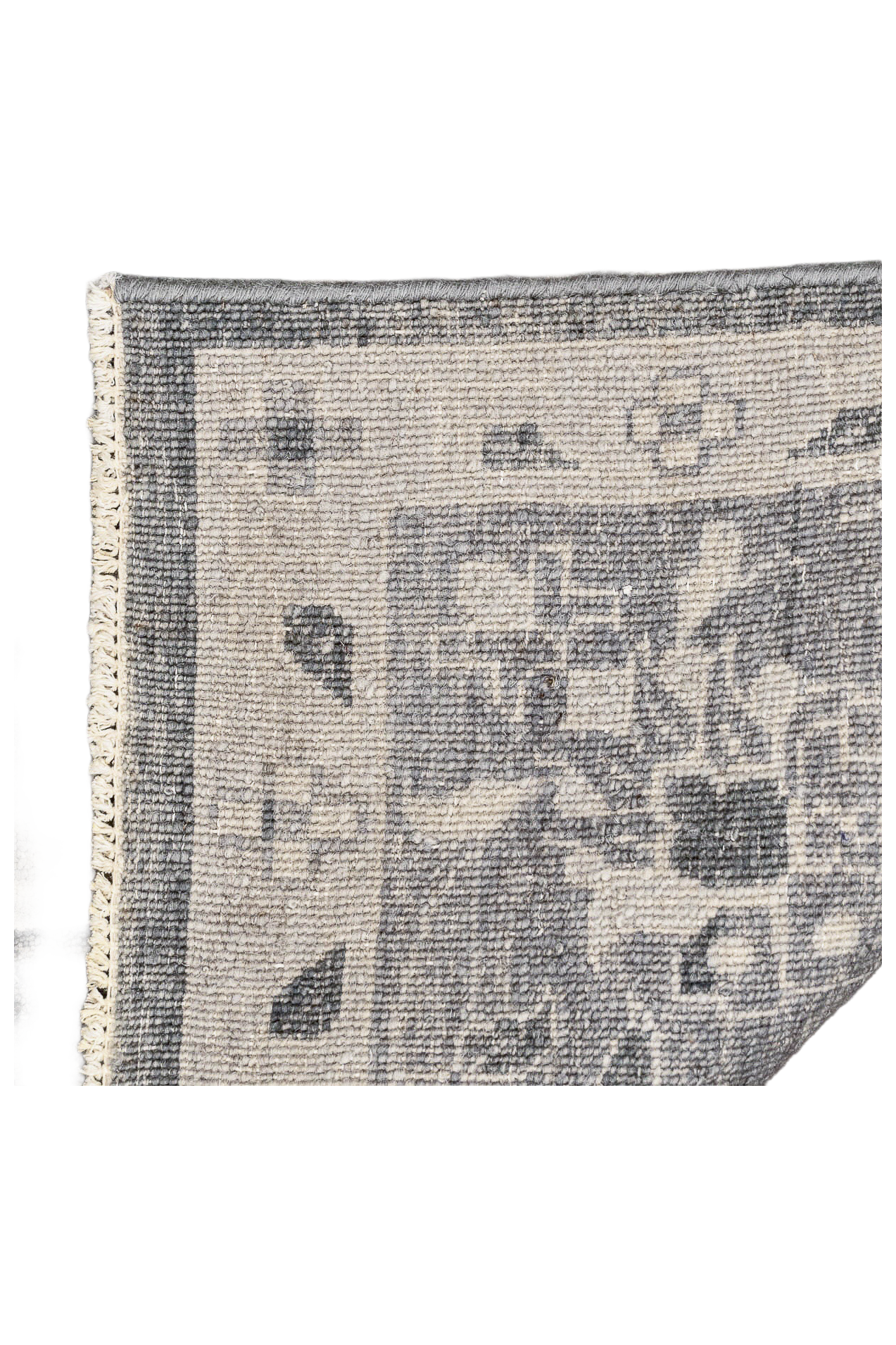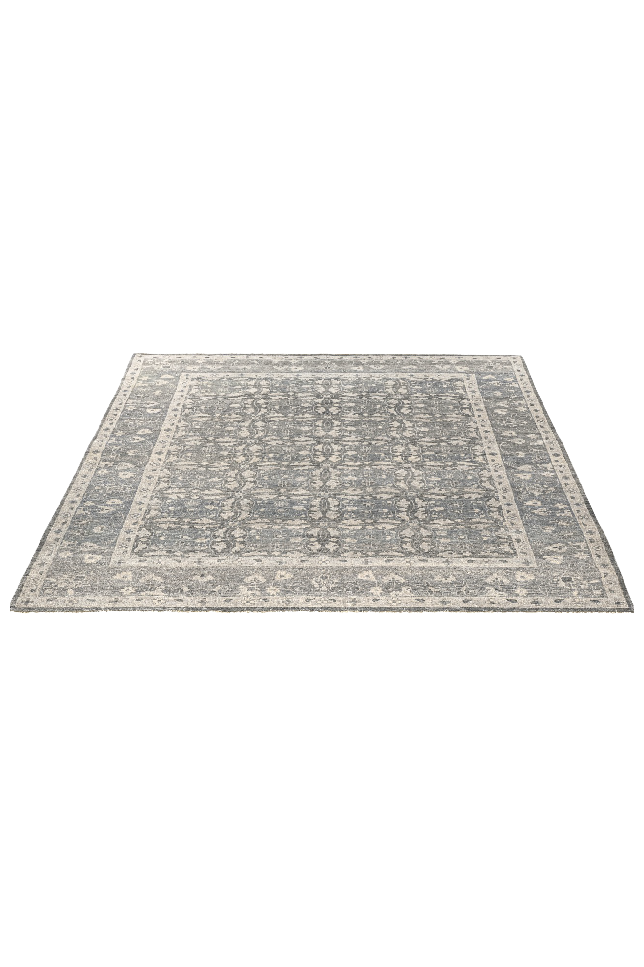 Dieser moderne Design-Teppich aus der Jordan Collection ist ein eleganter, handgeknüpfter Teppich aus grauen, blauen und weißen Details. Das Muster ähnelt einem präzise gemalten Mosaik und die Farben verleihen dem Teppich eine sehr edle Anmutung. Das Unikat aus Indien besteht zu 100% aus hochwertiger Hochlandwolle. Die Schurwolle wurde mit sorgfältig kontrollierten Farben gefärbt. In liebevoller Handarbeit wurde der Teppich Knoten für Knoten von talentierten und erfahrenen Knüpfern geknüpft und bekam so seinen ganz eigenen Charakter.