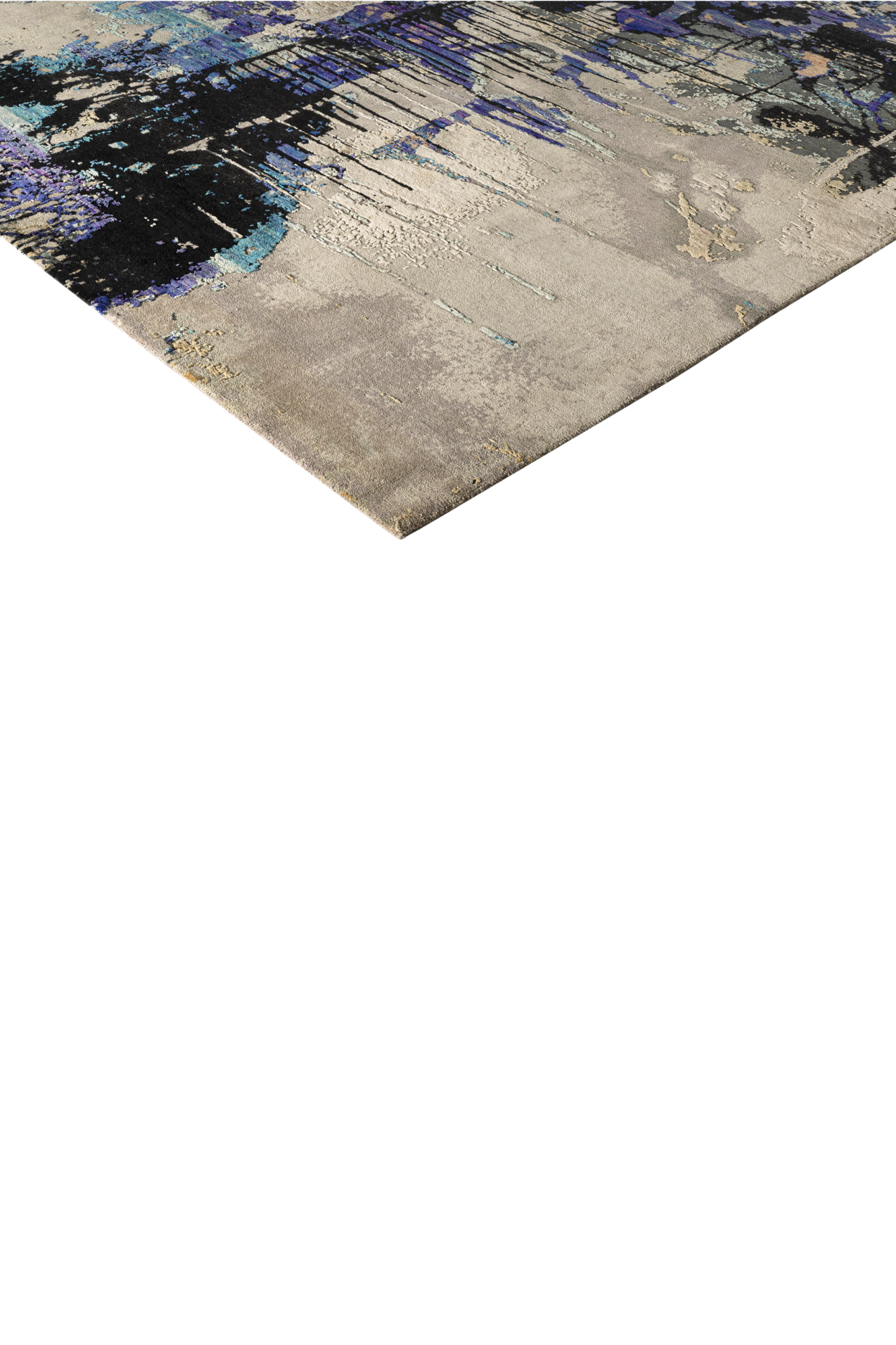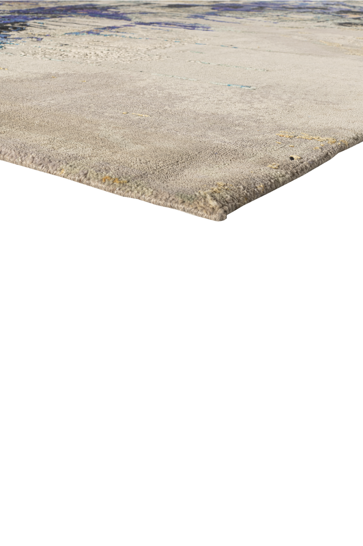Dieser wundervolle Design-Teppich aus unserer exklusiven Jordan-Design Collection besteht aus bester, von Hand versponnener Naturseide und bester, handversponnener Hochlandwolle. Die intensiven Farben leuchten auf dem grauen Teppichhintergund aus Hochlandwolle. Der Teppich wird damit zu einem echten Kunstwerk am Boden. Das Unikat wurde von talentierten Knüpfern in Indien, sehr fein von Hand geknüpft.. Zusätzlich wurde die Seide mit einer Schere von hand konturgeschnitten, sodass eine spannende Hoch-Tief Sturktur entstand. Die hochwertigen Materialien sorgen für beste Qualität und Strapazierfähigkeit des Teppich-Unikates.