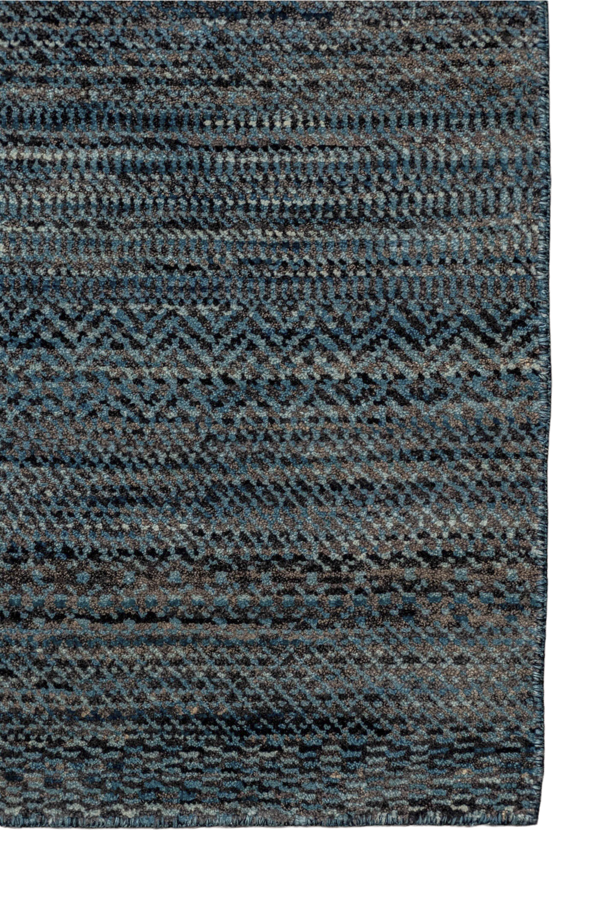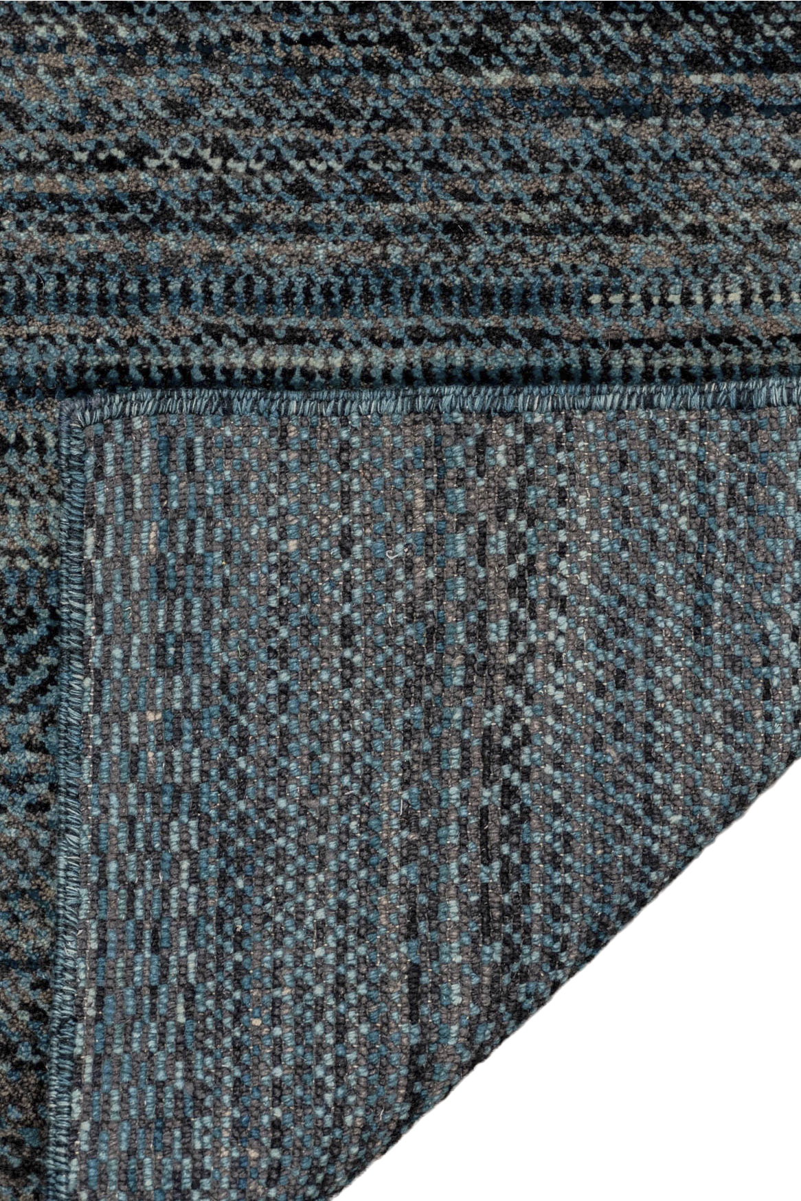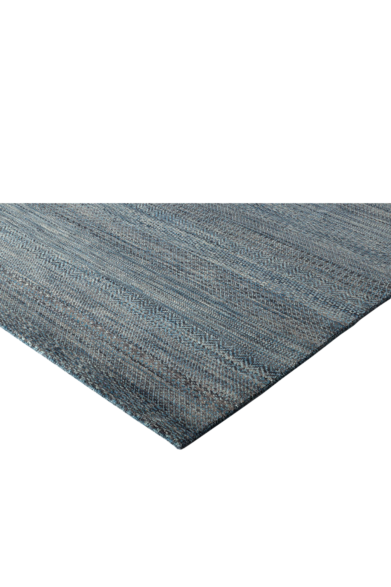 Sanjana ist ein handgeknüpfter Teppich aus reiner Schurwolle – Teil der Jordan Collection. In tiefem Blau, Petrol und Schwarzgrau entfaltet sich ein feines, horizontal gegliedertes Muster, das an gewebte Landschaften oder ruhige Wasseroberflächen erinnert. Die natürlichen Farbschattierungen bringen Tiefe und Bewegung in die Fläche, während die reine Wollstruktur für eine angenehme, matte Haptik sorgt. Sanjana steht für Textil gewordene Gelassenheit – kraftvoll, ruhig, geerdet. Ein Teppich, der wirkt – nicht laut, sondern mit stillem Charakter.