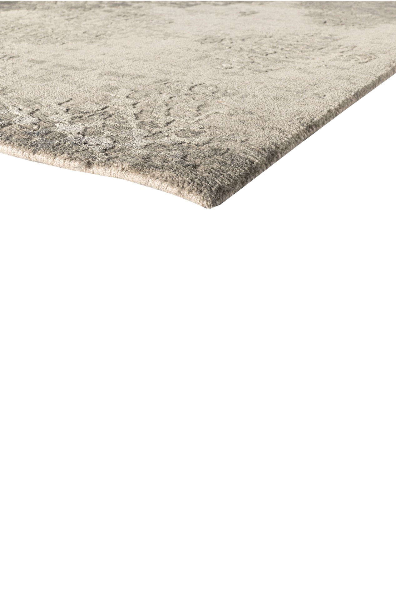 Dieser ruhige und gemütliche Design-Teppich aus der Jordan Collection ist ein wunderschönes Teppichkunstwerk. Durch die beigefarbenen Nuancen verleiht der Teppich dem Betrachter das Gefühl von Wärme und Zufriedenheit. Das Unikat überzeugt mit seinem außergewöhnlichem Muster, welches sich auf dem Teppich ausbreitet. In Indien wurde dieses Teppichunikat aus handversponnener Hochlandwolle und bester, handversponnener Bambusseide sehr fein von Hand geknüpft. Die Materialien des Teppichs weisen eine erstklassige Qualität auf. Sehr gut passt dieser wunderschöne Teppich in eine moderne Wohneinrichtigung.