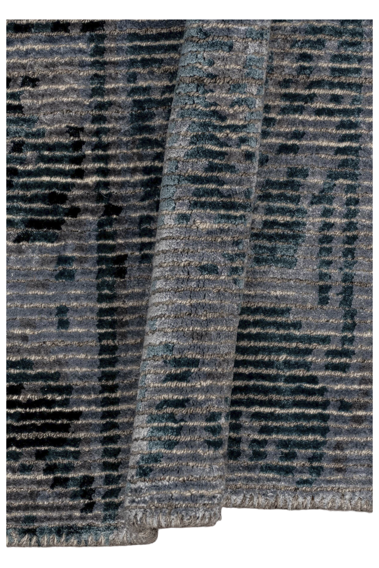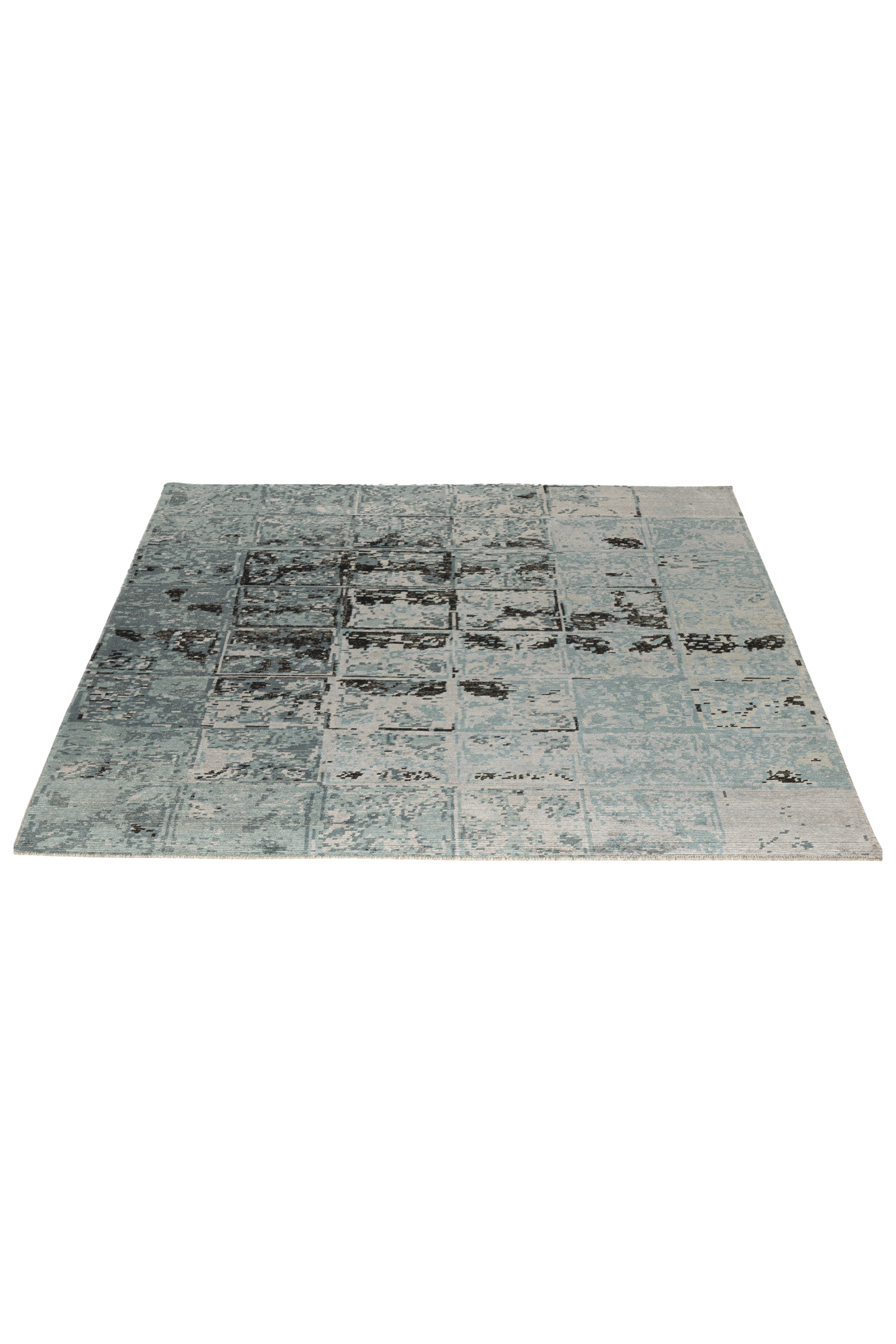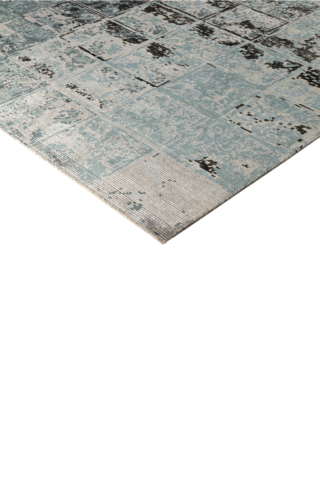 Tareon gehört zur Jordan Collection – ein handgeknüpfter Teppich, gefertigt aus hochwertiger Schurwolle und glänzender Pflanzenseide. Das Design erinnert an ein digitales Mosaik oder ein abstrahiertes Wandrelief: Ein Raster aus leicht versetzten Quadraten bildet die Grundlage für ein changierendes Spiel aus Licht, Struktur und Tiefe. In kühlen Nuancen von Eisblau, Graphit und Grau entsteht eine ruhige, moderne Fläche mit subtiler Bewegung. Der seidige Schimmer unterstreicht die grafische Wirkung – Tareon ist ein Teppich für Räume mit architektonischem Anspruch und feinem Gespür für Materialität.