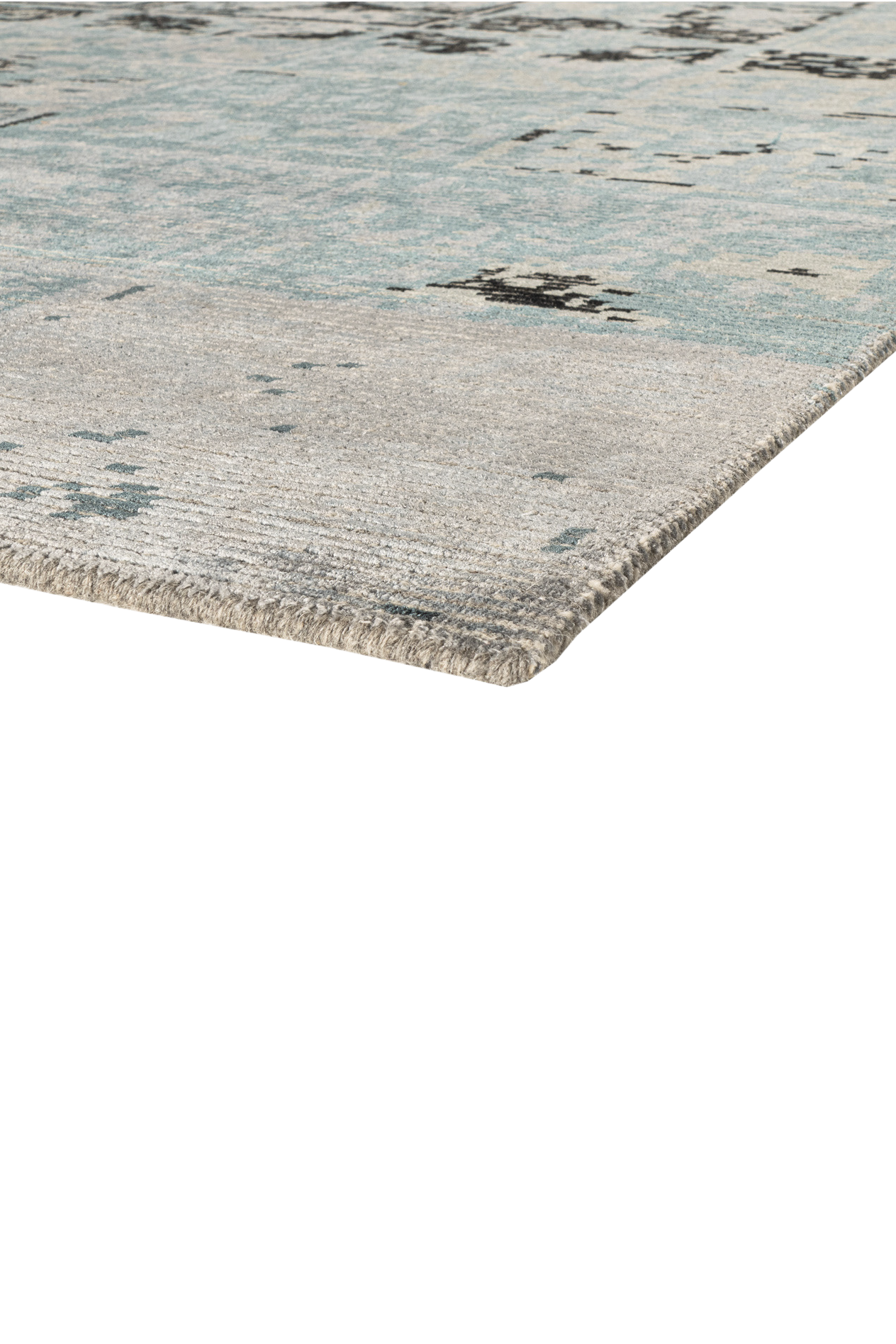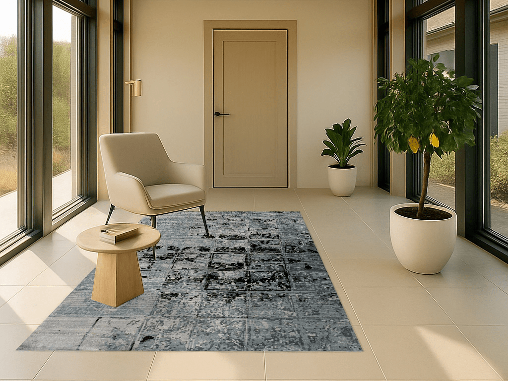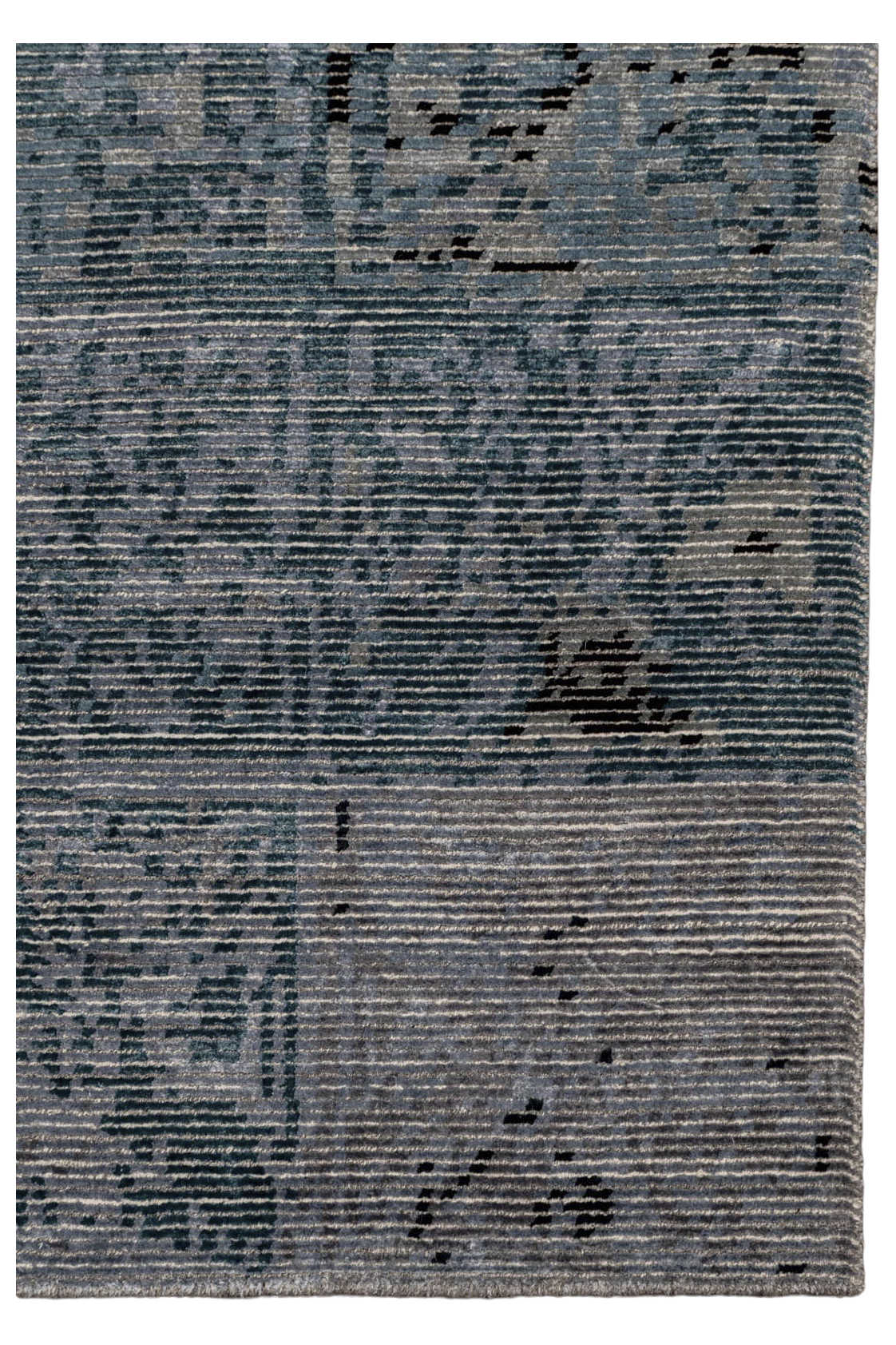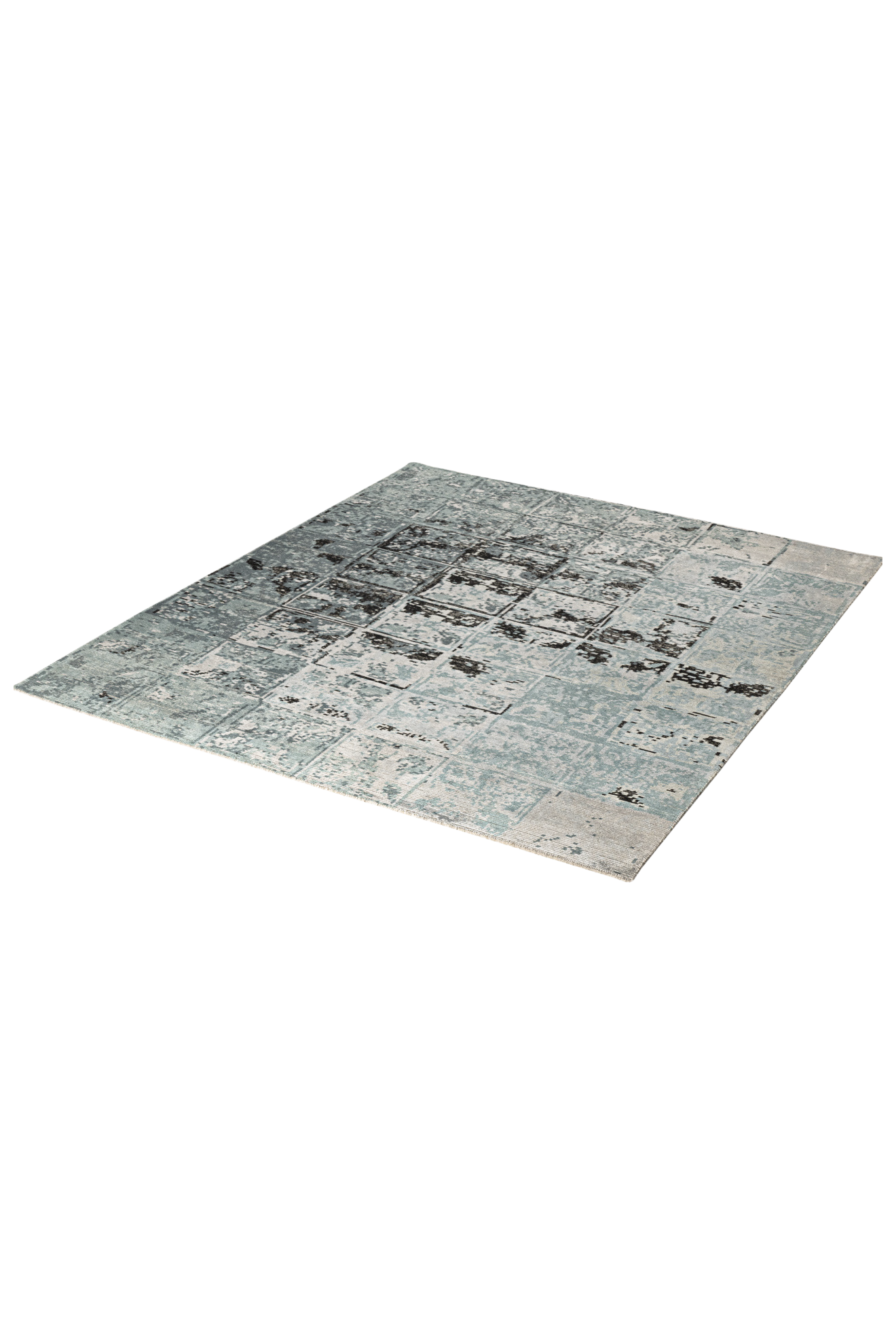 Tareon gehört zur Jordan Collection – ein handgeknüpfter Teppich, gefertigt aus hochwertiger Schurwolle und glänzender Pflanzenseide. Das Design erinnert an ein digitales Mosaik oder ein abstrahiertes Wandrelief: Ein Raster aus leicht versetzten Quadraten bildet die Grundlage für ein changierendes Spiel aus Licht, Struktur und Tiefe. In kühlen Nuancen von Eisblau, Graphit und Grau entsteht eine ruhige, moderne Fläche mit subtiler Bewegung. Der seidige Schimmer unterstreicht die grafische Wirkung – Tareon ist ein Teppich für Räume mit architektonischem Anspruch und feinem Gespür für Materialität.