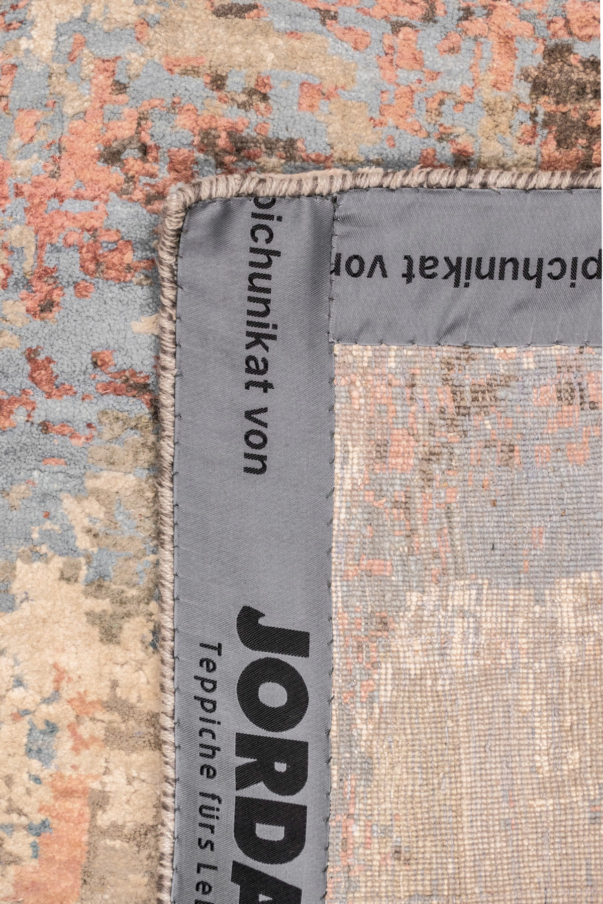 Dieser schöne, handgeknüpfte Design-Teppich aus der Jordan Collection trägt den Namen Toronto. Die erdigen Töne und die lachsfarbenen und eisblauen Details formen gemeinsam ein abstraktes Muster, was den Teppich unglaublich interessant macht. Die handversponnene Wolle und die handversponnene, echte Naturseide ergänzen sich perfekt. Das Ergebnis ist ein wunderschöner Design-Teppich, der bestens in ein modernes Wohnambiente passt. In liebevoller Handarbeit wurde der Teppich Knoten für Knoten gemacht und bekam so seinen ganz eigenen Charakter.