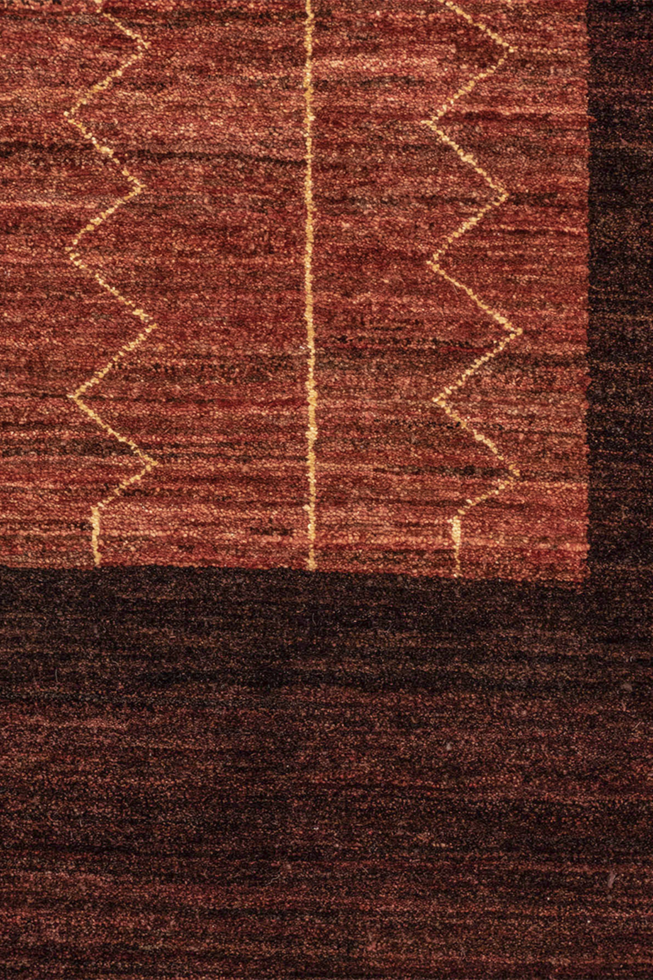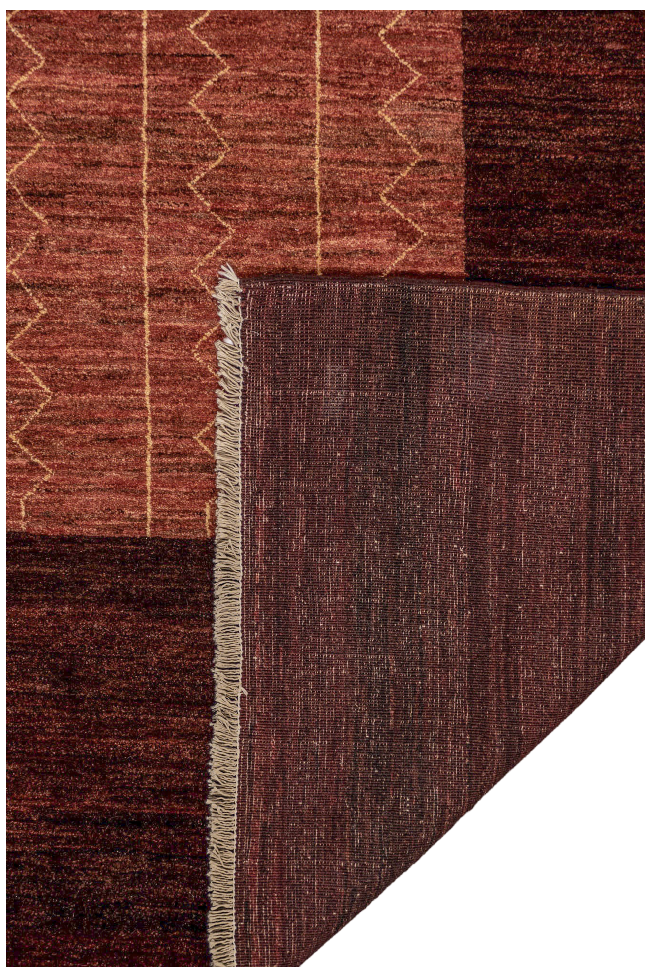 Ein sehr schöner Gabbeh Teppich, der durch seine Einzigartigkeit den Betrachter überzeugt. Die roten Farbnuancen verleihen dem Teppich Wärme und gemütlichkeit. Die Hochlandwolle des Teppichs wurde von Hand versponnen und mit den besten, kontrollierten Farben gefärbt. Die Wolle ist aufgrund des hohen Restfettgehalts sehr strapazierfähig und schmutzresistent. Der handgeknüpfte Teppich aus dem Grenzgebiet Afghanistan/Pakistan passt gut in einen modernen, aber auch in einen rustikal eingerichteten Wohnraum.