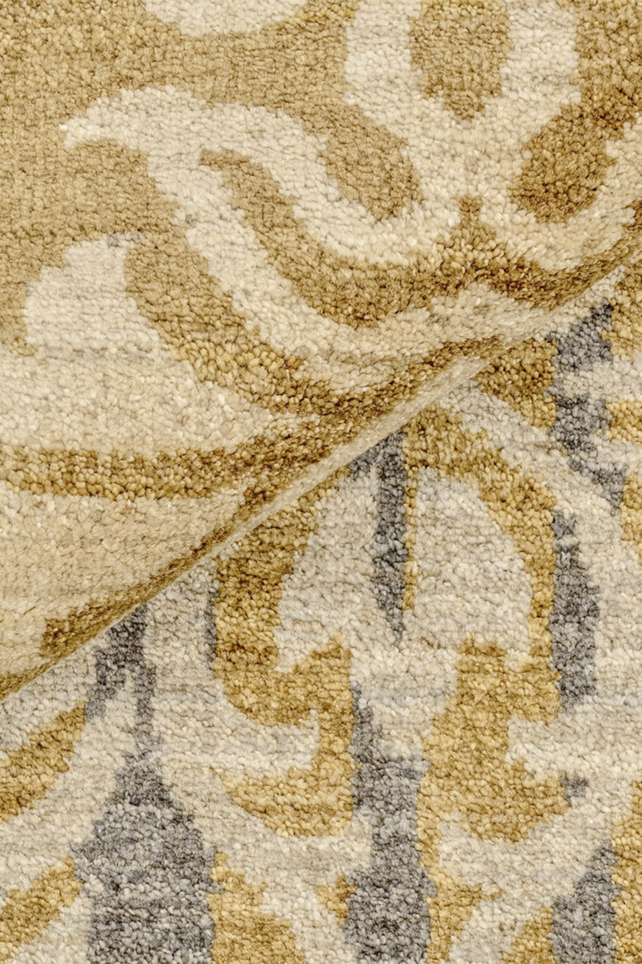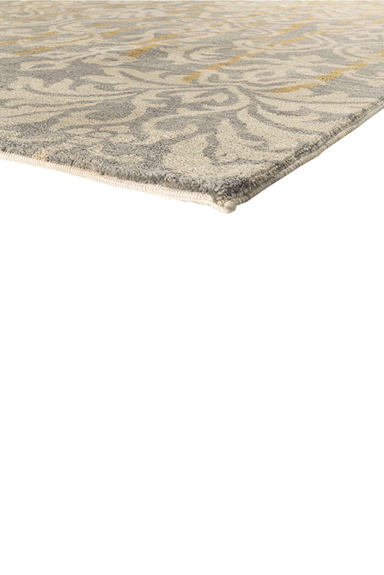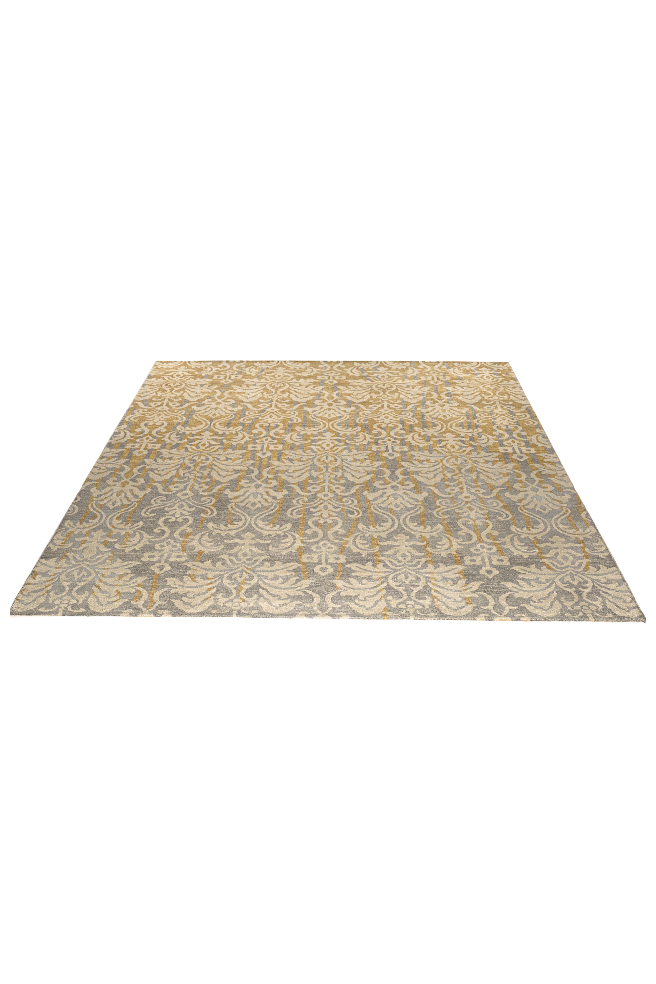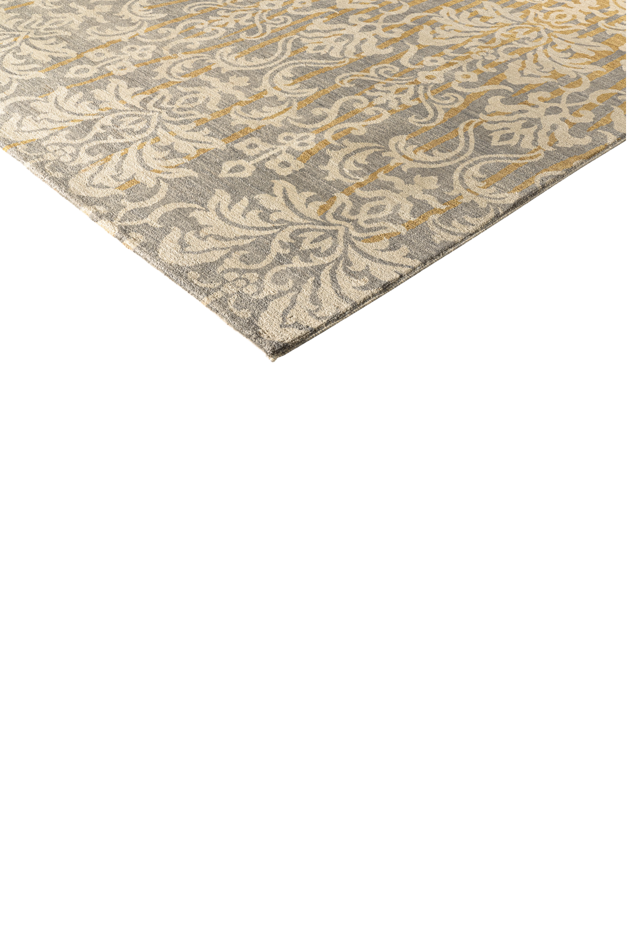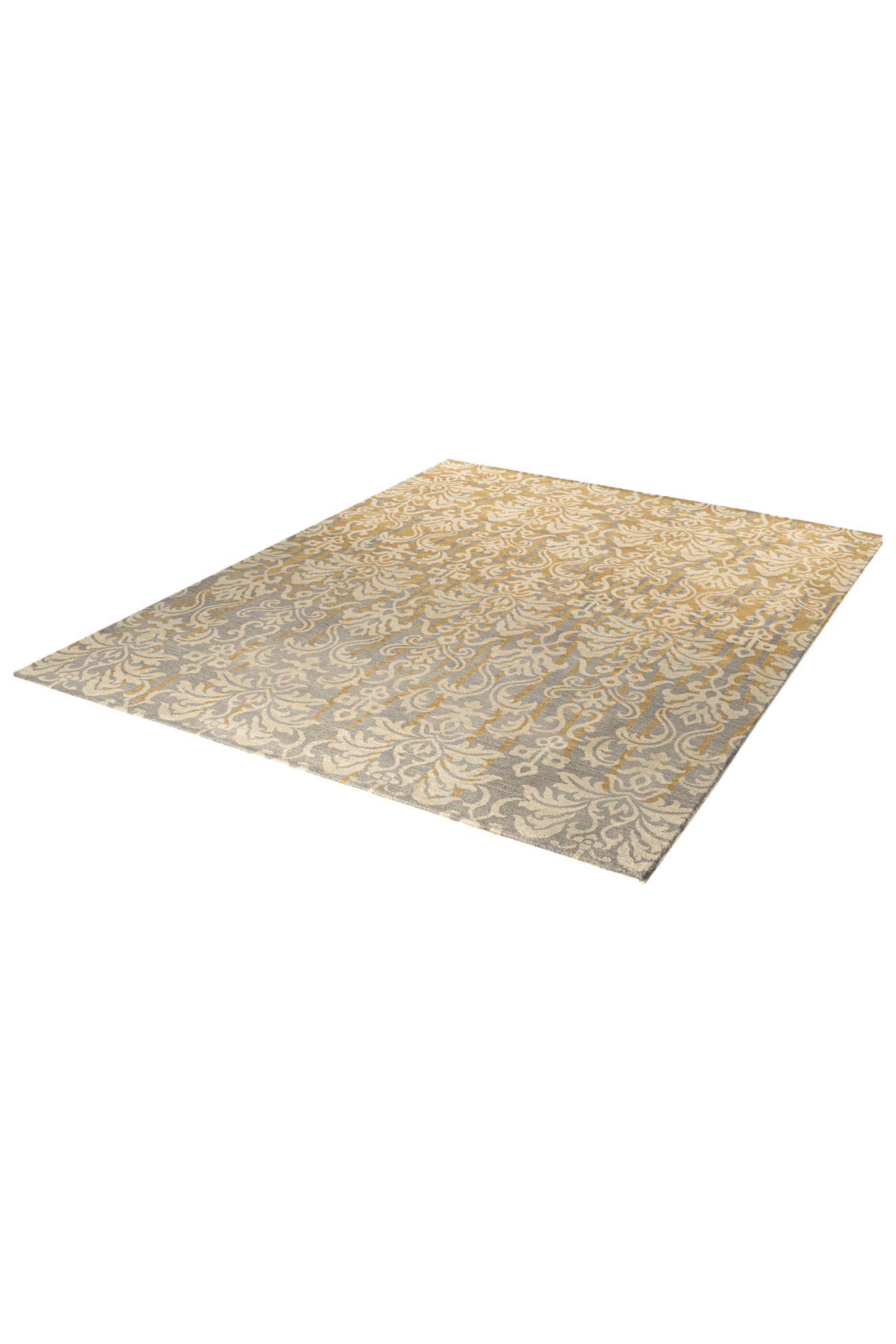 Der Teppich „Goldornament“ verleiht jedem Raum einen edlen Charakter. Das ornamentale Muster im klassischen Stil erinnert an opulente Wandteppiche, während die moderne Farbkomposition aus Goldgelb, Beige und kühlem Grau für zeitgenössische Eleganz sorgt. Die fließende Farbverläufe unterstreichen den kunstvollen Charakter dieses Unikats.