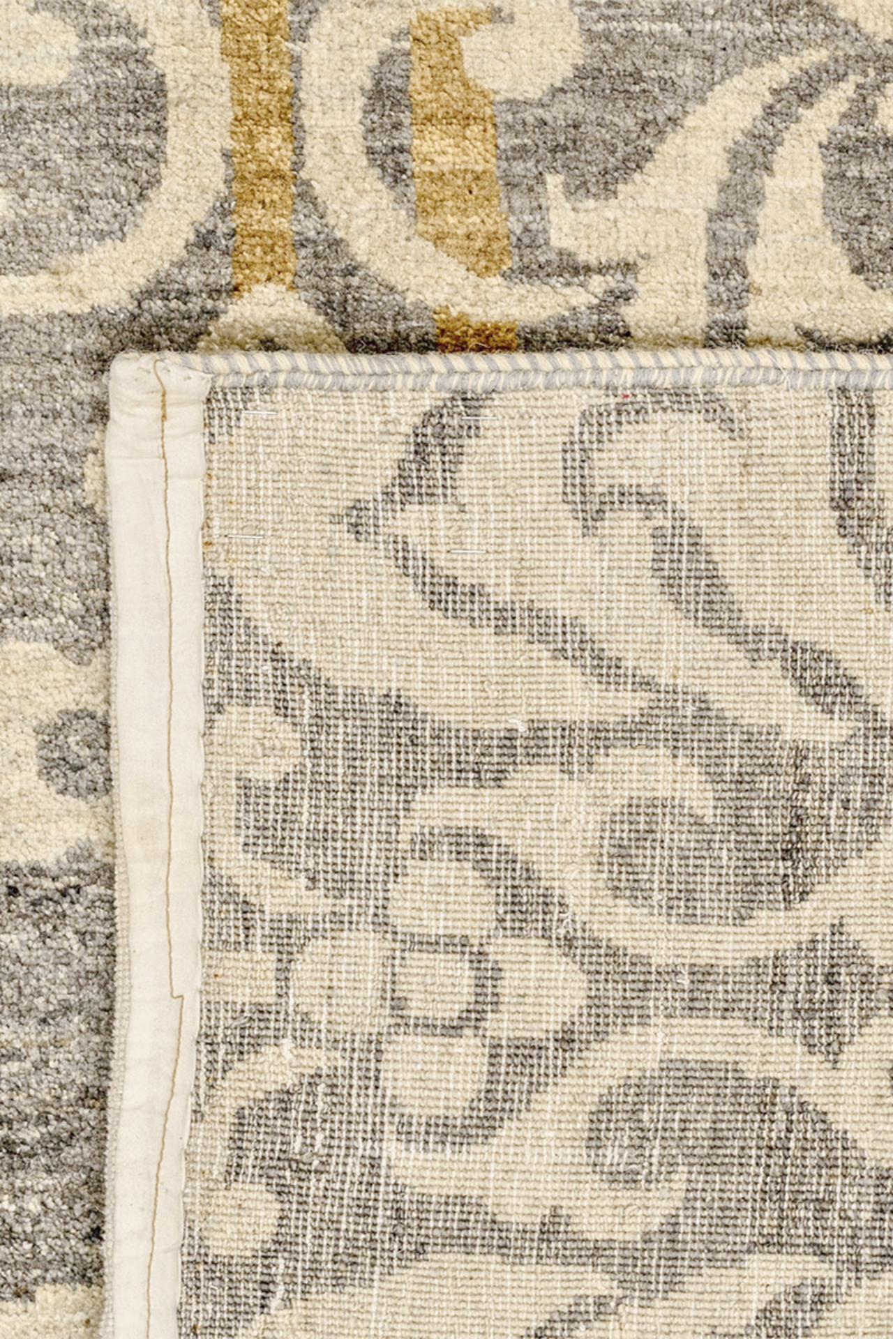 Gefertigt aus strapazierfähiger Schurwolle, überzeugt „Goldornament“ nicht nur optisch, sondern auch durch seine hohe Langlebigkeit und angenehme Haptik. Der Teppich ist handgeknüpft, was dieses Stück zu einem exklusiven Einzelstück macht – ideal für Wohnräume, Salons oder Schlafzimmer, die eine stilvolle Aussage suchen.