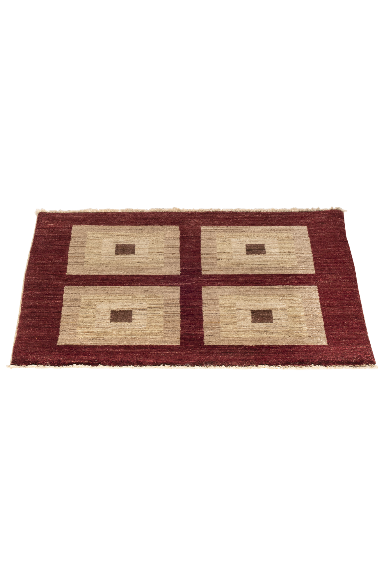 Der Teppich „Lichtquadrate“ überzeugt durch seine grafische Klarheit und kraftvolle Präsenz. Vier symmetrisch angeordnete Quadrate in warmen Beigetönen ruhen auf einem tiefen, erdigen Rot – ein Arrangement, das Ruhe und Struktur ausstrahlt. Die dezent abgestuften Nuancen schaffen eine harmonische Tiefe, während das reduzierte Design ihm eine moderne Leichtigkeit verleiht.