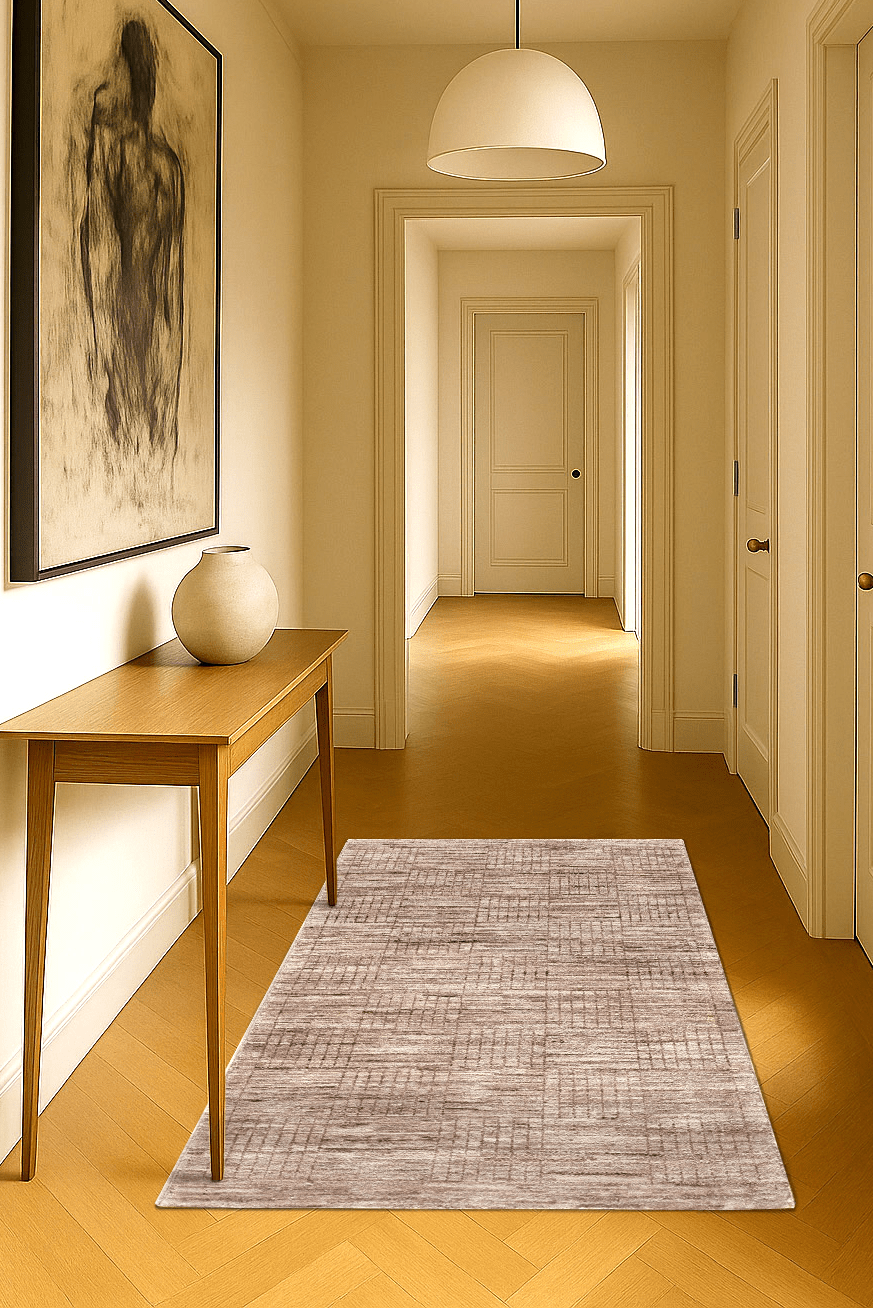 Der Gabbeh Teppich „Sandraster“ ist ein ausdrucksstarkes Statement für ruhige Raumgestaltung mit Tiefgang. In feinen Beigetönen und sanften Braunabstufungen präsentiert sich ein stilisiertes Rastermuster – inspiriert von den Spuren im Sand und den grafischen Formen der Natur.Handgeknüpft aus robuster, naturbelassener Schurwolle überzeugt dieser Teppich nicht nur optisch, sondern auch in der Haptik: angenehm weich unter den Füßen und gleichzeitig äußerst strapazierfähig – ideal für viel genutzte Wohnbereiche. Jeder Teppich ist ein handgefertigtes Unikat, dessen lebendige Struktur und feine Farbnuancen in traditioneller Knüpfkunst entstehen. Das dezente Farbspektrum lässt sich hervorragend in moderne wie auch klassische Einrichtungsstile integrieren.