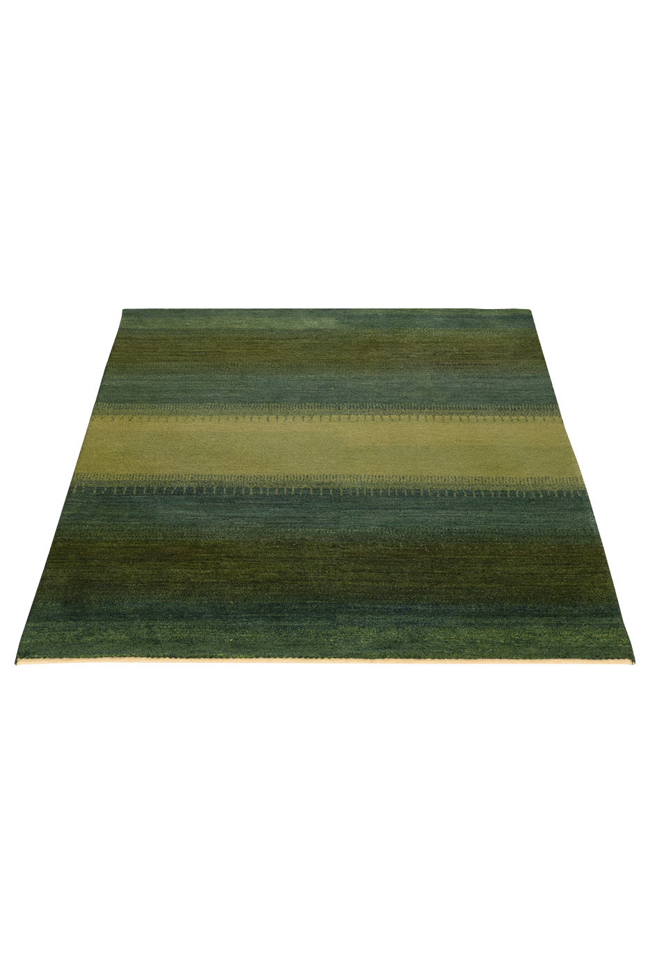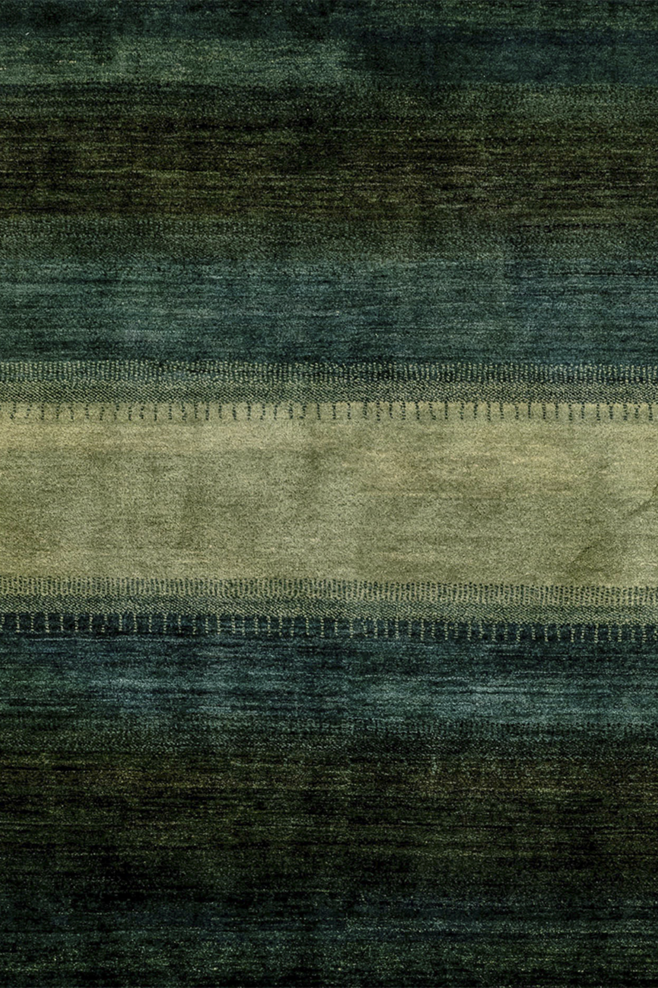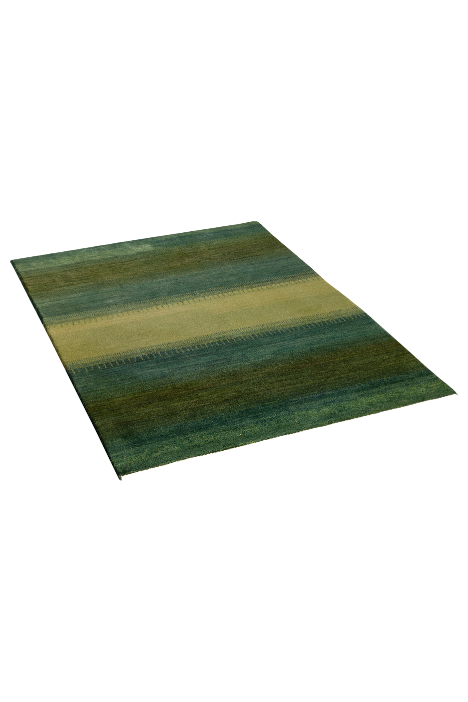 Ein Teppich, der atmet. „Grüne Weide“ entfaltet seine Wirkung über ruhige Farbflächen in Moosgrün, Waldgrün und zartem Wiesenton – durchbrochen von einem lichten, fast schimmernden Streifen in der Mitte, der wie ein Weg oder Lichtband wirkt. Inspiriert von der Weite persischer Landschaften, bringt dieser Gabbeh eine fühlbare Naturverbundenheit in moderne Räume.