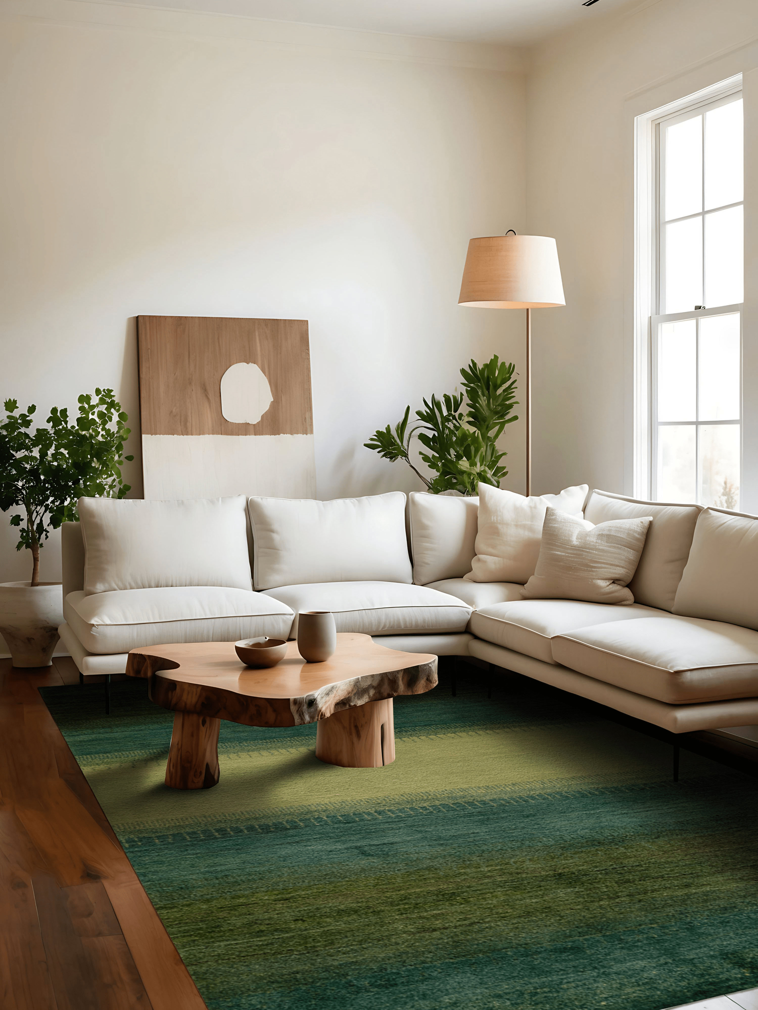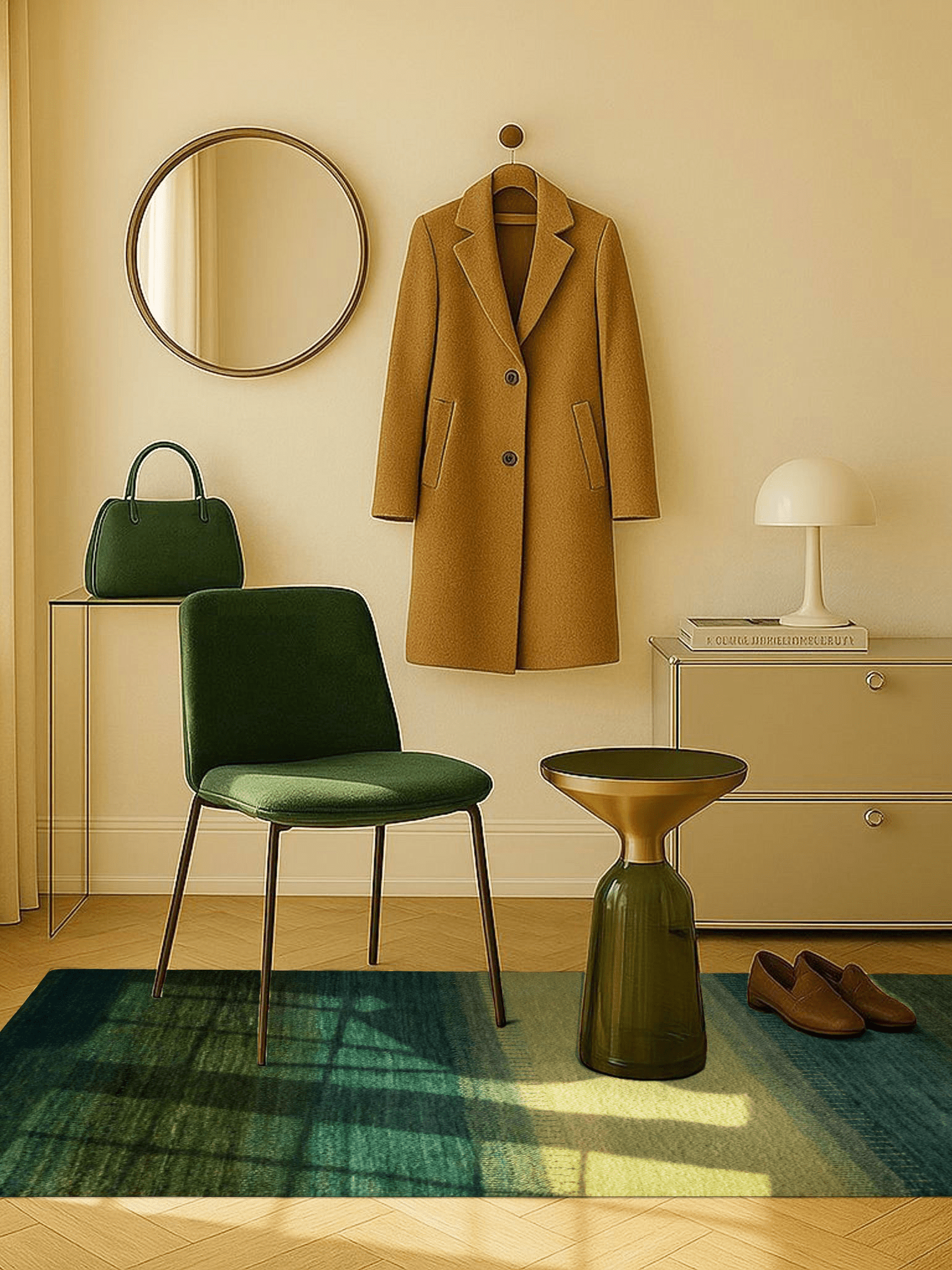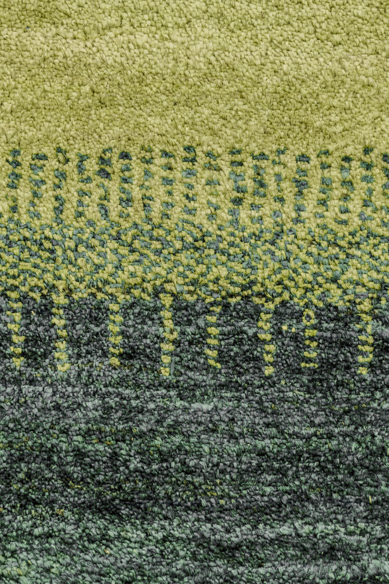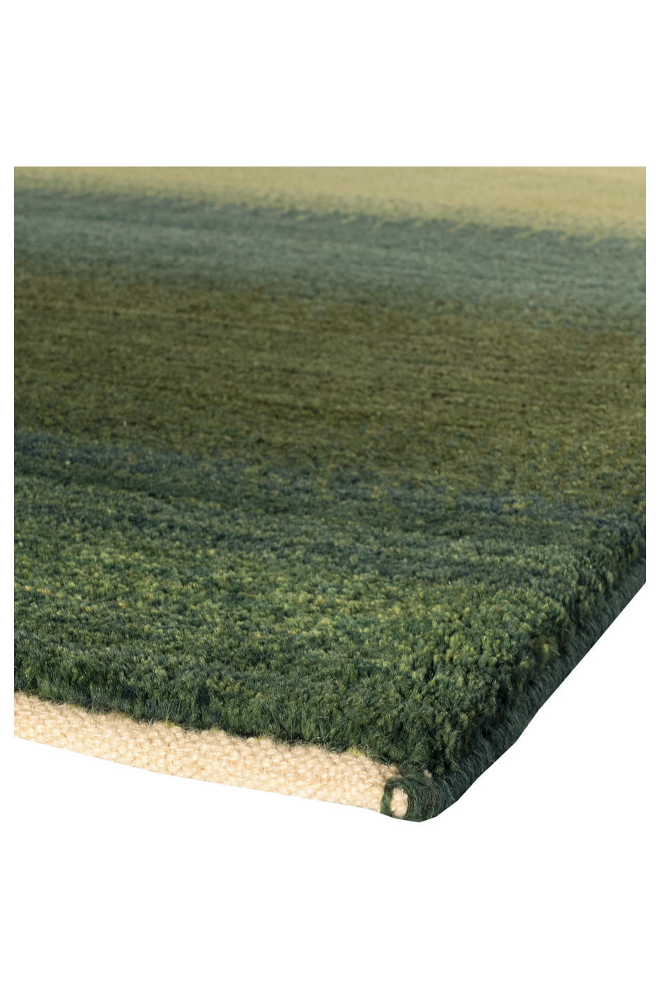 Ein Teppich, der atmet. „Grüne Weide“ entfaltet seine Wirkung über ruhige Farbflächen in Moosgrün, Waldgrün und zartem Wiesenton – durchbrochen von einem lichten, fast schimmernden Streifen in der Mitte, der wie ein Weg oder Lichtband wirkt. Inspiriert von der Weite persischer Landschaften, bringt dieser Gabbeh eine fühlbare Naturverbundenheit in moderne Räume.