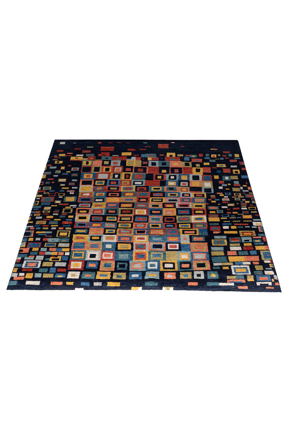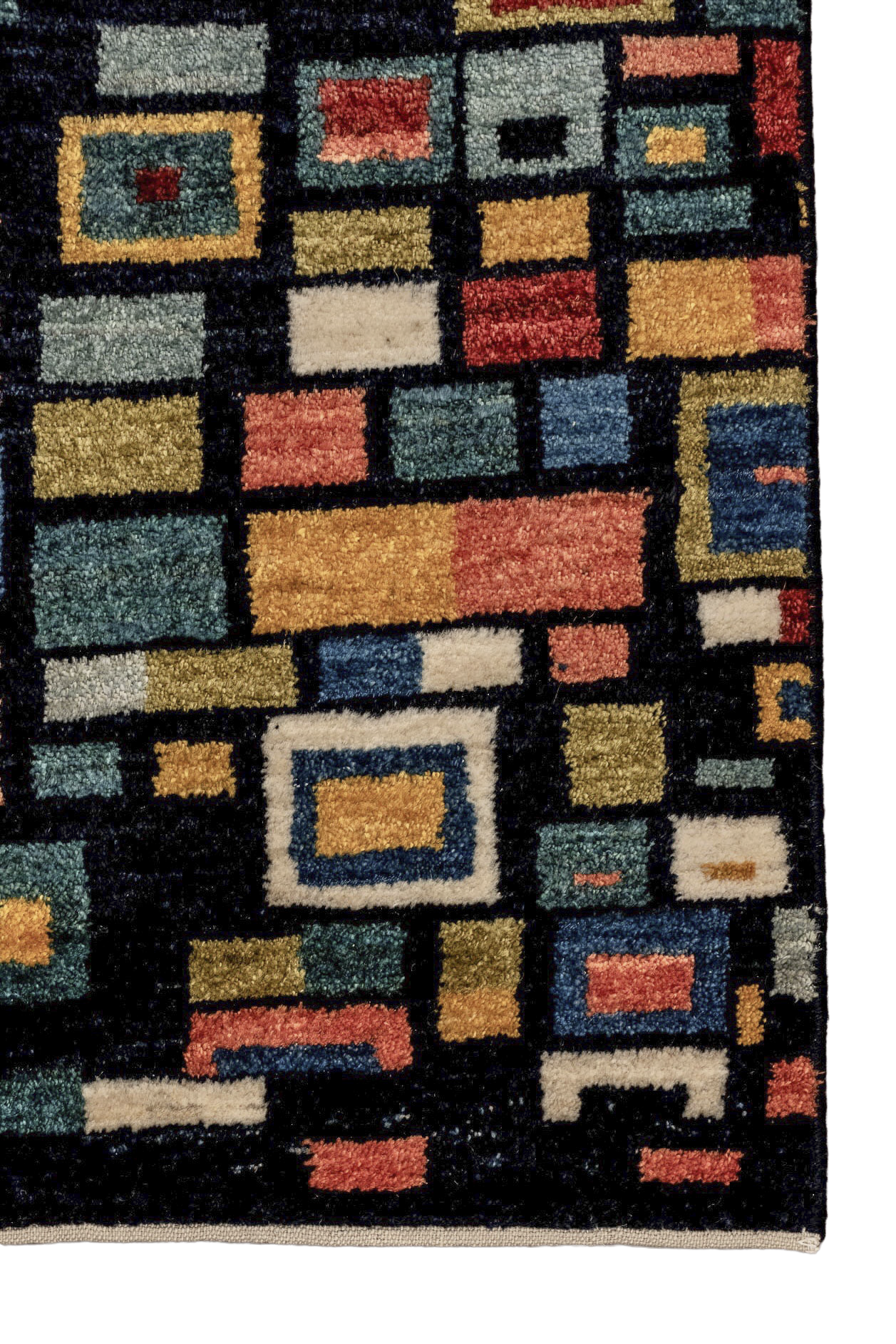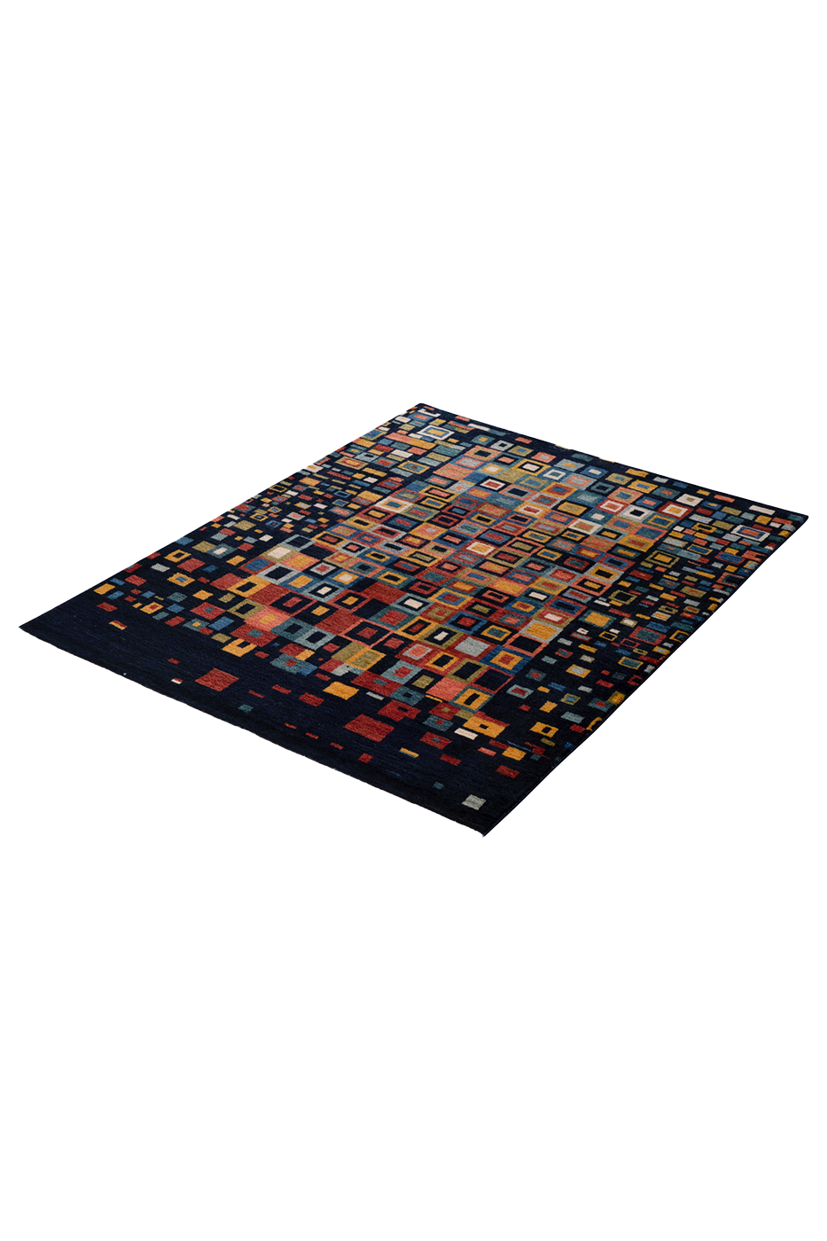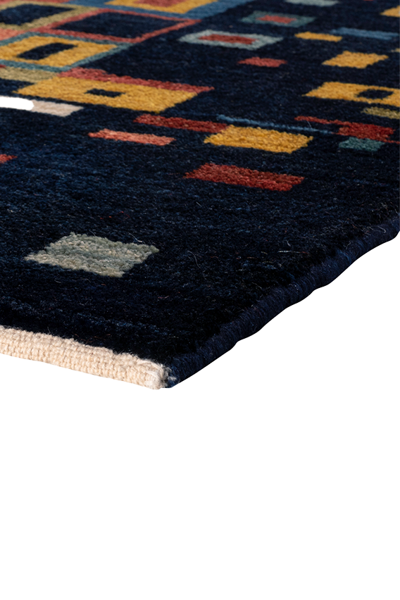 Der handgeknüpfte Nomadenteppich „Mosaikfenster“ ist ein farbenfrohes Kunstwerk voller Tiefe und Bewegung. Inspiriert von traditioneller Nomadenkunst und moderner Geometrie, erinnert das Muster an leuchtende Glasfenster eines Orients der Fantasie. Die klar umrissenen, vielfarbigen Rechtecke wirken wie Fenster zur Seele – jedes individuell, alle miteinander verbunden. Gefertigt aus reiner Hochlandwolle von Schafen, die mit den Nomaden durch das Zagrosgebirge ziehen, besticht der Teppich durch seine weiche Haptik, Farbbrillanz und Langlebigkeit. Die Wolle wurde schonend von Hand verarbeitet und pflanzengefärbt. Dieses Unikat bringt Licht, Struktur und einen Hauch Poesie in jedes moderne Interieur.