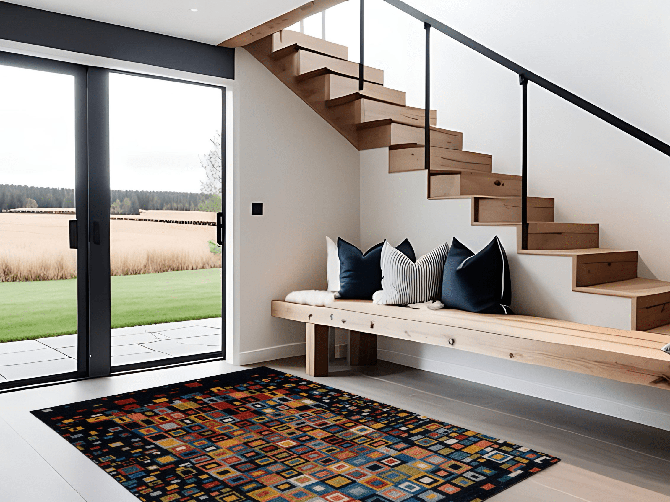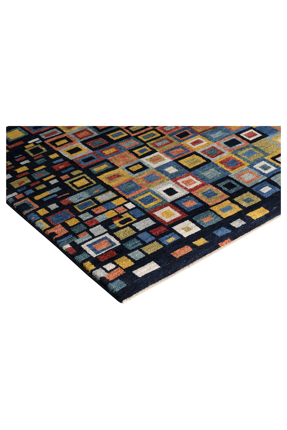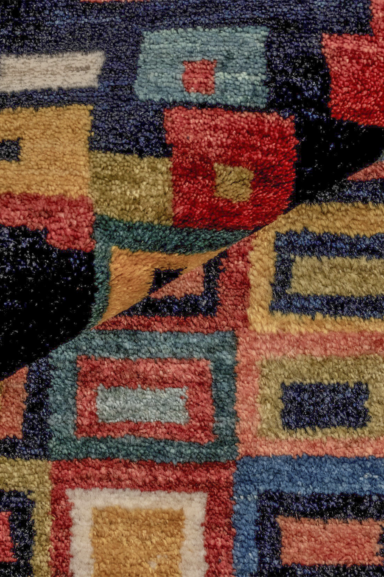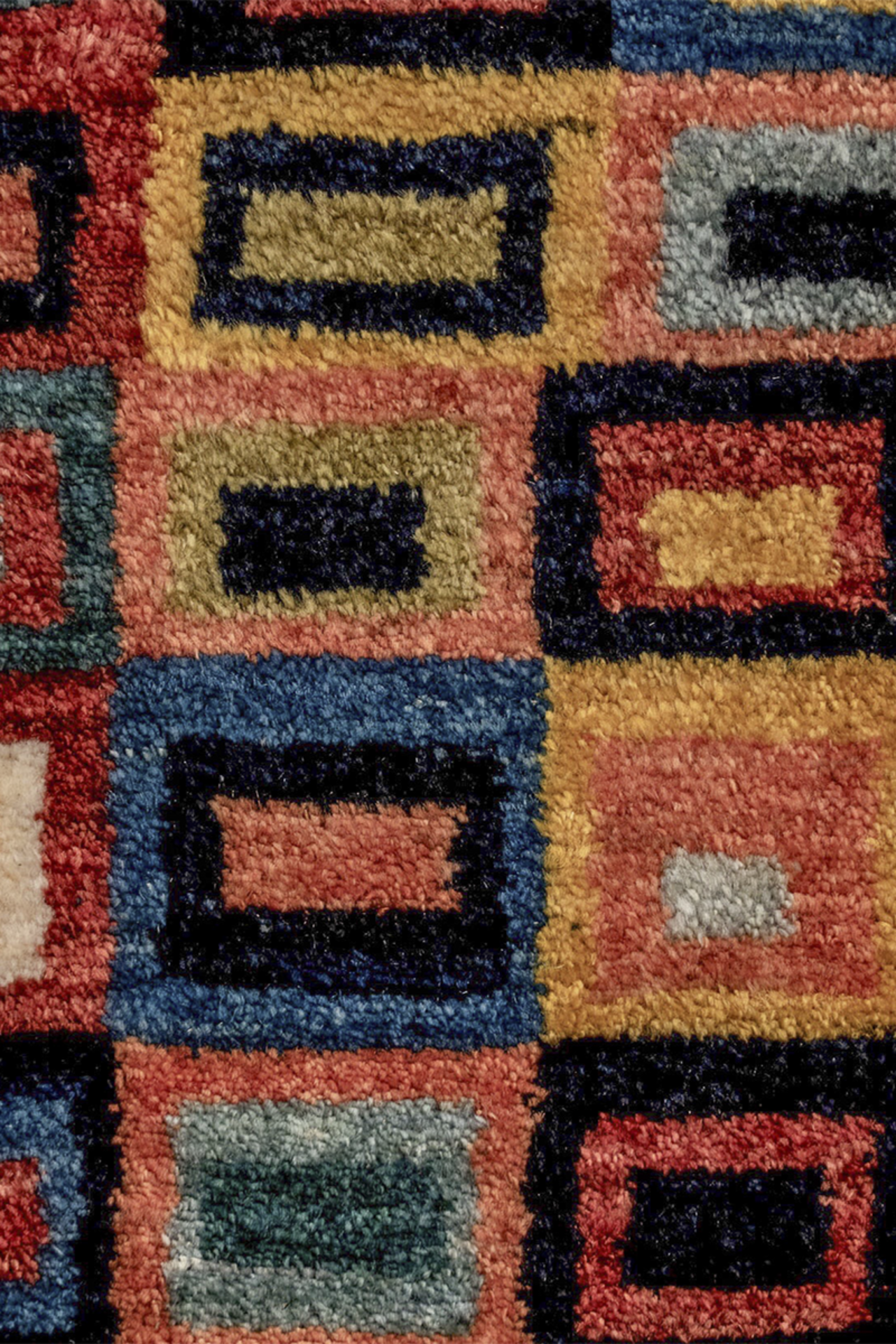 Der handgeknüpfte Nomadenteppich „Mosaikfenster“ ist ein farbenfrohes Kunstwerk voller Tiefe und Bewegung. Inspiriert von traditioneller Nomadenkunst und moderner Geometrie, erinnert das Muster an leuchtende Glasfenster eines Orients der Fantasie. Die klar umrissenen, vielfarbigen Rechtecke wirken wie Fenster zur Seele – jedes individuell, alle miteinander verbunden. Gefertigt aus reiner Hochlandwolle von Schafen, die mit den Nomaden durch das Zagrosgebirge ziehen, besticht der Teppich durch seine weiche Haptik, Farbbrillanz und Langlebigkeit. Die Wolle wurde schonend von Hand verarbeitet und pflanzengefärbt. Dieses Unikat bringt Licht, Struktur und einen Hauch Poesie in jedes moderne Interieur.