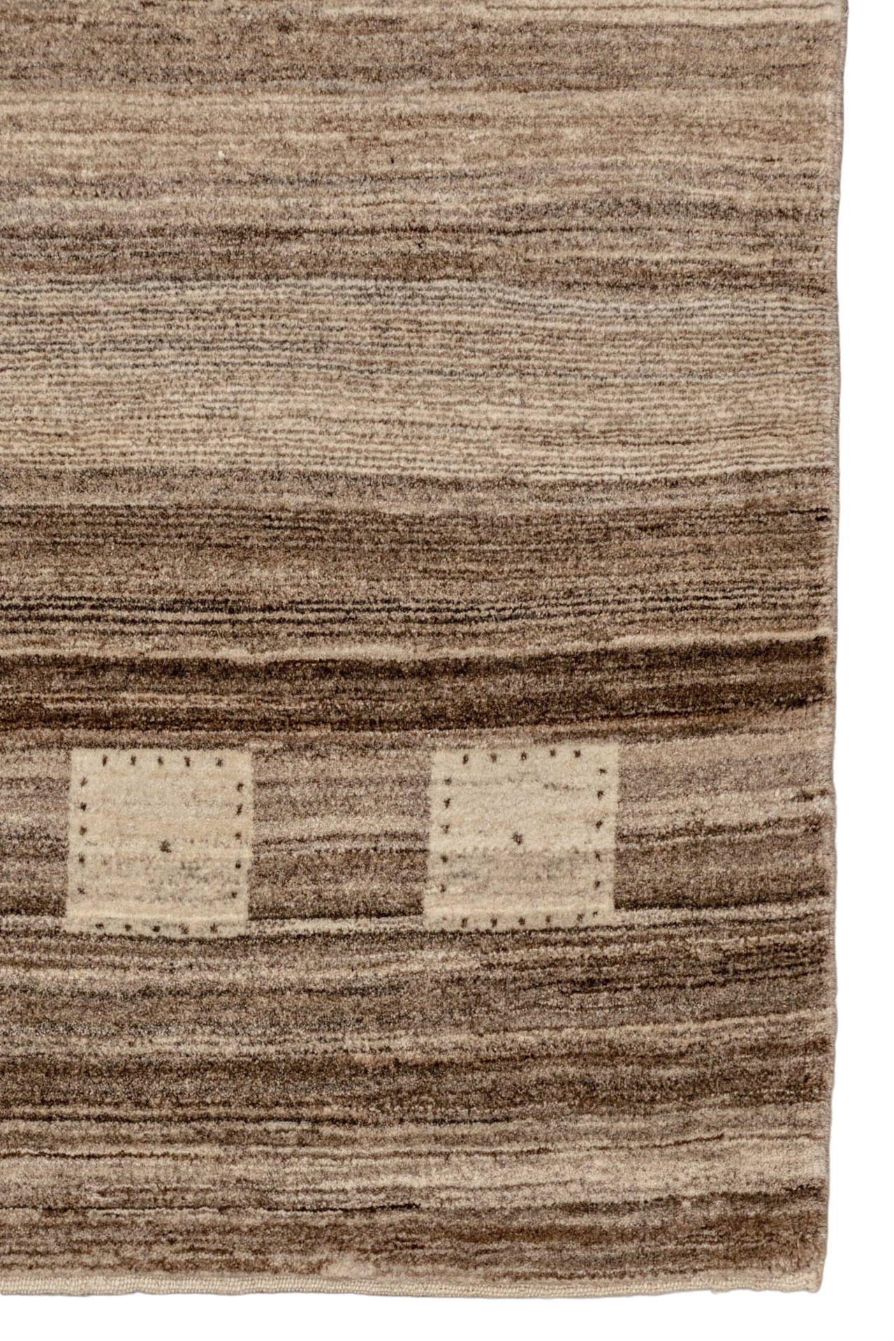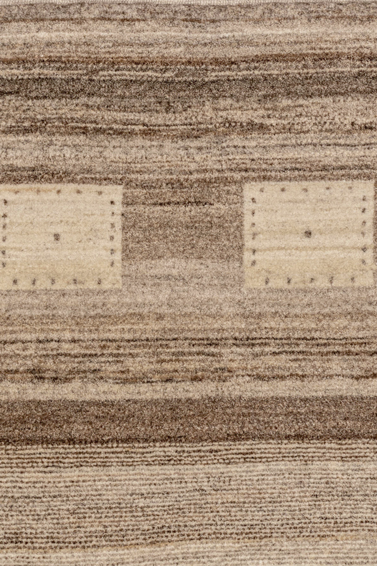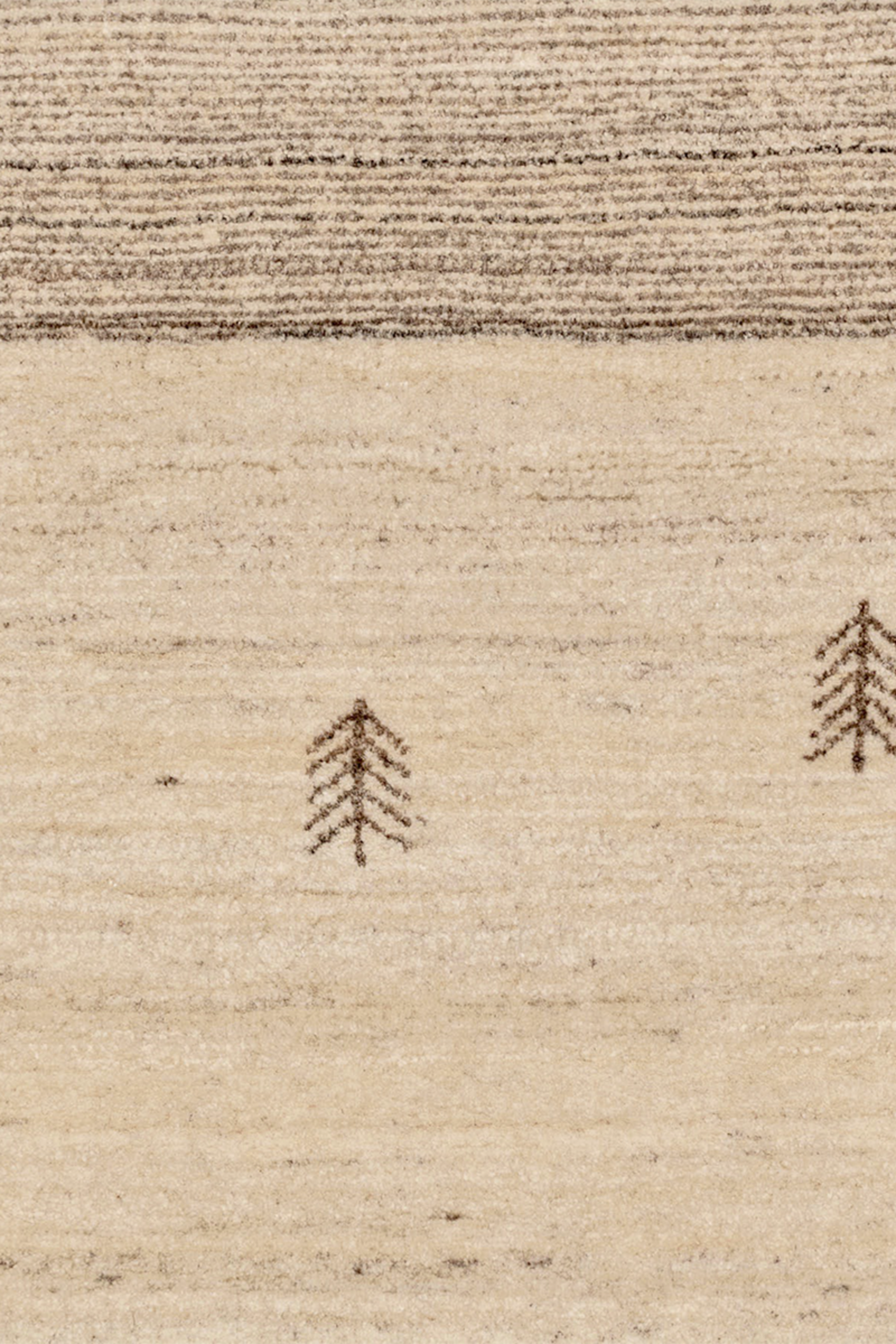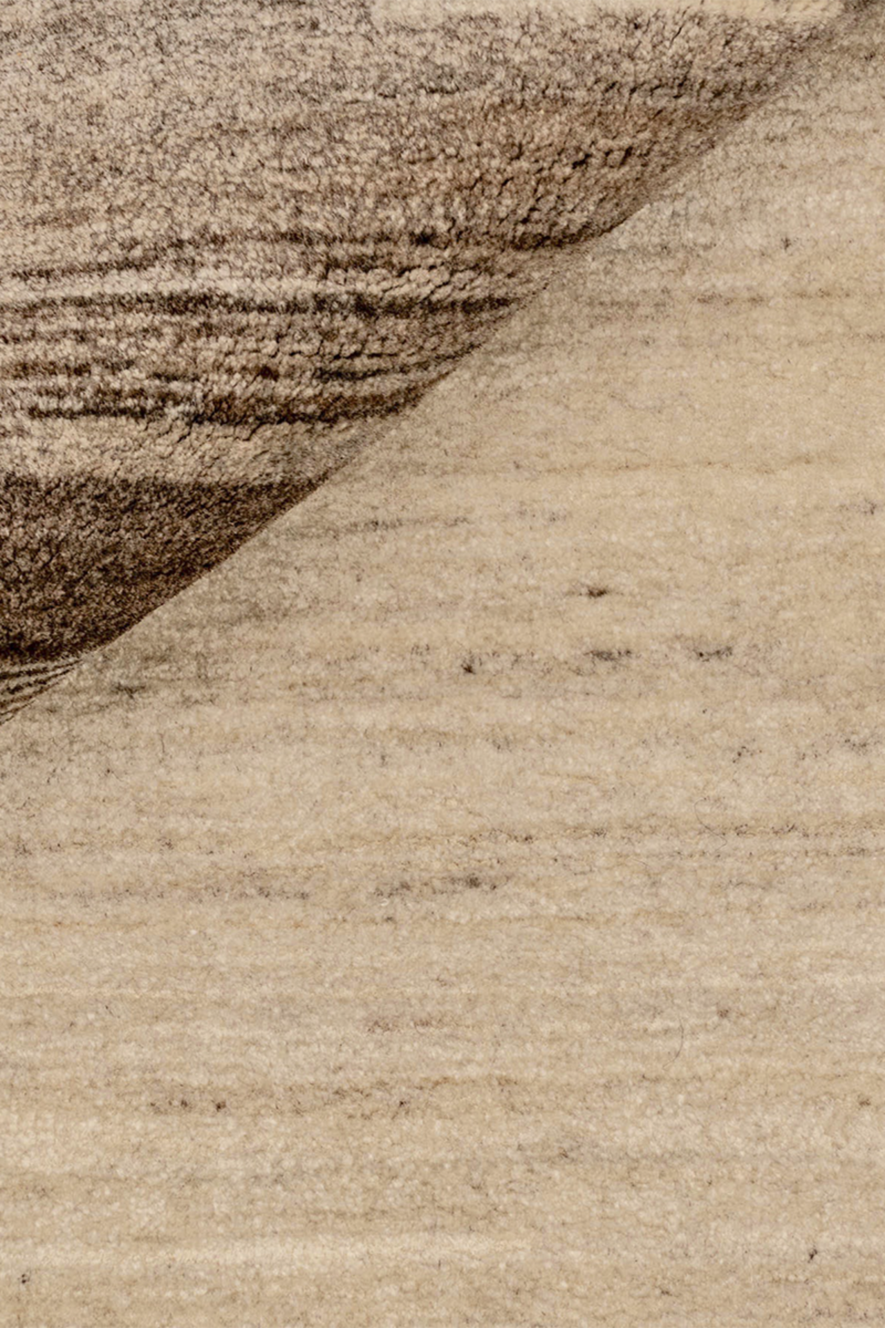 In seiner Reduktion liegt die Kraft: Der Teppich „Naturgrund“ wurde vollständig aus ungefärbter Schurwolle handgeknüpft. Seine Farbigkeit entsteht allein durch die natürlichen Nuancen der Wolle – von warmem Beige bis zu sanftem Braun. Dezente geometrische Symbole und feine Linien schaffen visuelle Ruhe und archaische Tiefe.
