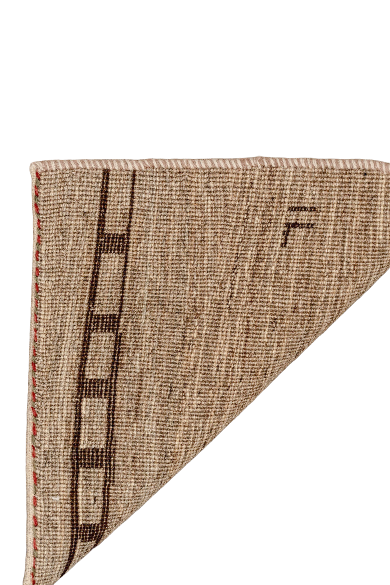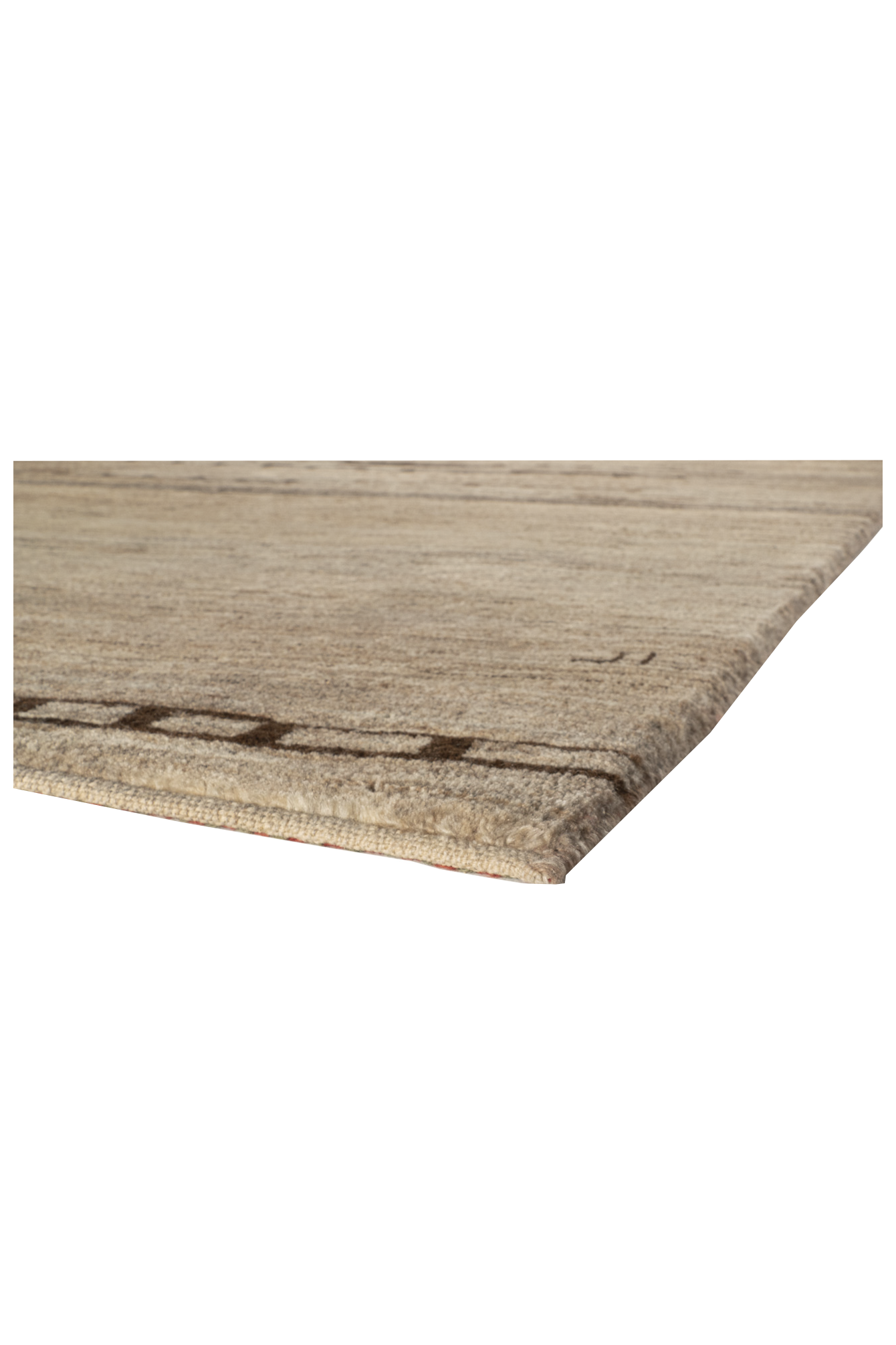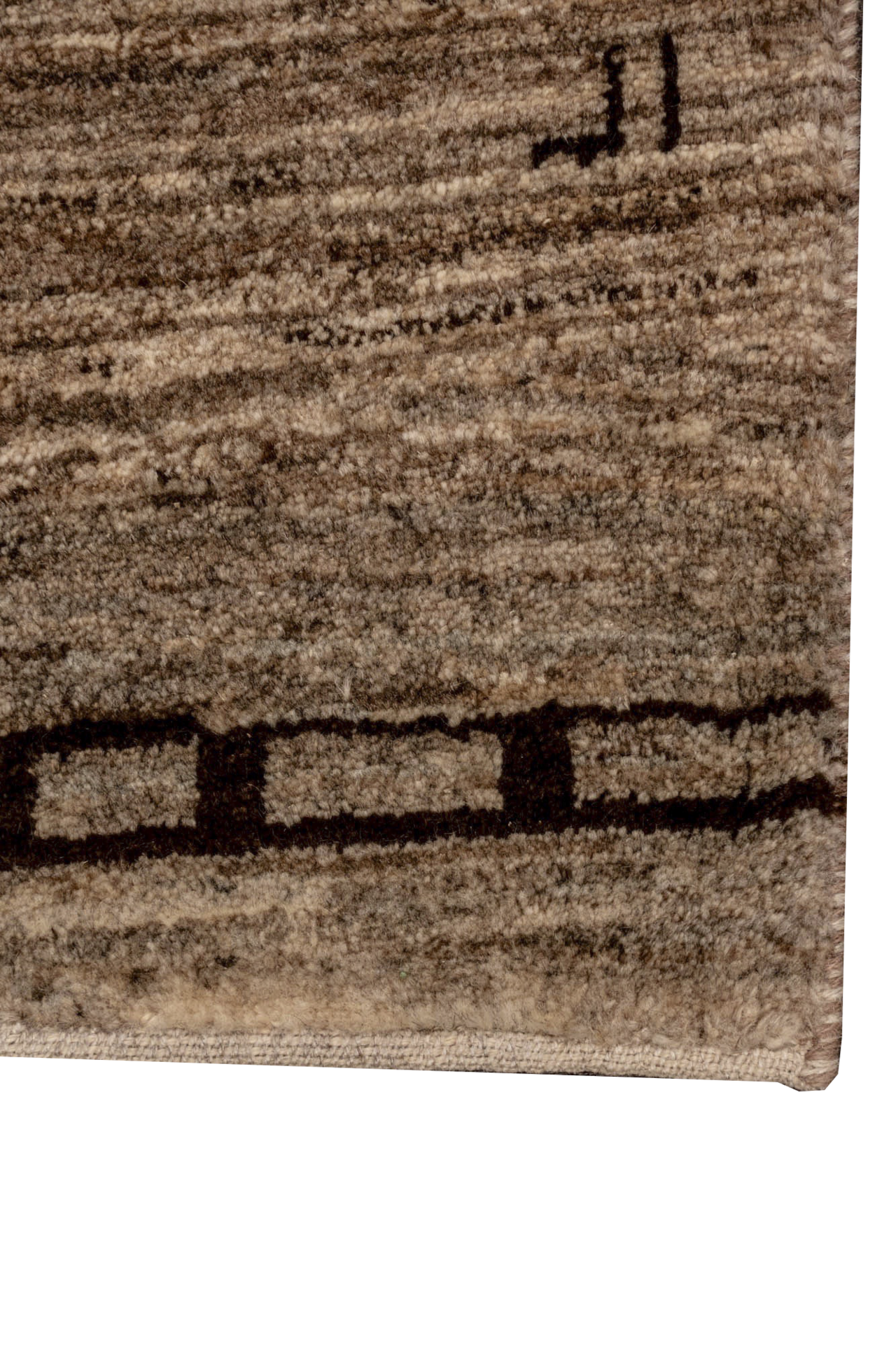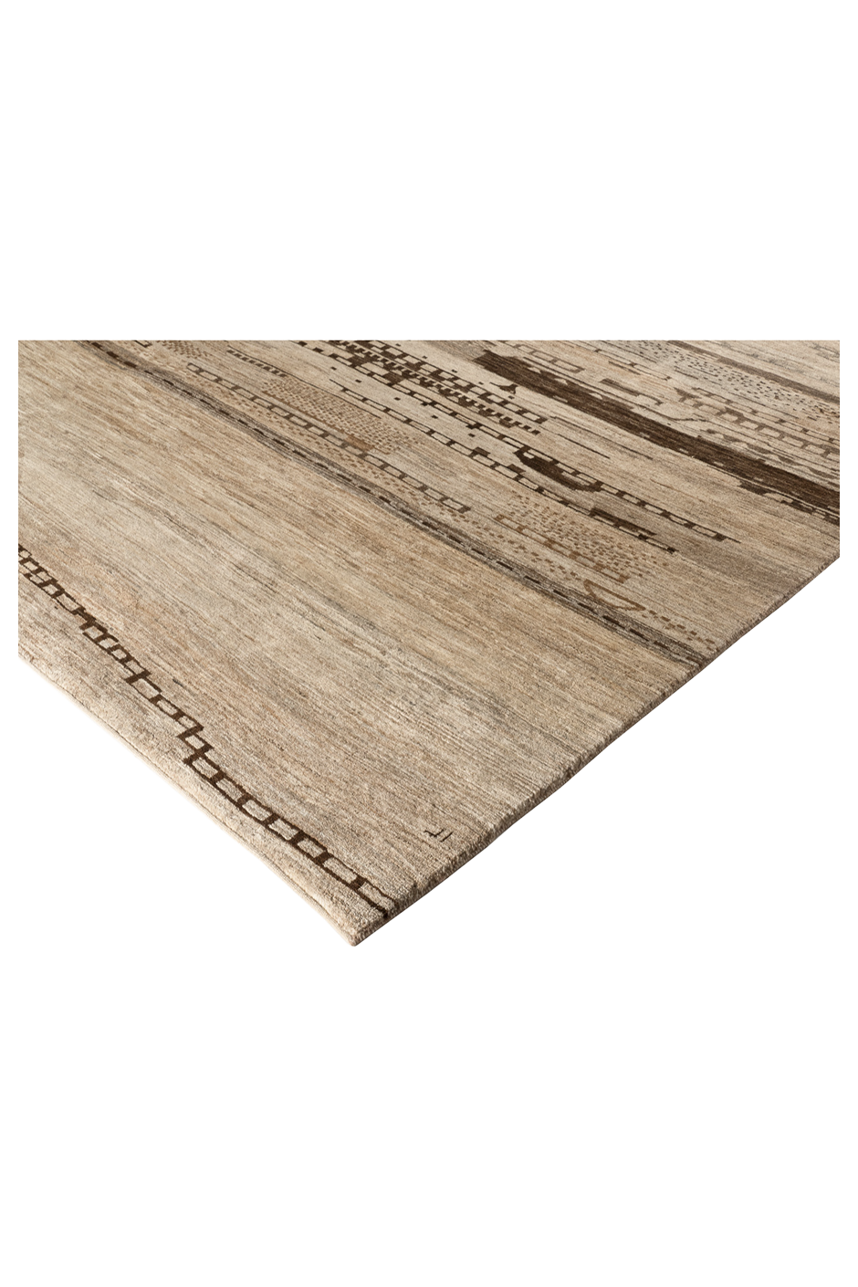 Die Wolle bleibt in ihrem ursprünglichen Farbspiel: von hellem Wollweiß bis zu erdigem Braun, mit all den feinen Zwischennuancen, die nur natürliche Wolle kennt. So entsteht ein Teppich, der nicht nur Wärme und Struktur in den Raum bringt, sondern auch eine Verbindung zur Landschaft und zum nomadischen Ursprung.