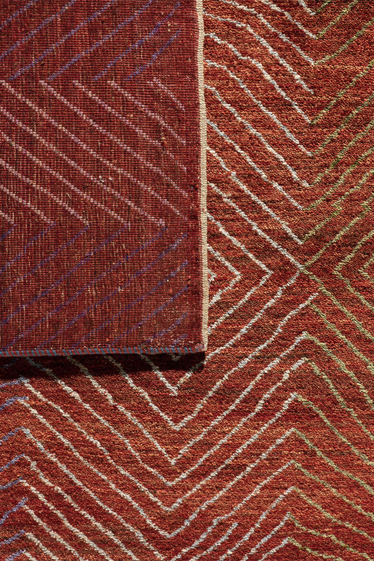 Dieser handgeknüpfte Gabbeh Teppich besticht durch sein auffälliges rotes Design mit einem feinen Zackenmuster in lebendigen Orange- und Gelbtönen. Das harmonische Zusammenspiel der Farben verleiht dem Teppich eine warme, einladende Atmosphäre, die sowohl traditionell als auch modern wirkt. Der Teppich wurde mit hochwertiger Schurwolle aus dem Zagrosgebirge von iranischen Nomadenfrauen gefertigt. Naturfarben aus Pflanzen und Blüten verleihen ihm zusätzlich eine authentische Ausstrahlung und machen ihn besonders pflegeleicht und strapazierfähig. Als handgeknüpftes Unikat ist dieser Teppich ein wahres Kunstwerk, das die iranische Tradition und Handwerkskunst in Ihr Zuhause bringt.
