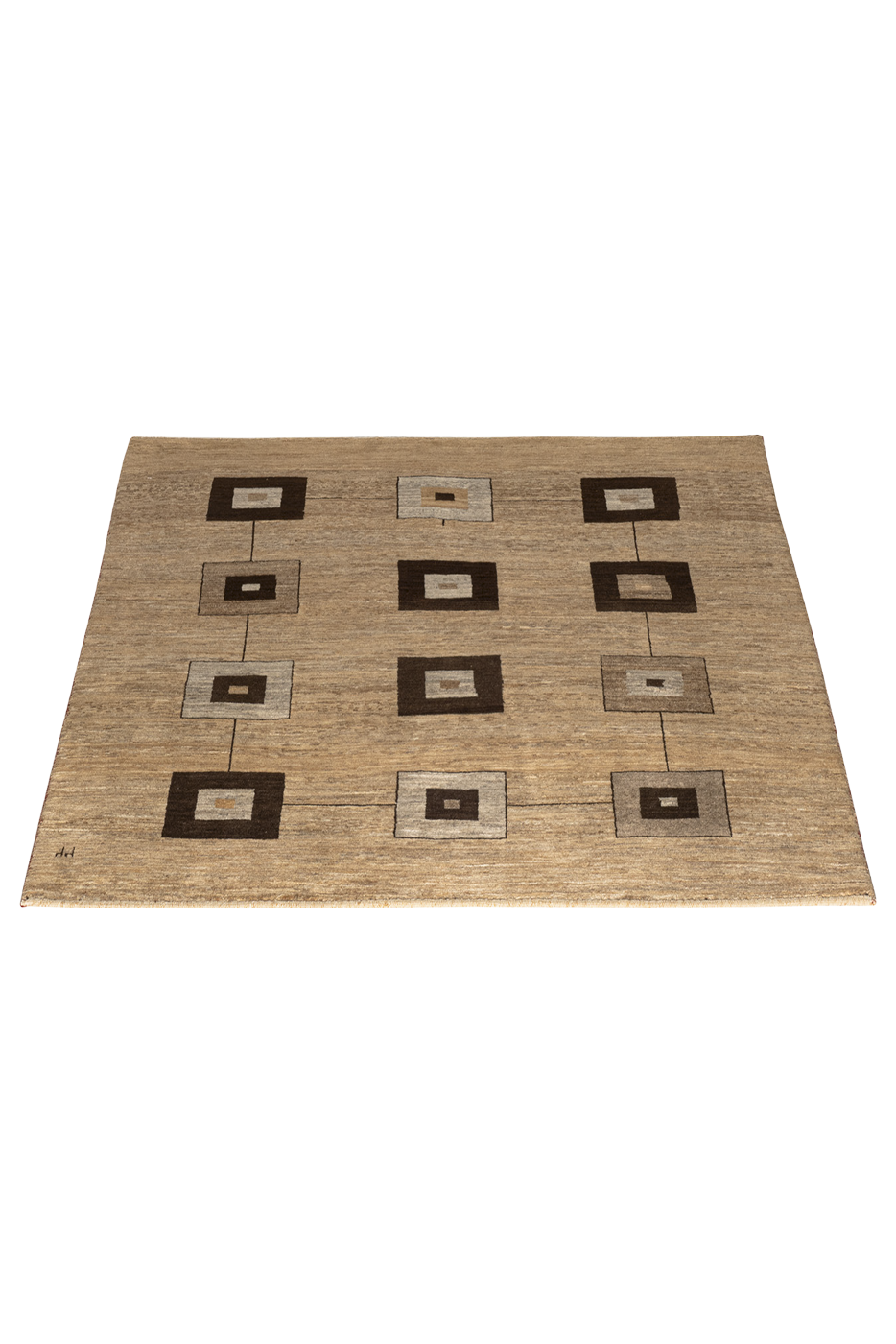 Der handgeknüpfte Gabbeh-Teppich „Würfelspiel“ ist ein kunstvolles Gleichgewicht zwischen nomadischer Tradition und moderner Formensprache. Mit seiner klaren, grafischen Komposition aus ineinander verschachtelten Quadraten bringt er rhythmische Struktur in jeden Raum – und dabei zugleich eine wohltuende Ruhe.