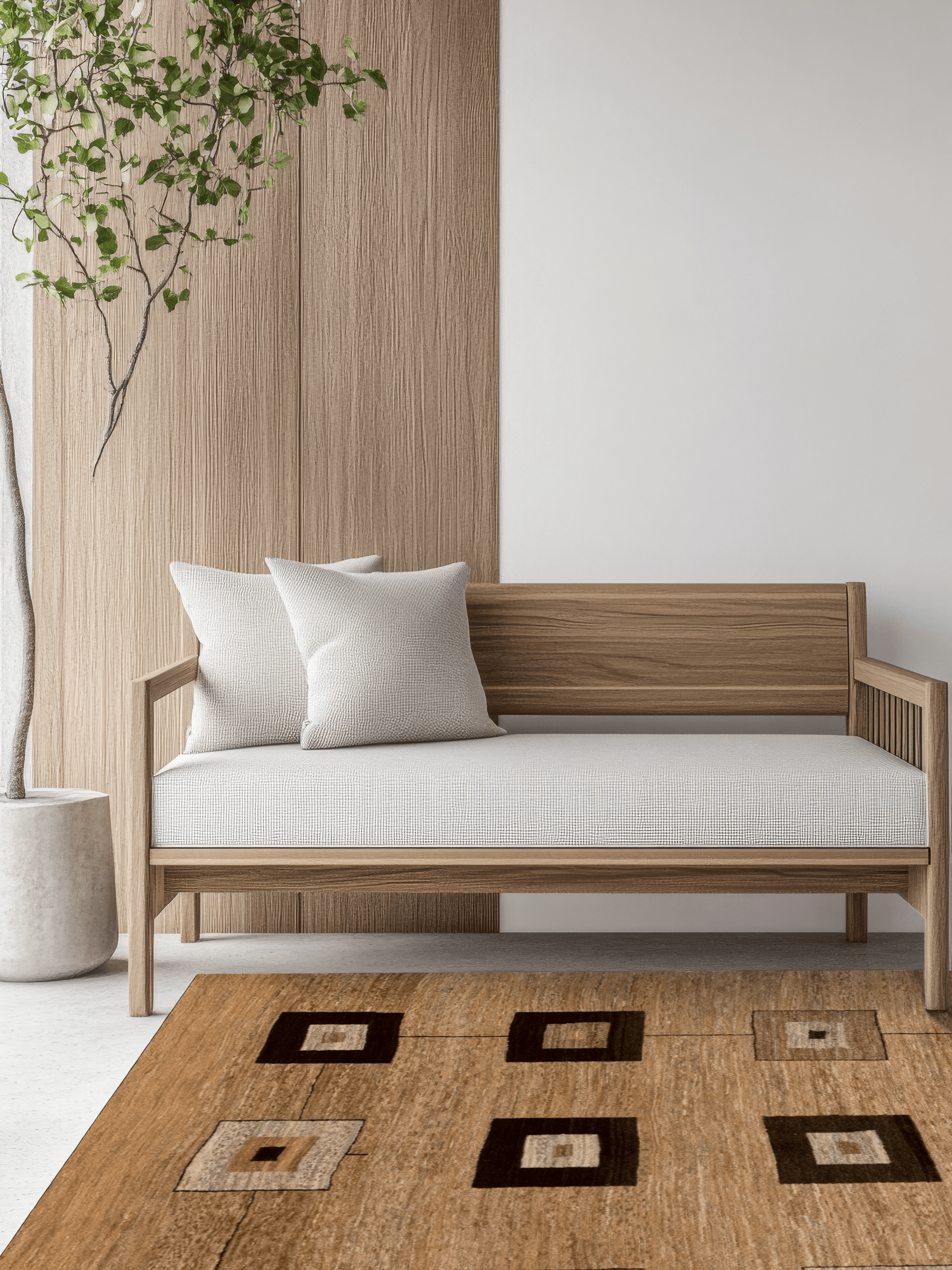 Gefertigt aus naturbelassener Schurwolle, spiegelt der Teppich die Schönheit des Ursprungs wider: Die feinen Brauntöne stammen ausschließlich von den natürlichen Wollfarben der Schafe. Jeder Farbton erzählt eine Geschichte – ganz ohne chemische Zusätze oder künstliche Färbung.