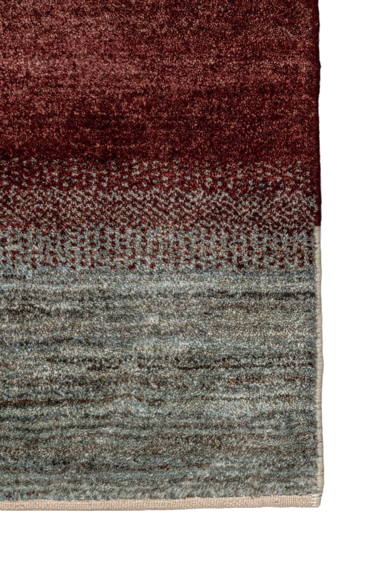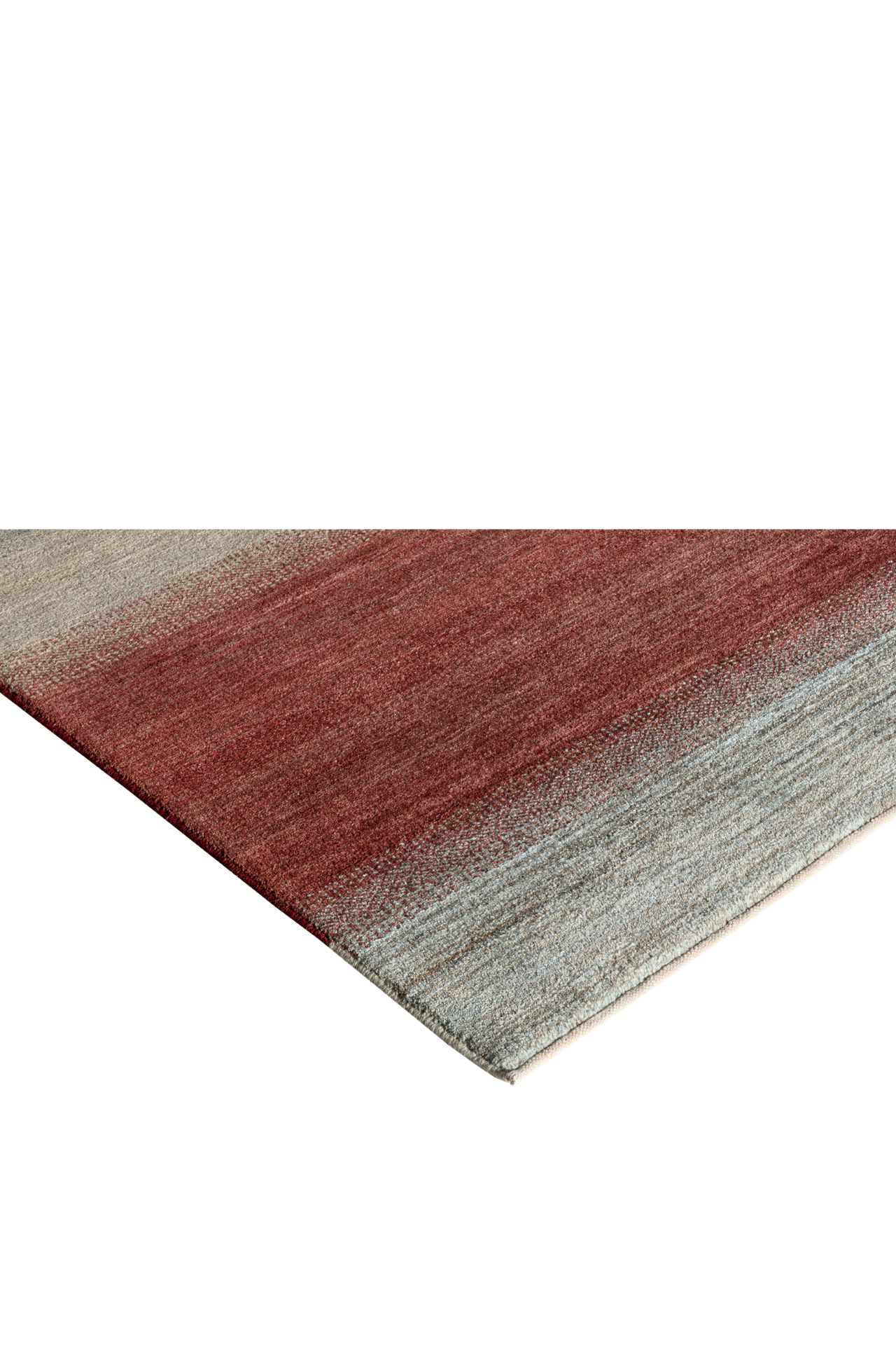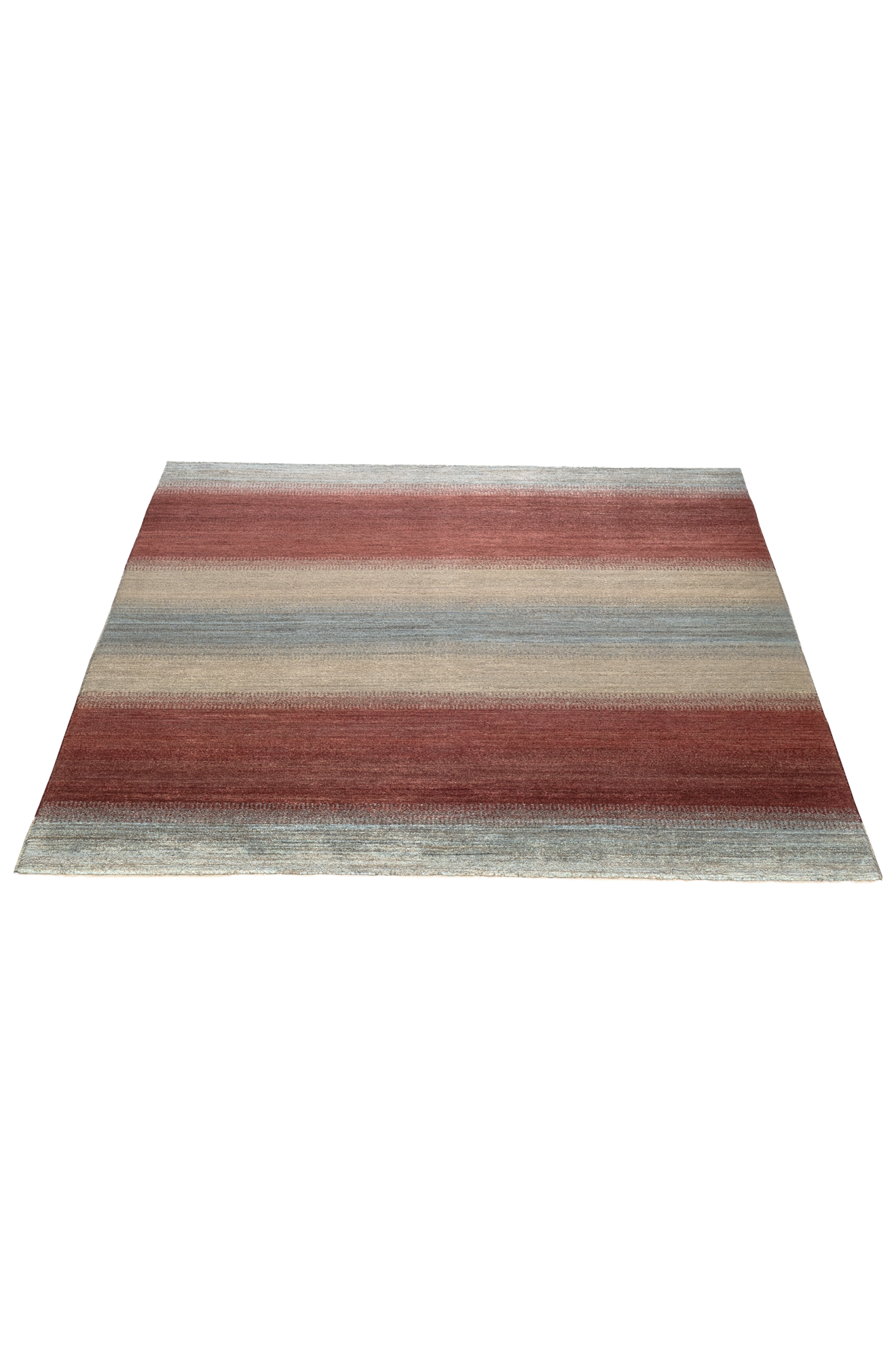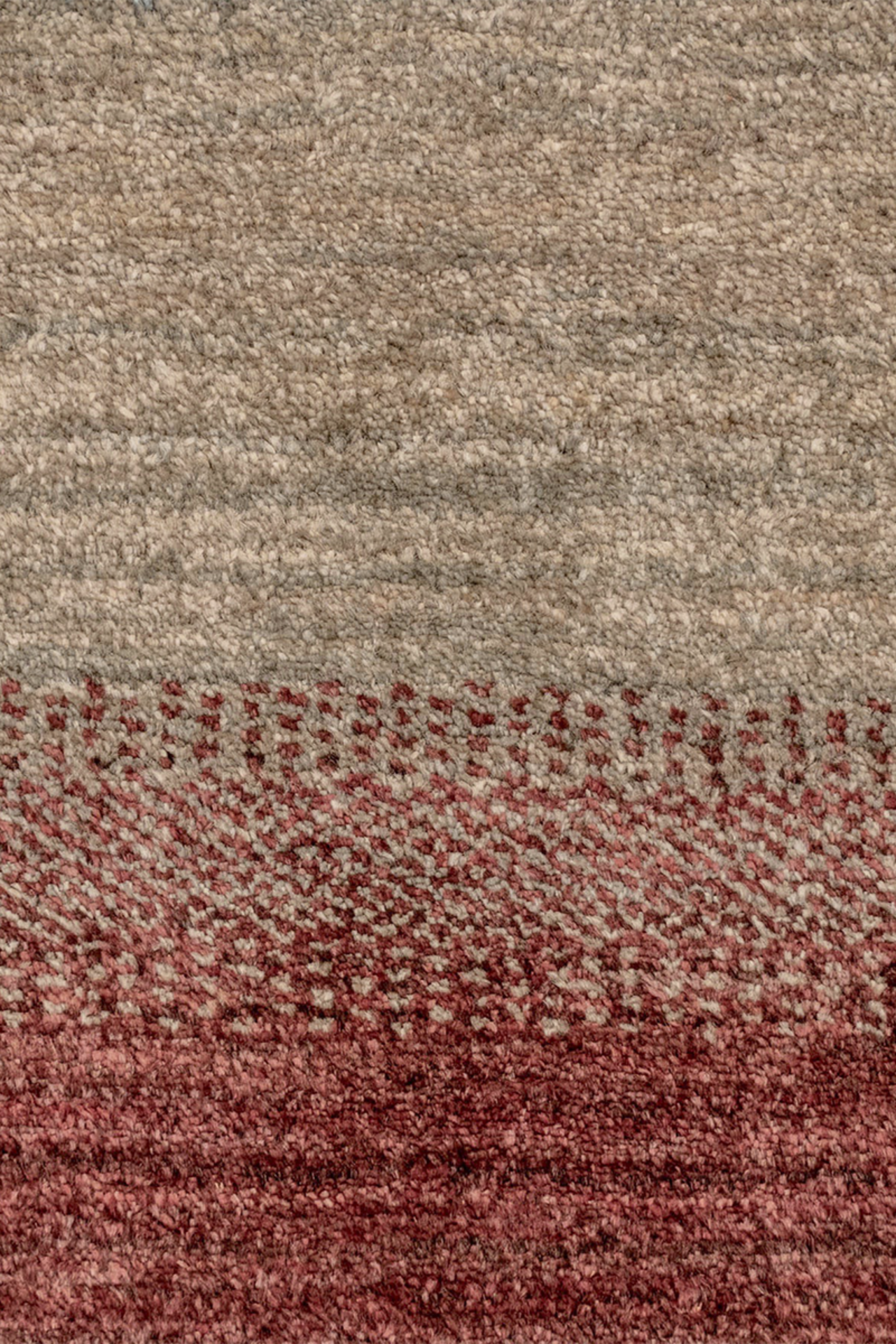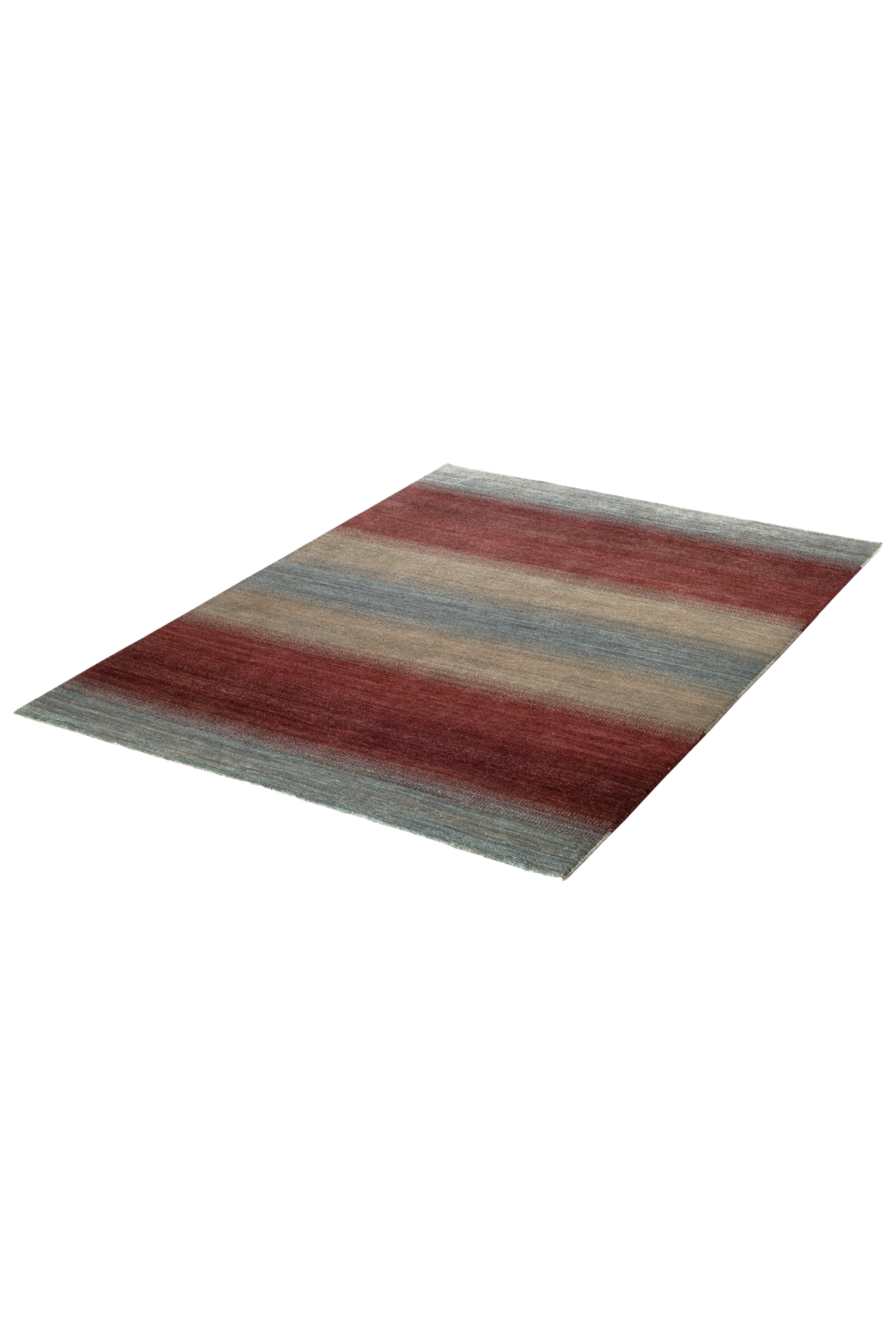 Wie die letzten Sonnenstrahlen, die über den Horizont gleiten und Himmel und Erde sanft miteinander verschmelzen lassen – so erzählt dieser Gabbeh-Teppich von Übergängen, Weite und Ruhe. Die harmonisch fließenden Farbverläufe aus Naturfarben in Kupferrot, Sandbeige und Himmelblau erinnern an Landschaften der Nomaden: vom warmen Wüstengrund bis zum offenen Firmament.