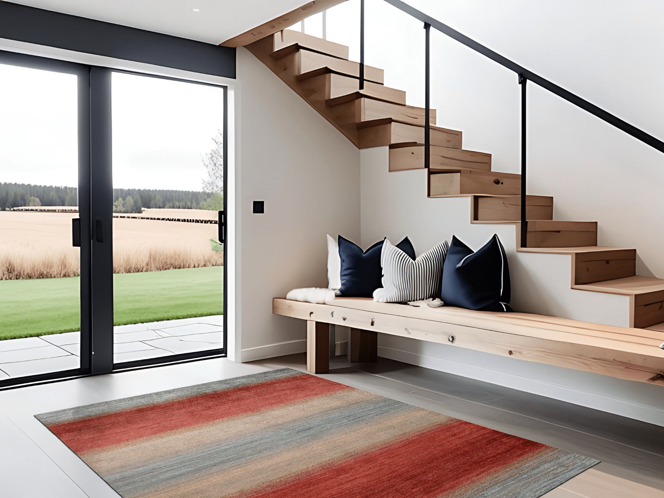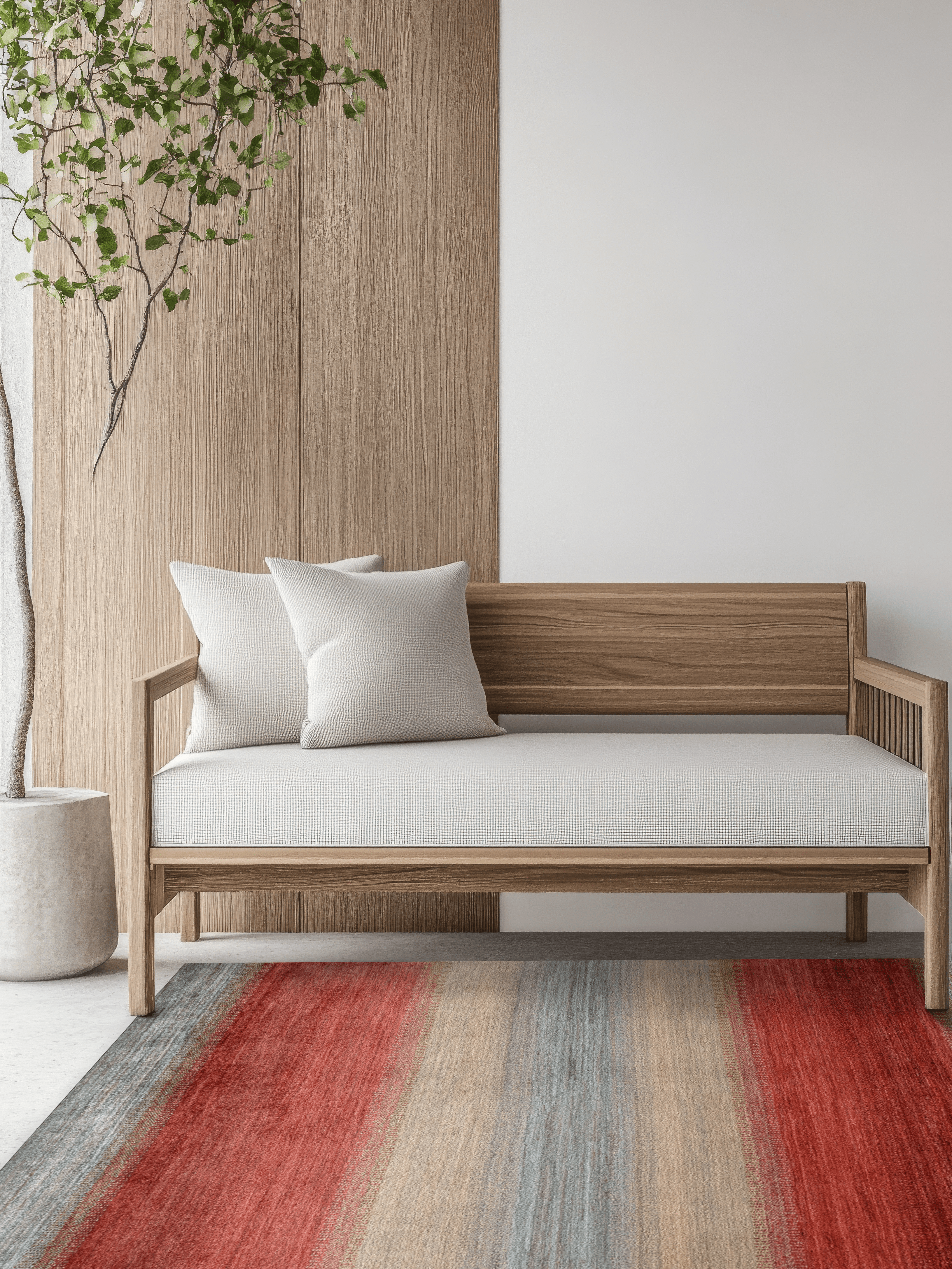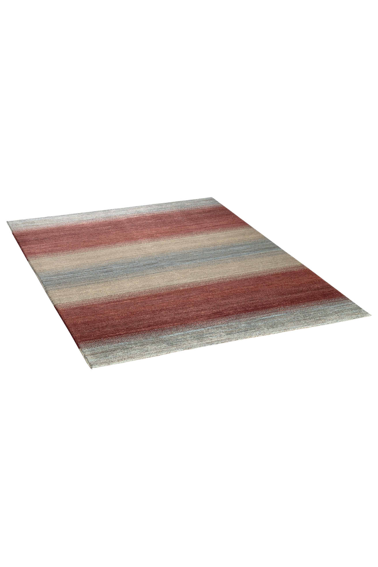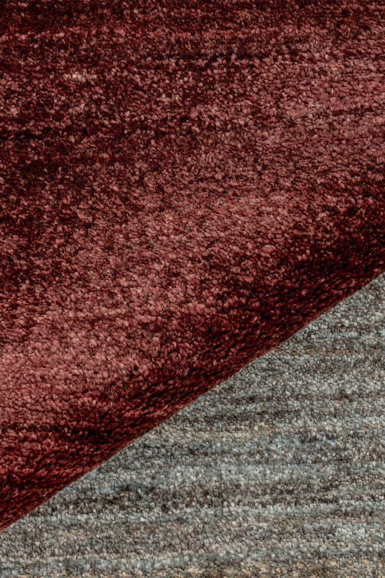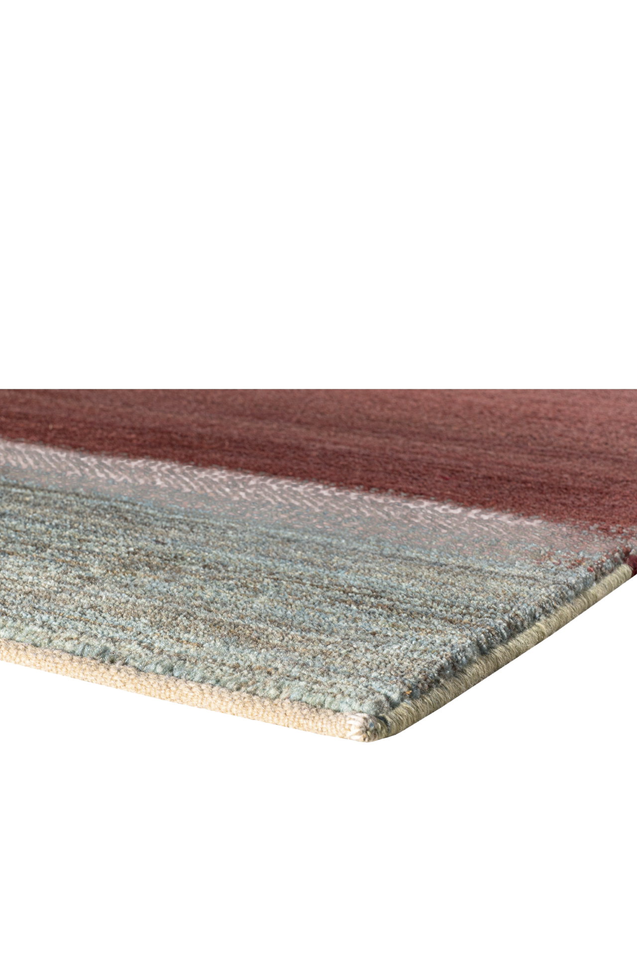 Wie die letzten Sonnenstrahlen, die über den Horizont gleiten und Himmel und Erde sanft miteinander verschmelzen lassen – so erzählt dieser Gabbeh-Teppich von Übergängen, Weite und Ruhe. Die harmonisch fließenden Farbverläufe aus Naturfarben in Kupferrot, Sandbeige und Himmelblau erinnern an Landschaften der Nomaden: vom warmen Wüstengrund bis zum offenen Firmament.