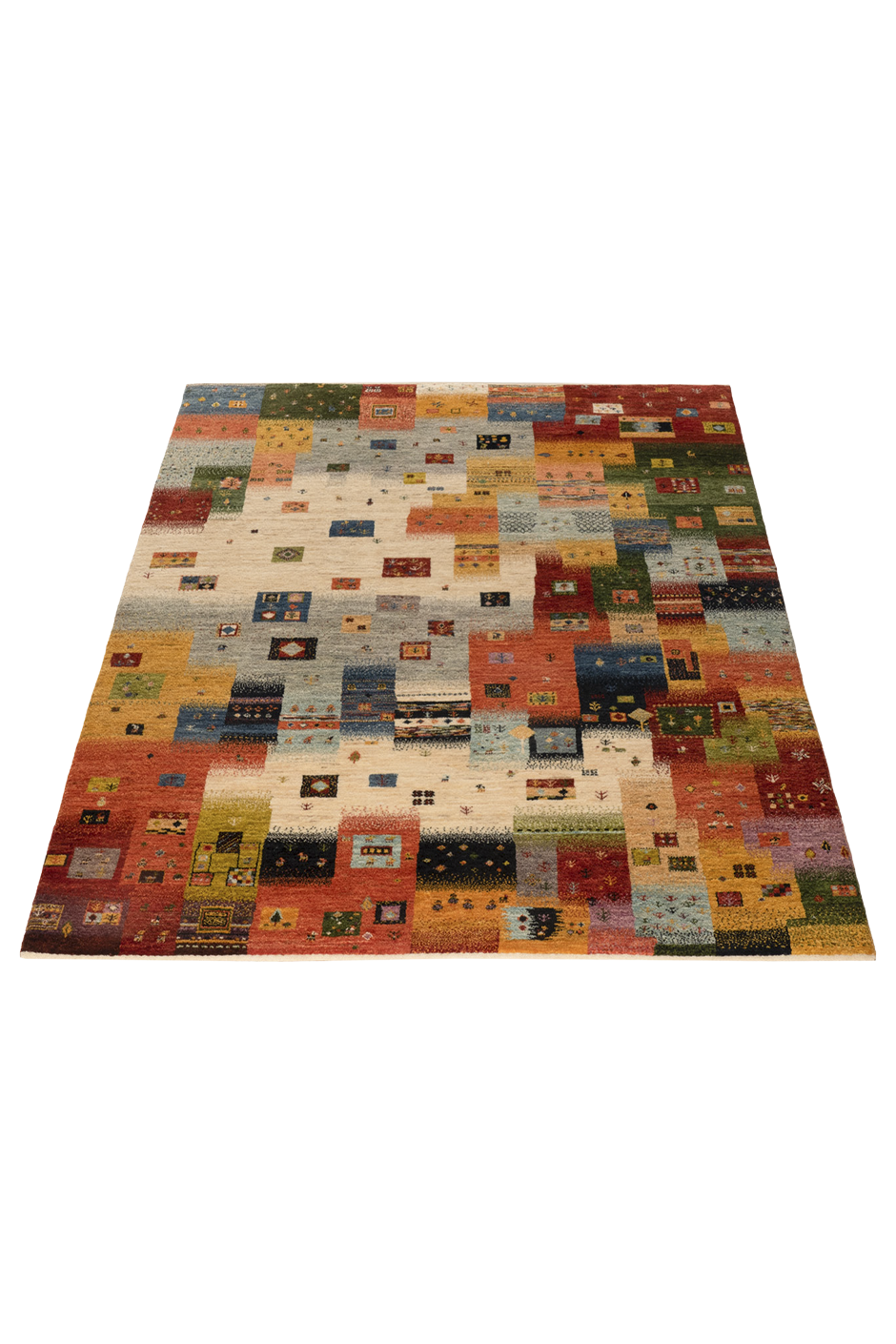 Die Nomadenfrau knüpfte dieses Kunstwerk in liebevoller Handarbeit, ohne Vorlage, und brachte ihre eigene Interpretation des bunten Dorflebens zum Leben. Jedes Detail des Teppichs ist ein einzigartiges Abbild der iranischen Landschaft und Kultur, das Ihrem Zuhause eine warme, einladende Atmosphäre verleiht.