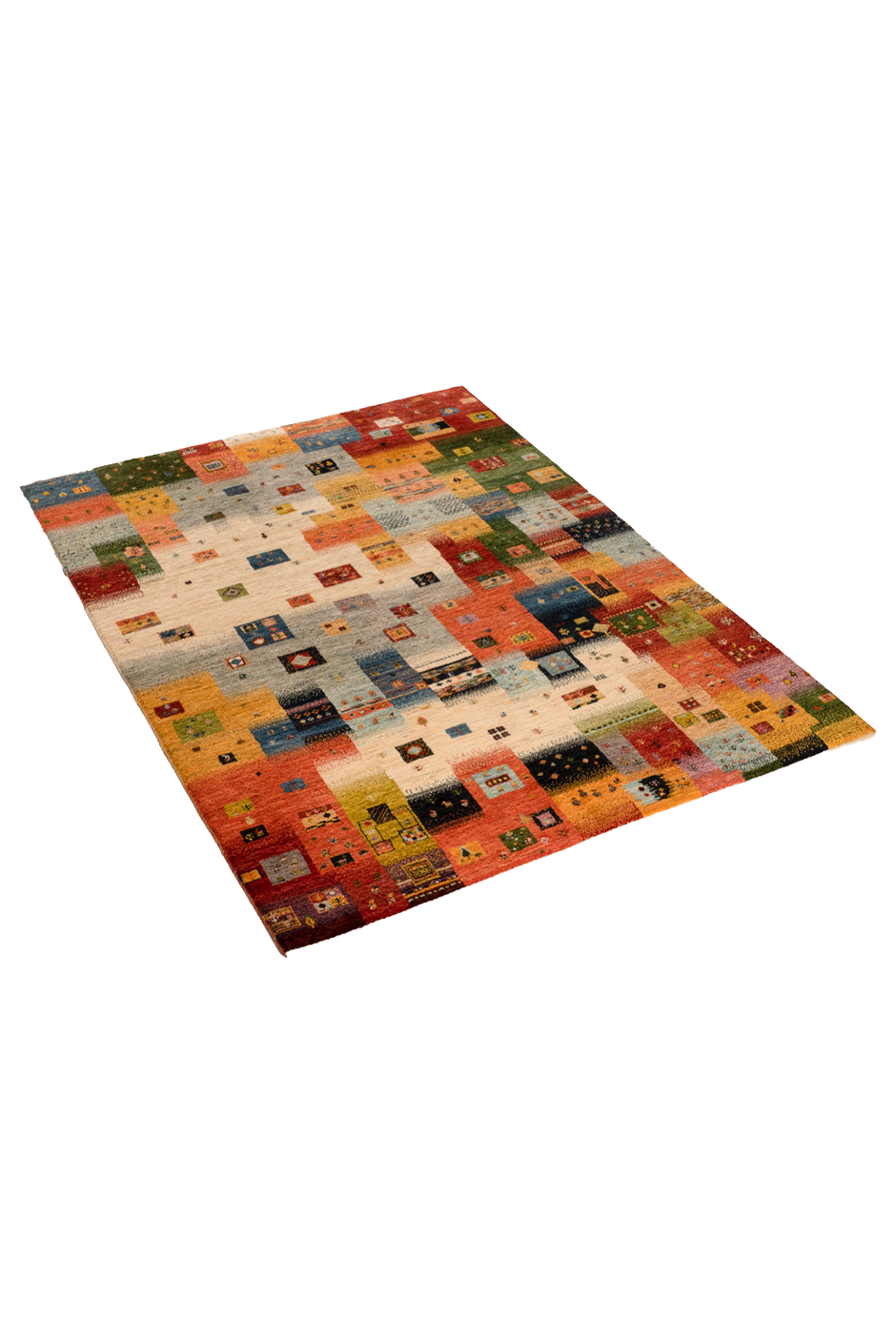 Der originale Nomadenteppich mit dem Motiv "Buntes Dorf" zeigt eine lebendige, farbenfrohe Darstellung eines Dorfes, das in den sanften Farben des iranischen Frühlings erblüht. Dieser handgeknüpfte Teppich wurde von Nomaden im Südiran gefertigt und spiegelt die lebendige Kultur und Tradition der Region wider. Die Zagroswolle, die für den Teppich verwendet wird, ist von höchster Qualität und zeichnet sich durch ihre außergewöhnliche Strapazierfähigkeit und Schmutzresistenz aus. Der Teppich wurde mit natürlichen Farbstoffen gefärbt, die aus Pflanzen und Blüten gewonnen wurden, was dem Teppich eine authentische und umweltfreundliche Ausstrahlung verleiht.