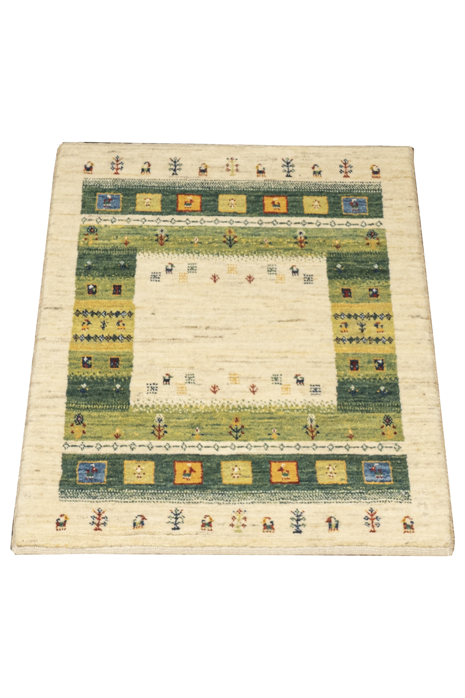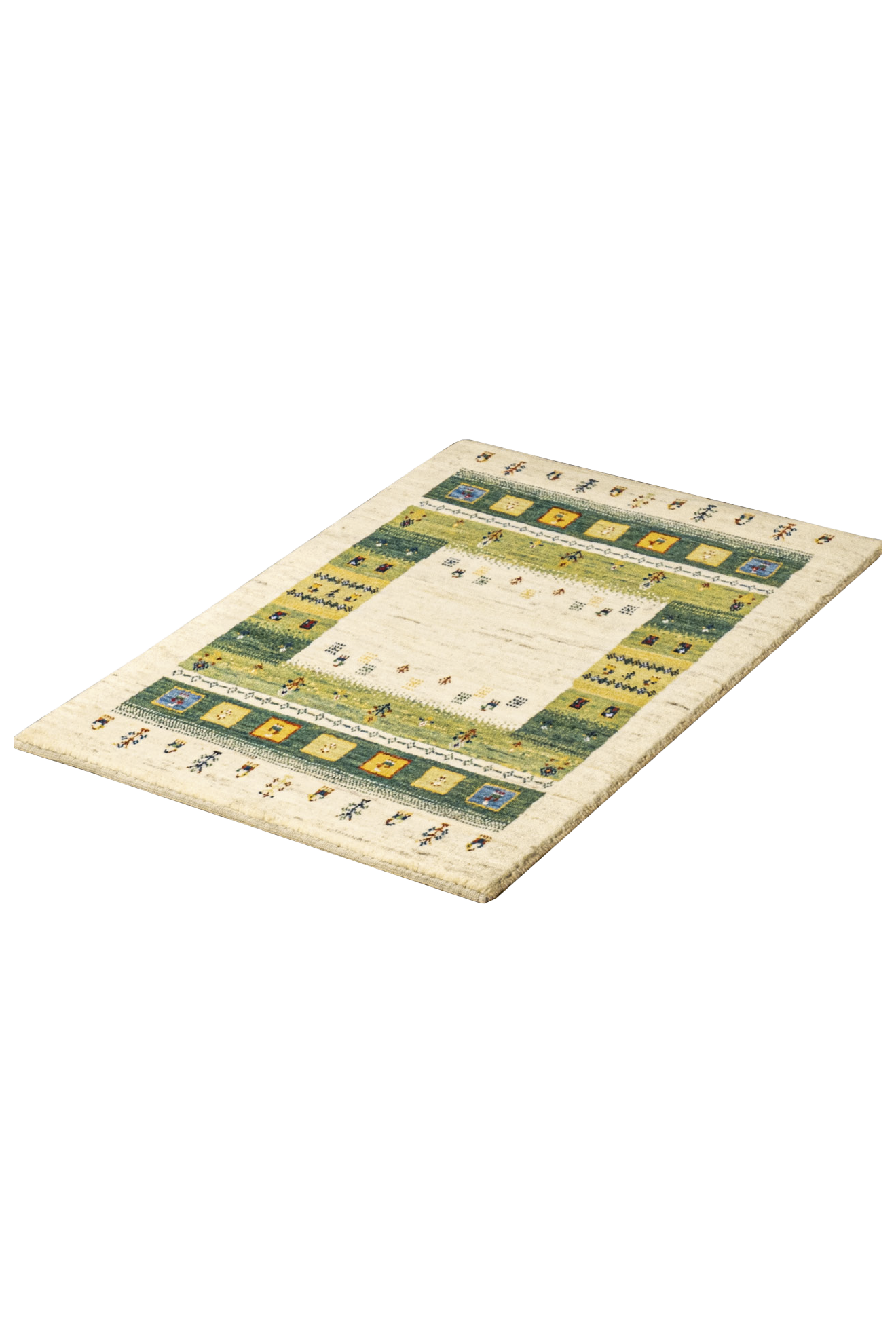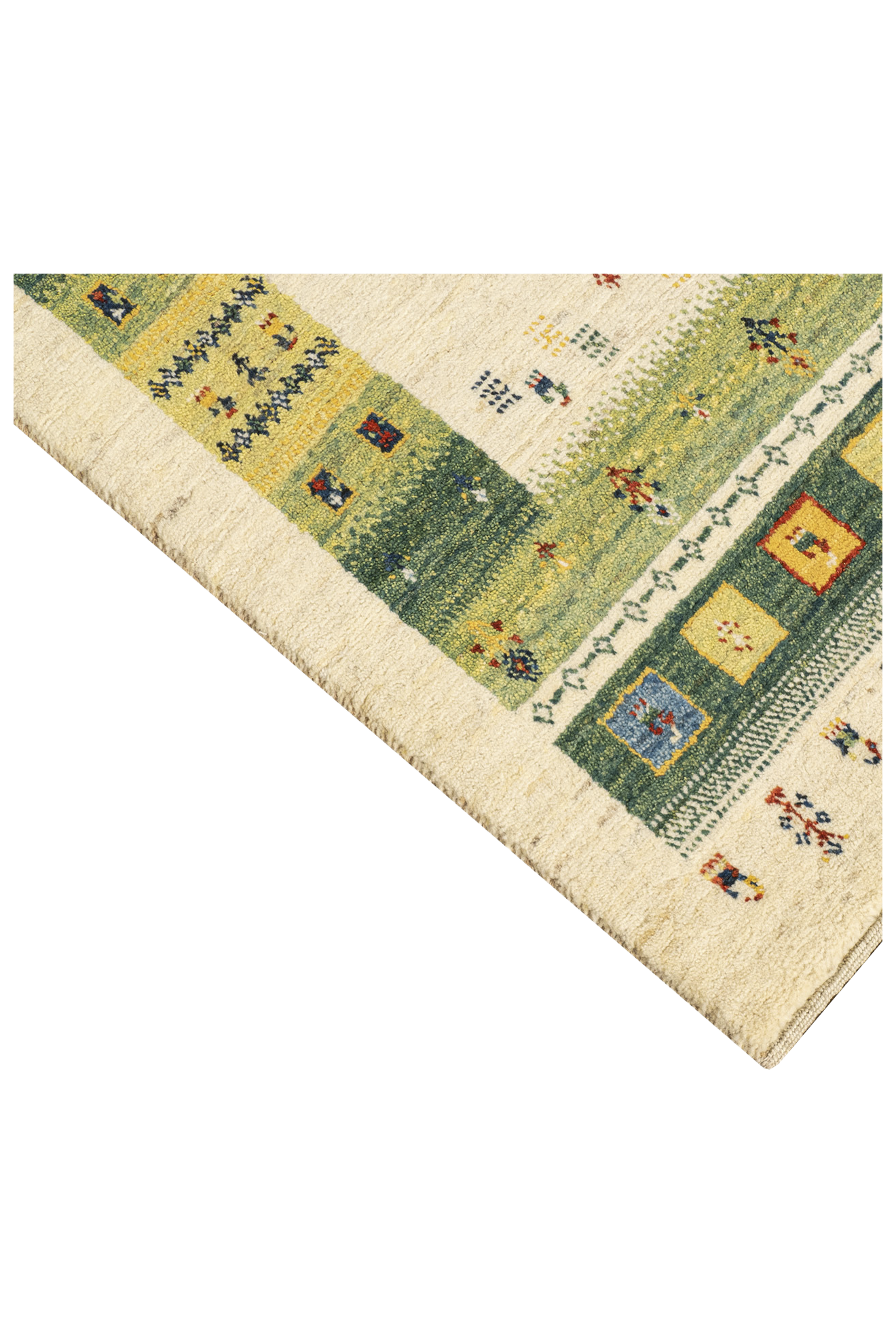 Dieser bezaubernde, naturbelassene Gabbeh-Teppich mit seiner bunten Bordüre ist ein einzigartiges Meisterwerk der Nomadenkunst. Handgeknüpft aus der feinsten Hochlandwolle der Region Fars, zeichnet sich der Teppich durch außergewöhnliche Geschmeidigkeit und Strapazierfähigkeit aus. Die Wolle wird traditionell von Hand kardiert und gesponnen, was dem Teppich seine besondere Struktur und Langlebigkeit verleiht.