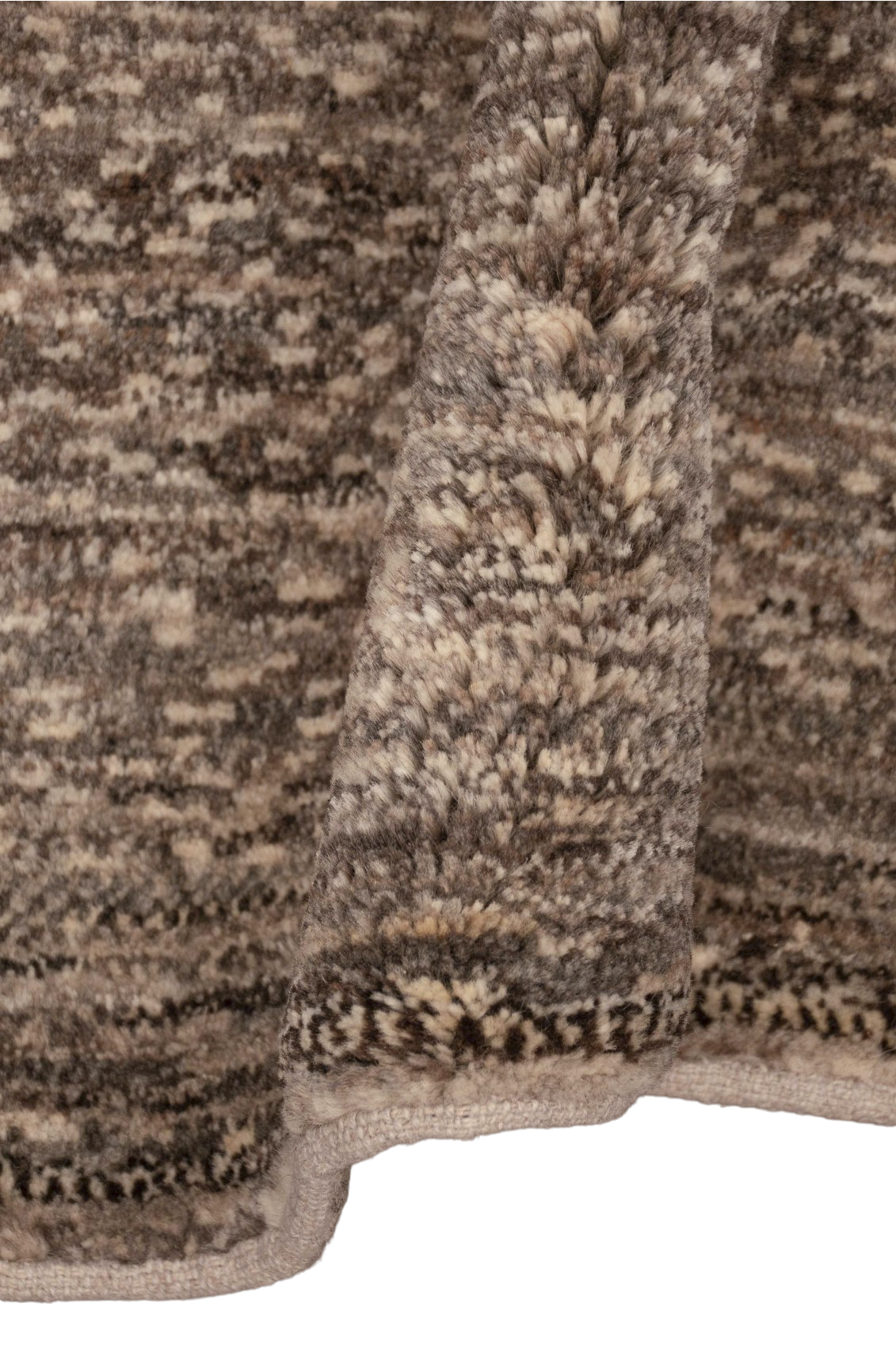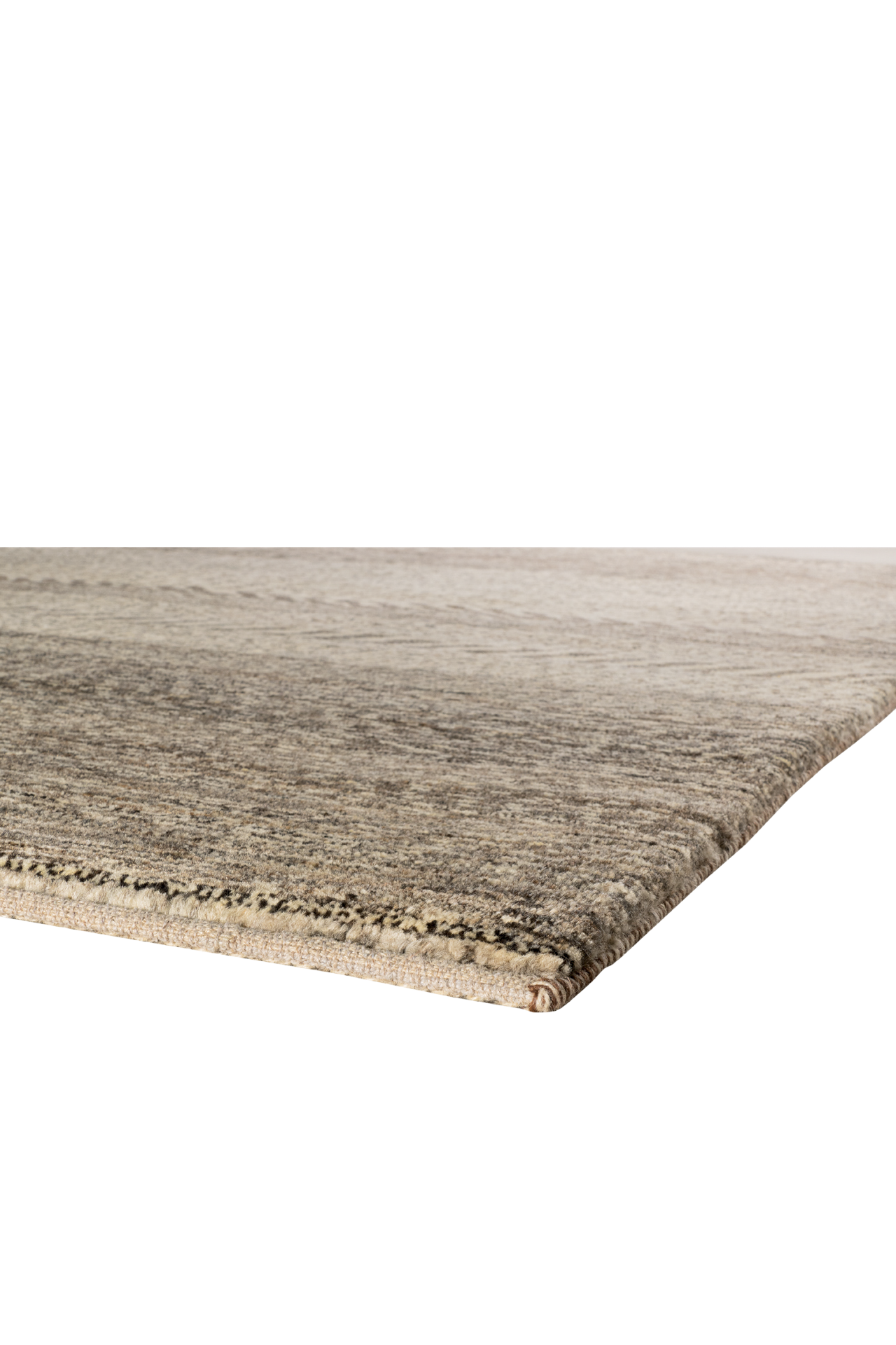 „Sanfte Kieselsteine“ ist ein handgeknüpftes Unikat, das durch seine sanfte Zurückhaltung besticht. In fein nuancierten Naturtönen – zwischen hellem Stein, Sand und Taupe – fließen die Musterungen wie kleine, rhythmische Ablagerungen über das Feld. Sie erinnern an Kiesel, vom Wasser geformt, vom Wind bewegt, in stiller Ordnung liegend. Dieser Teppich wurde aus reiner Hochlandwolle gefertigt und mit pflanzlichen Farben auf natürliche Weise gefärbt. Das Unikat ist ideal für Räume, die Ruhe, Haptik und Understatement miteinander verbinden möchten – modern, geerdet, zeitlos schön.