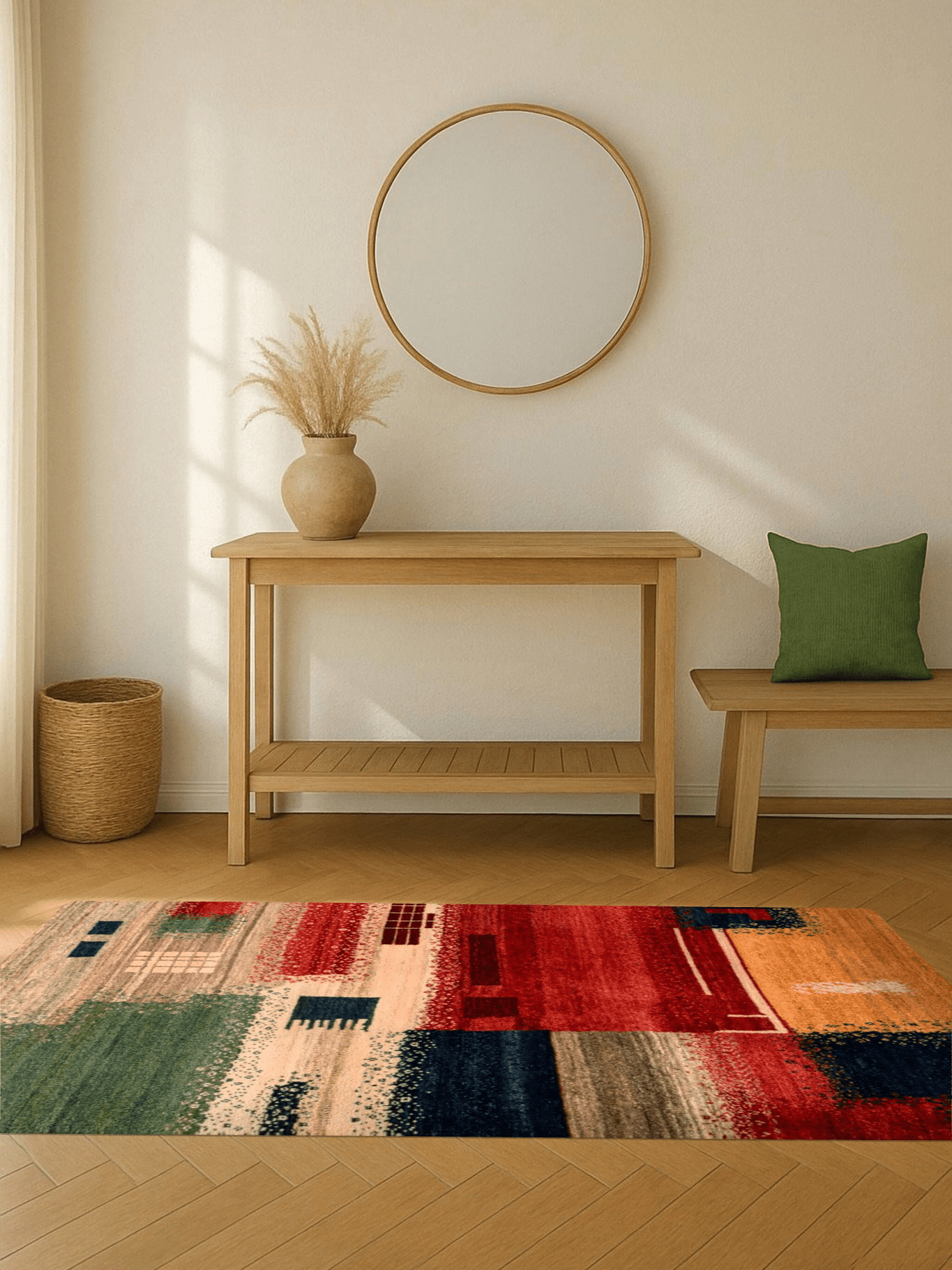 Ein farbenfroher und besonderer Gabbeh Teppich Village aus Indien, der durch seine kräftigen Farben gute Laune in Ihren Wohnraum bringt. Die von Hand versponnene, hochwertige Schurwolle wurde mit den besten, kontrollierten Farben gefärbt. Durch die grellen Farben wirkt der Teppich sehr freundlich und aufgeweckt. Wir empfehlen Ihnen eine rutschhemmende Unterlage zu verwenden. Bedenklos können sie diesen Gabbeh Teppich auch auf Böden mit Fußbodenheizung legen.