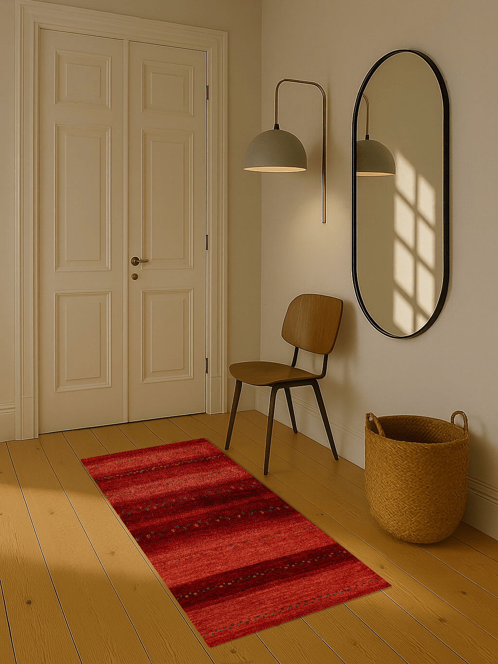 Der Läufer „Roter Pfad“ beeindruckt mit seiner intensiven roten Farbgebung und feinen, dezenten Musterdetails. Wie ein lebendiger Weg durch die Geschichte persischer Nomaden entfaltet sich dieses kunstvolle Unikat in jedem Raum. Die kleinen floralen Akzente fügen sich subtil in das Gesamtbild ein und verleihen dem Teppich eine ruhige Tiefe, ohne sich in den Vordergrund zu drängen. Gefertigt aus handversponnener Schurwolle und mit reinen Naturfarben gefärbt, überzeugt der Läufer nicht nur durch seine natürliche Ausstrahlung, sondern auch durch höchste Handwerksqualität. Robust und langlebig wird er zum stilvollen Begleiter in anspruchsvoll eingerichteten Wohnräumen.