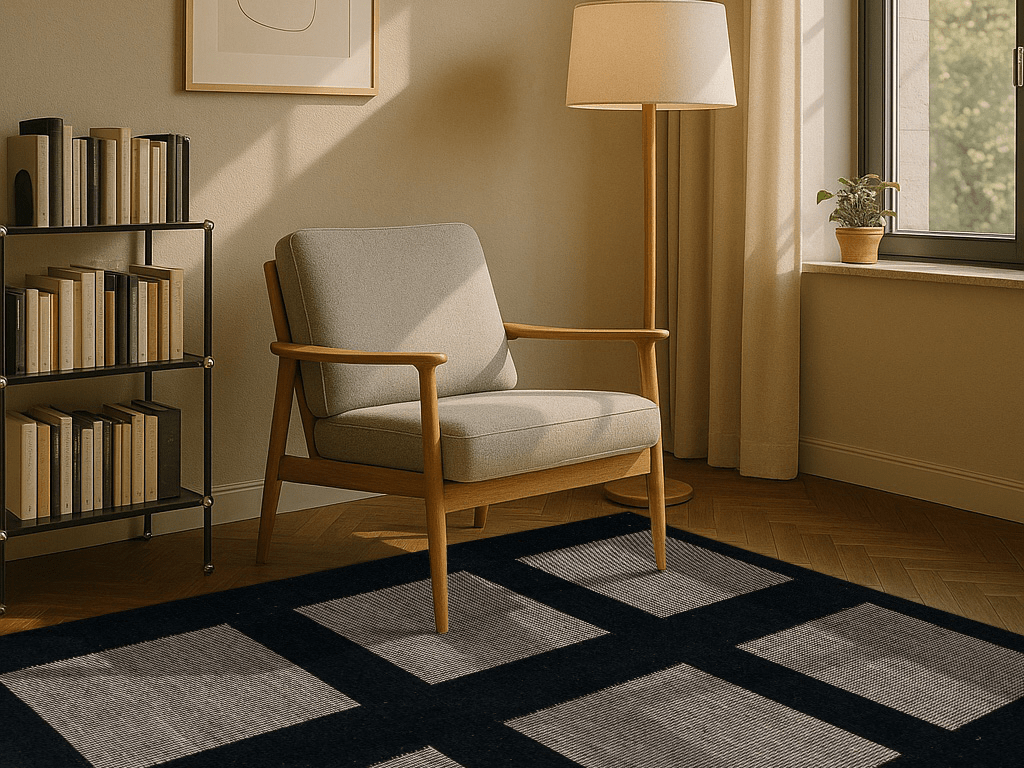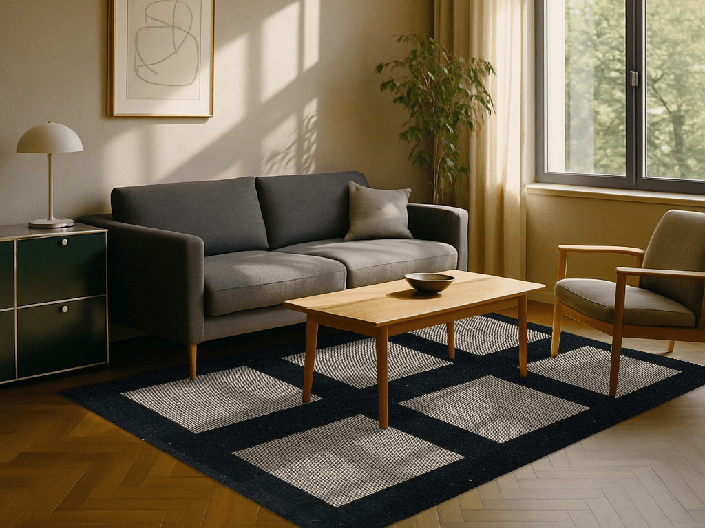 Handwebteppiche sind ein Must-Have für jedes Wohnkonzept mit skandinavischem Flair. Die gemütlichen, kuschligen Teppiche in Strick-Optik sind beidseitig verwendbar und aus bester Schurwolle. So ist auch dieser Handwebteppich aus scharzer und beigefarbener Wolle ein Highlight für Ihr Zuhause. Die geradlinigen Formen im Teppich sorgen für einen modernen Look. Kombinierbar sind die Teppiche außerdem mit schönen Kissen aus Strick, passenden Plaids für gemütliche Stunden auf dem Sofa und ausgesuchten Holzaccessoires.