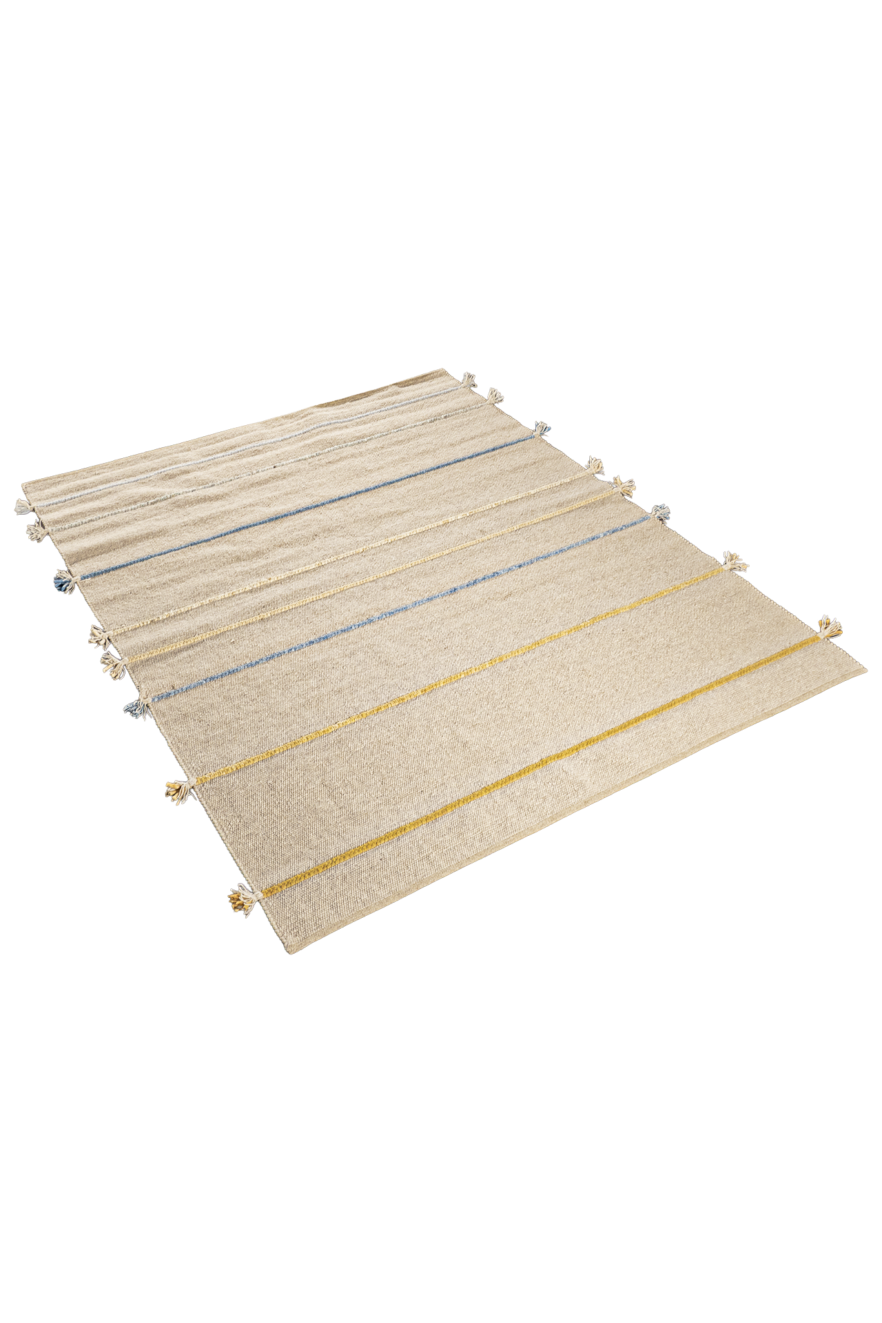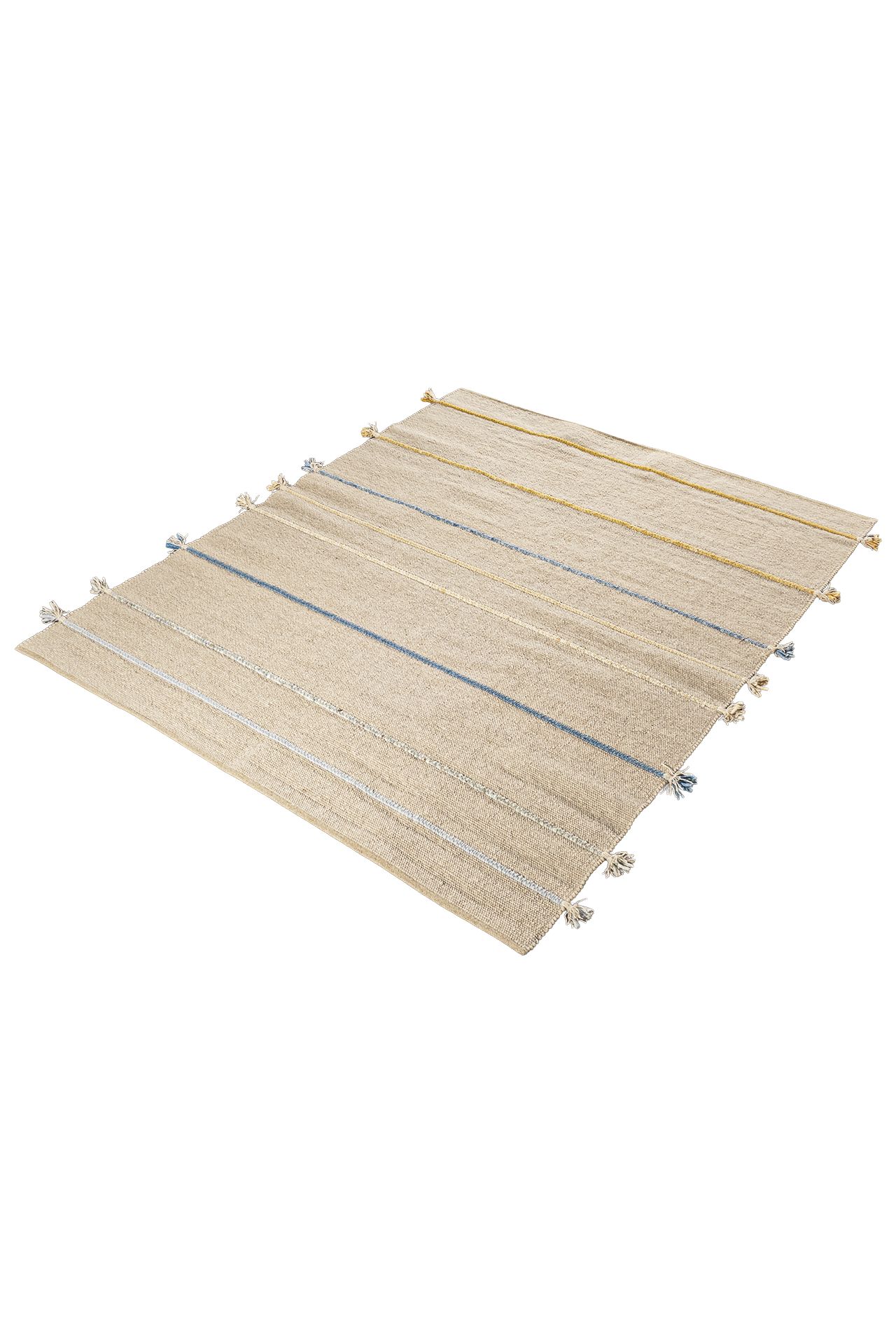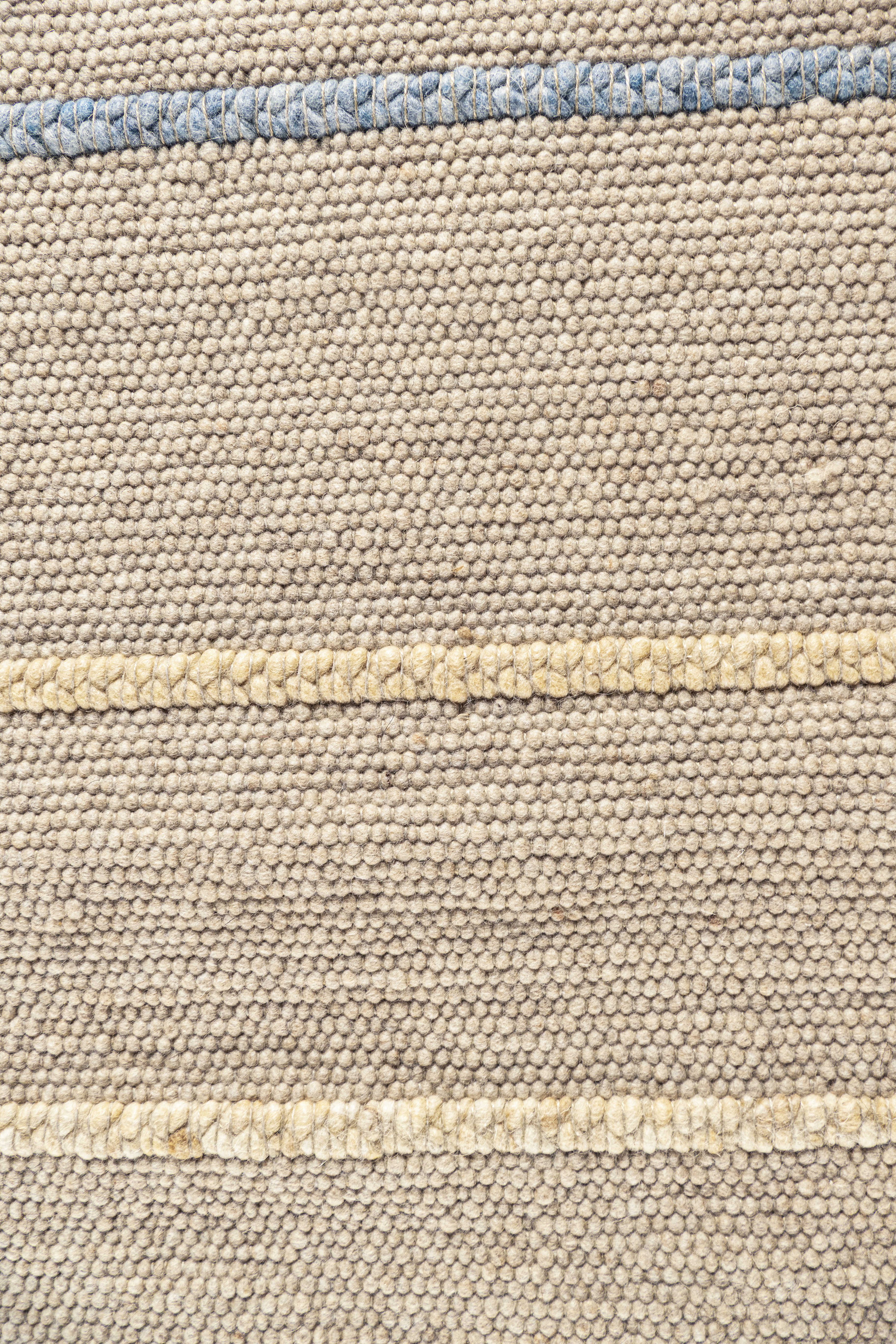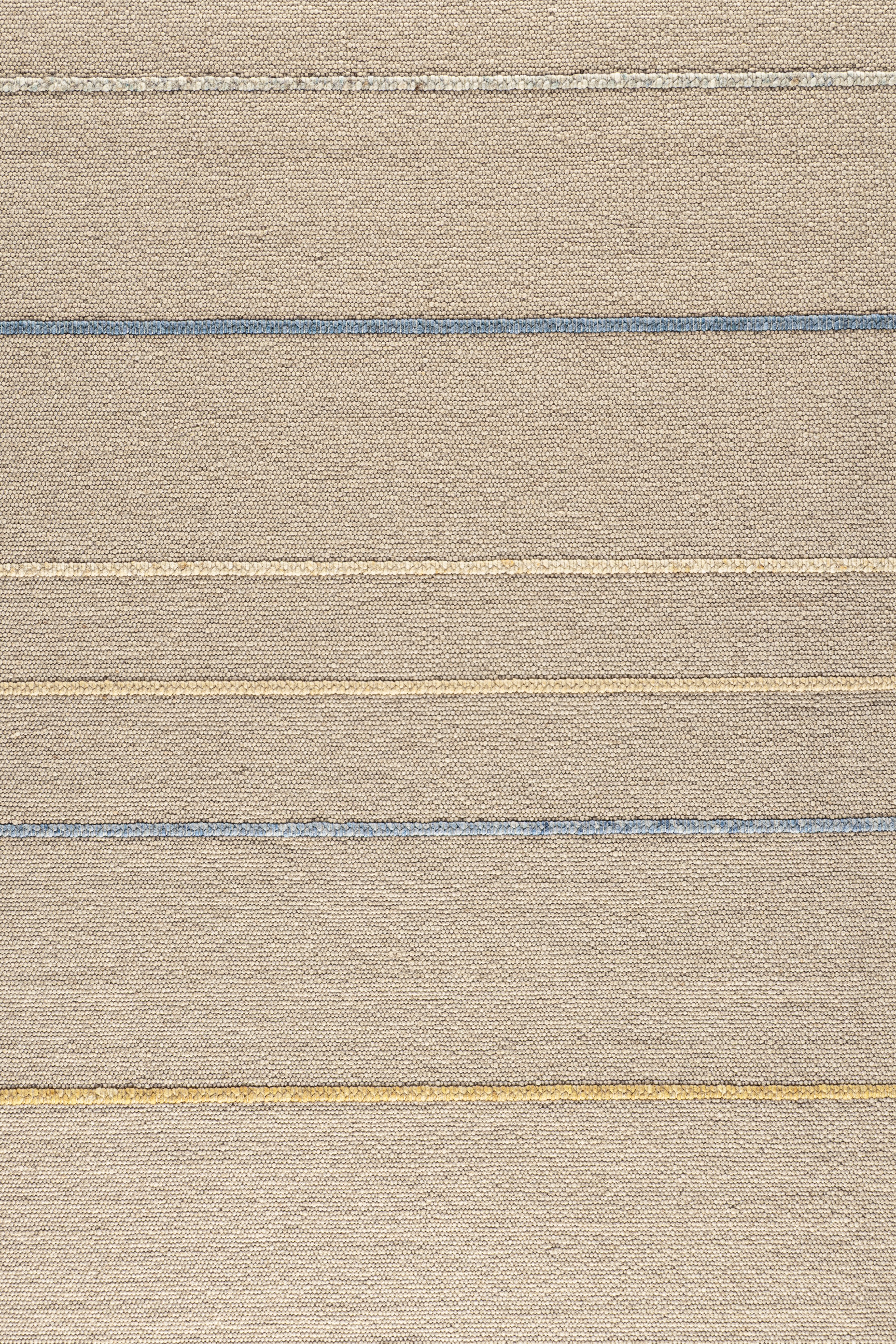 Der Summer Music Teppich zeigt ein leichtes, erfrischendes Motiv aus sanften Naturtönen, durchzogen von feinen Linien in Blau- und Gelbnuancen, die an die lebhafte, sonnige Melodie eines Sommertages erinnern. Die klar rhythmisch angeordneten Streifen verleihen dem Teppich eine moderne, luftige Struktur und bringen helle, freundliche Akzente in jeden Raum. Da der Teppich keine klassische Ober- oder Unterseite besitzt, kann er flexibel in beide Richtungen gelegt werden – je nachdem, wie das Muster den Raum am harmonischsten ergänzt. Gefertigt aus gewalkter, vorgefilzter Schurwolle bietet der Teppich eine angenehm natürliche Haptik, hohe Strapazierfähigkeit und langlebige Qualität. Hergestellt in Europa steht er für hochwertige, verantwortungsbewusste Produktion.