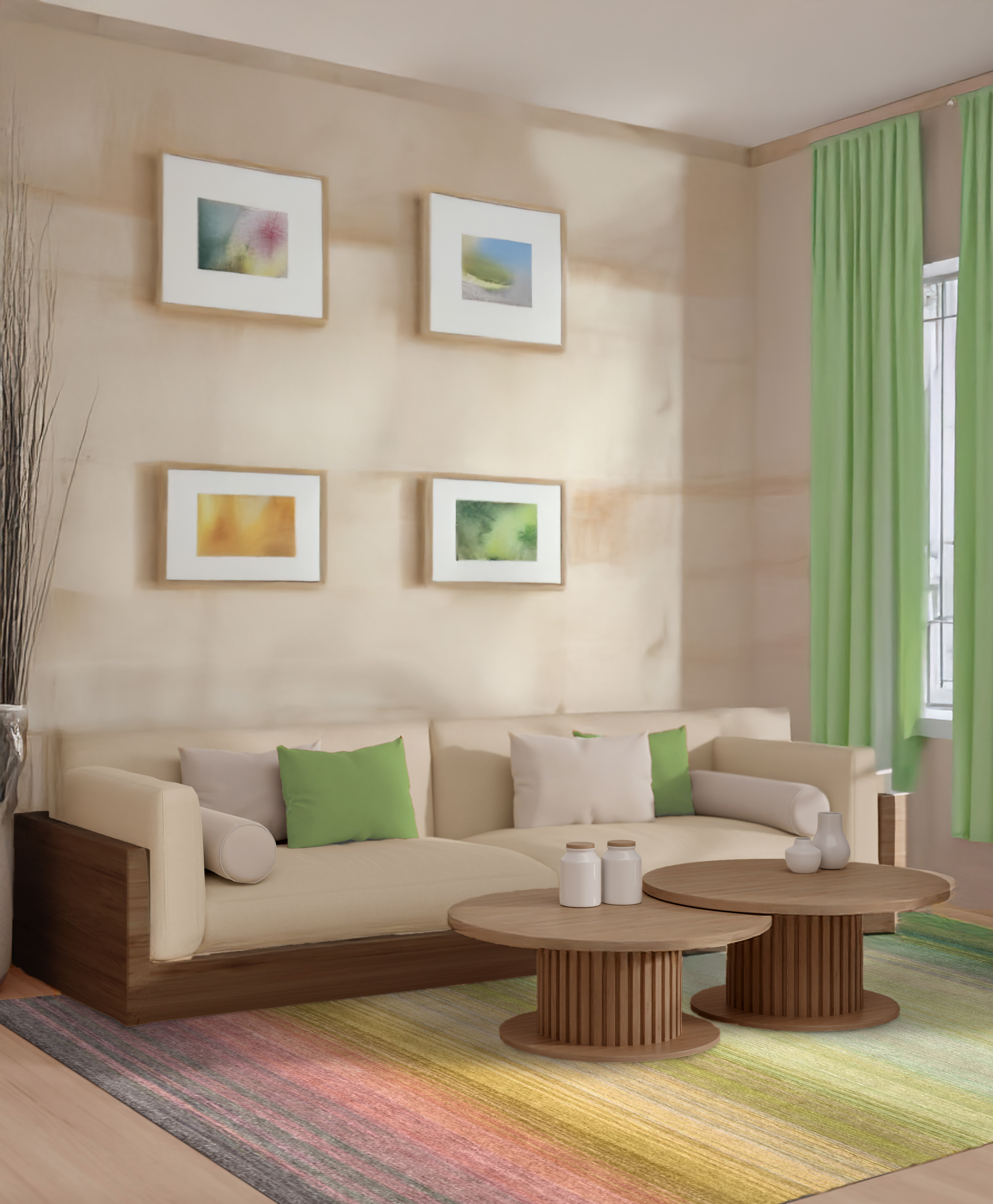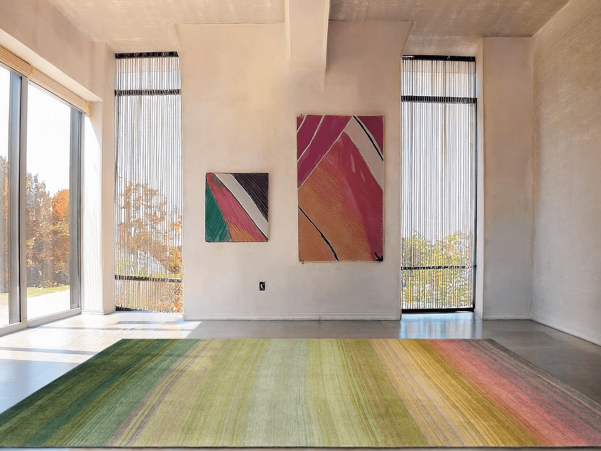 In intensiven Rottönen, fröhlichem Gelb und erfrischendem Grün vereint dieser Teppich alles, was eine lebendige, warme Atmosphäre ausmacht. Die Farben fließen harmonisch ineinander und schaffen eine dynamische, doch ausgewogene Balance, die dem Raum eine frische Energie verleiht.