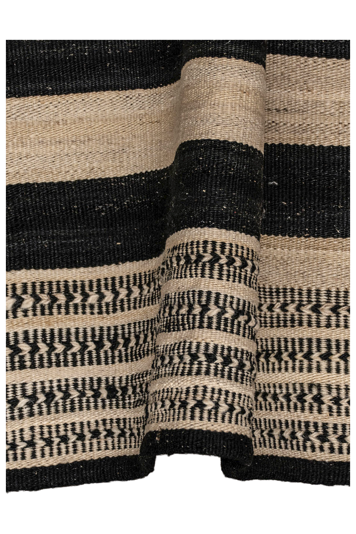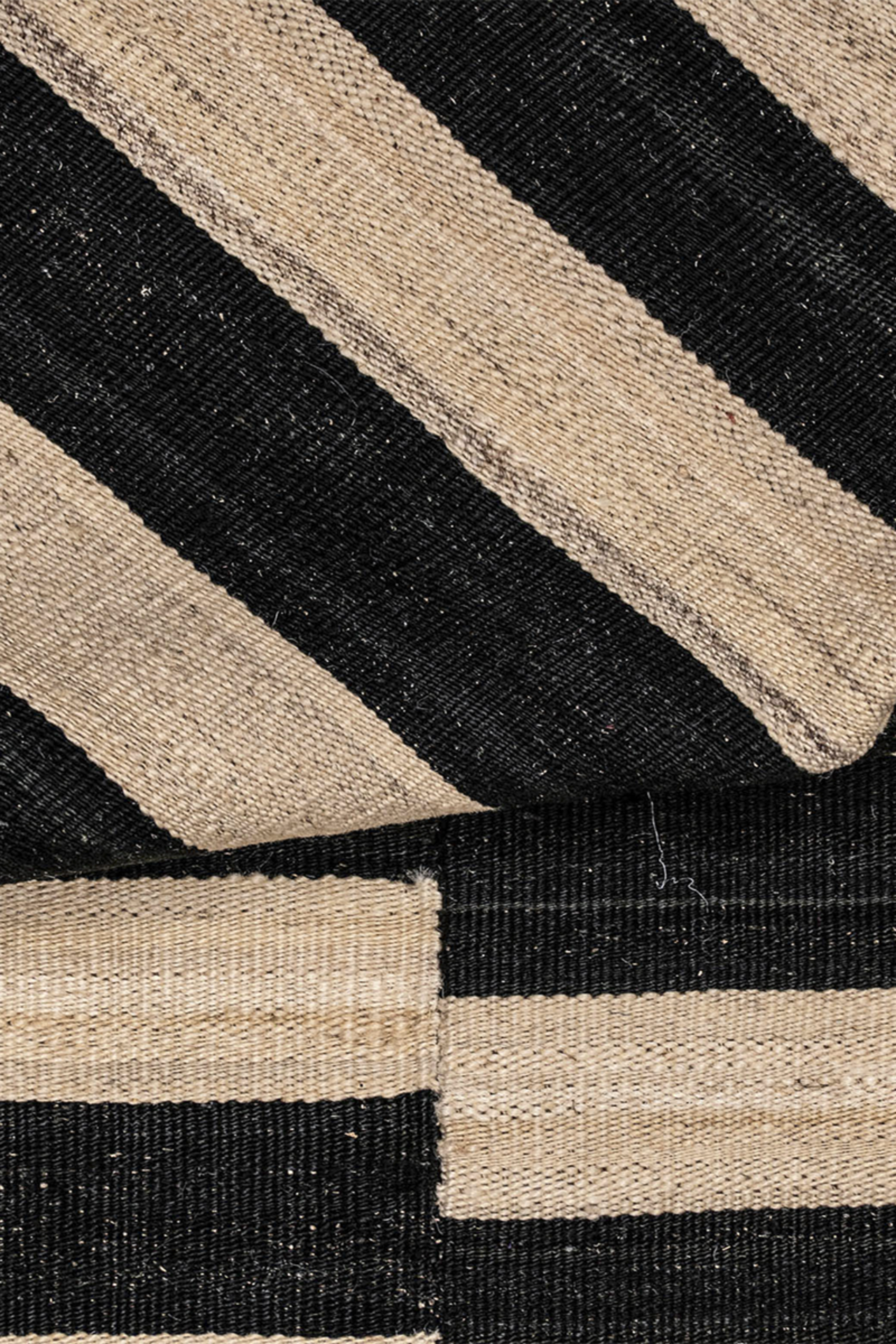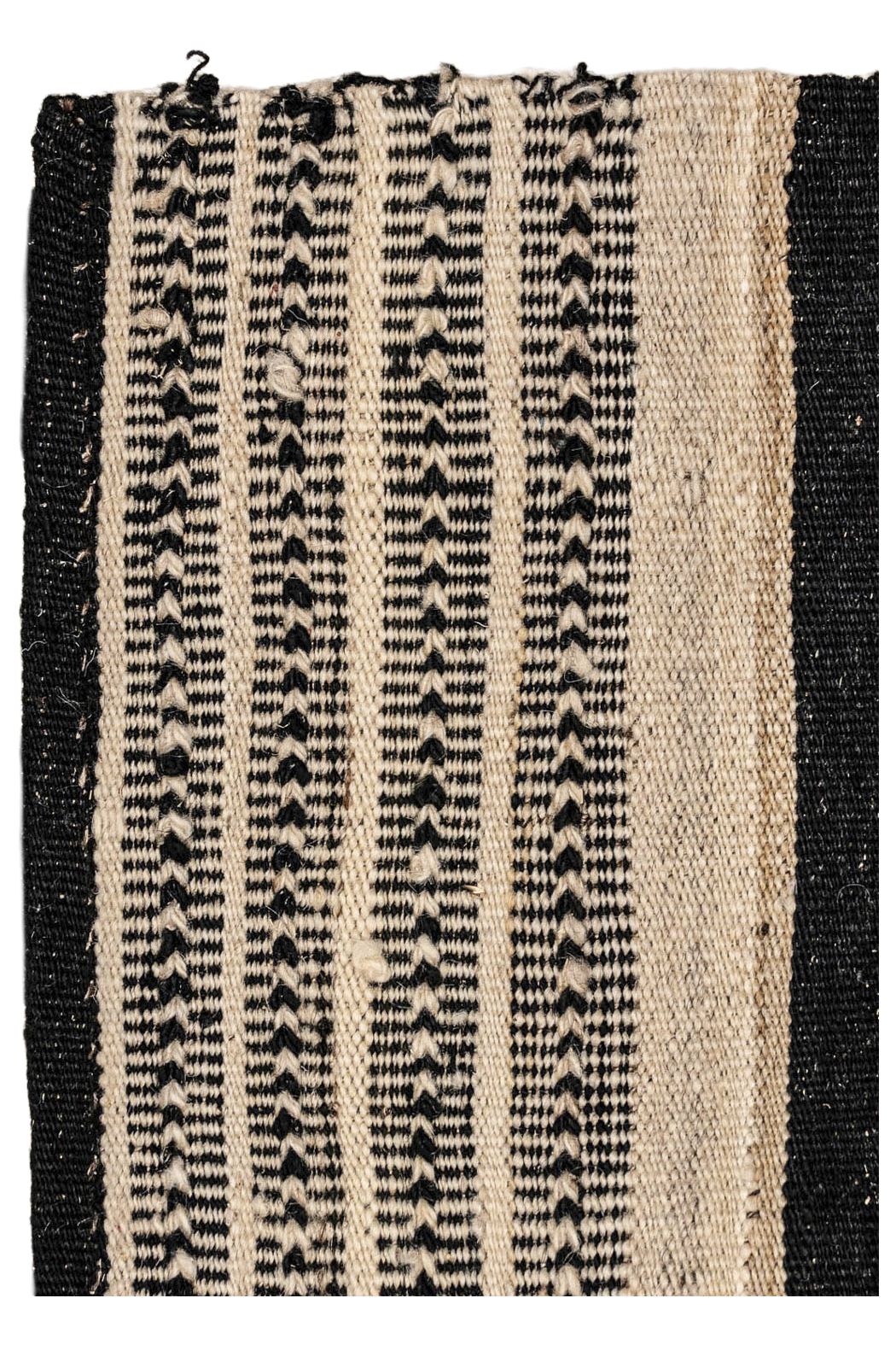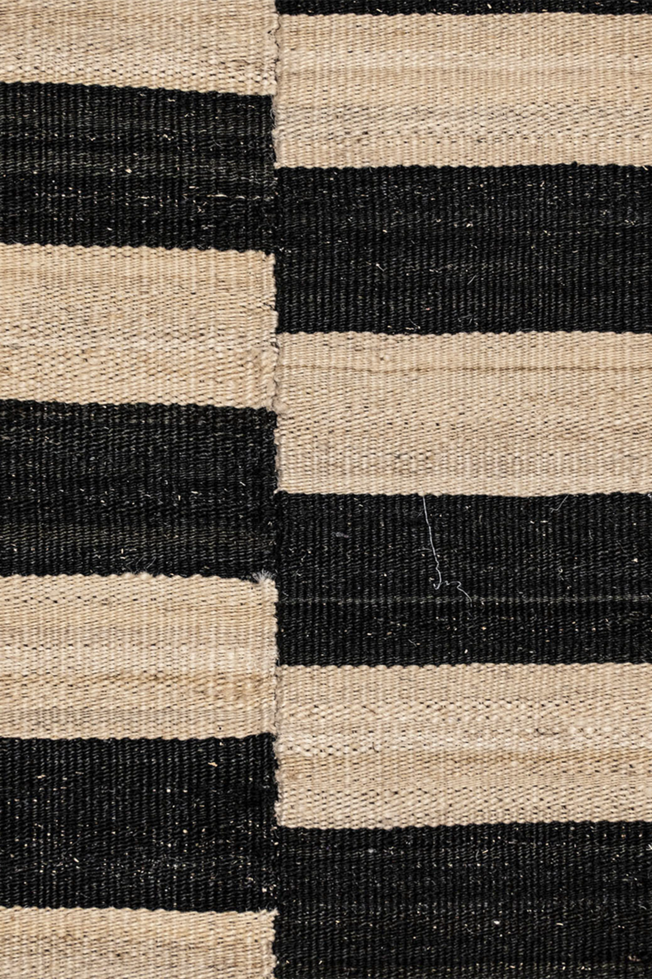 Dieser einzigartige Kelim Teppich, der aus dem Süden vom Iran stammt, wurde von Hand gewebt. Die 100% Zagroswolle, aus die der Teppich gemacht wurde ist sehr strapazierfähig und hochwertig. Die beigefarbenen und schwarzen Streifen verteilen sich gleichmäßig über den kompletten Teppich. Durch die Naturfarben wirkt der Teppich sehr leicht und elegant. Wir empfehlen Ihnen für diesen außergewöhnlichen Kelim Teppich eine Antirutsch-Unterlage, damit Sie das Teppichkunstwerk passend platzieren können. Der Teppich kann bedenklos auch auf Böden mit Fußbodenheizung gelegt werden.