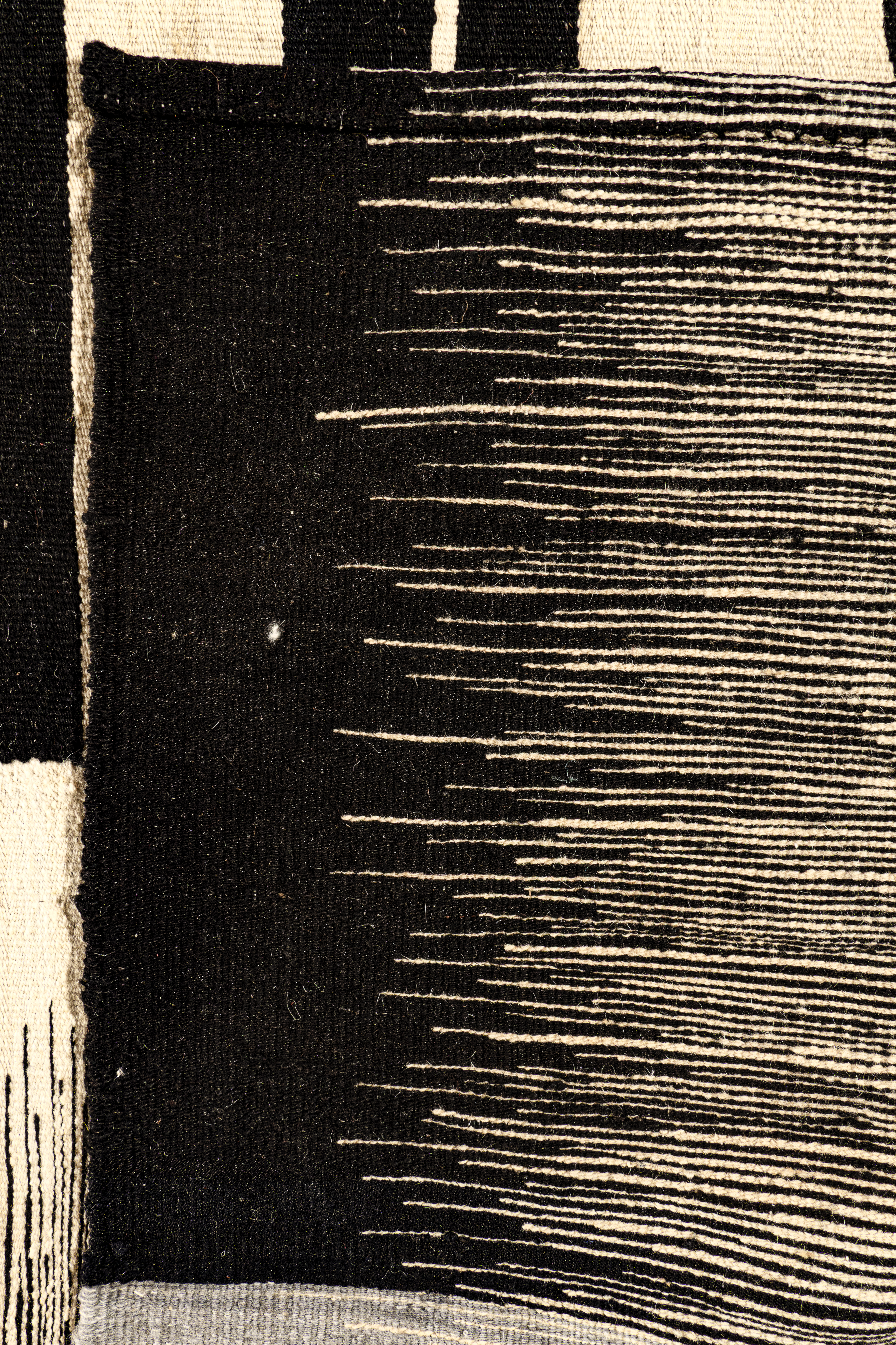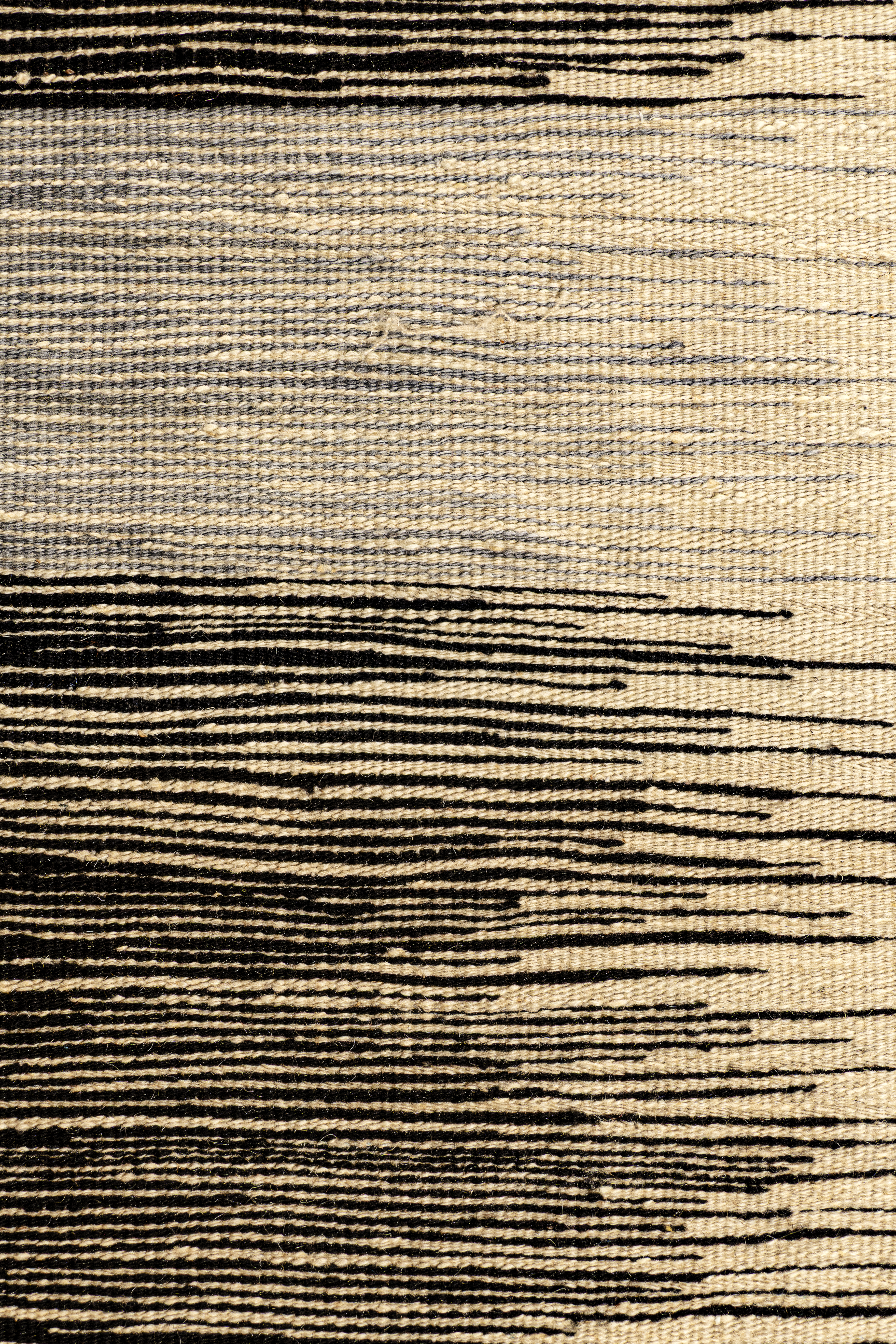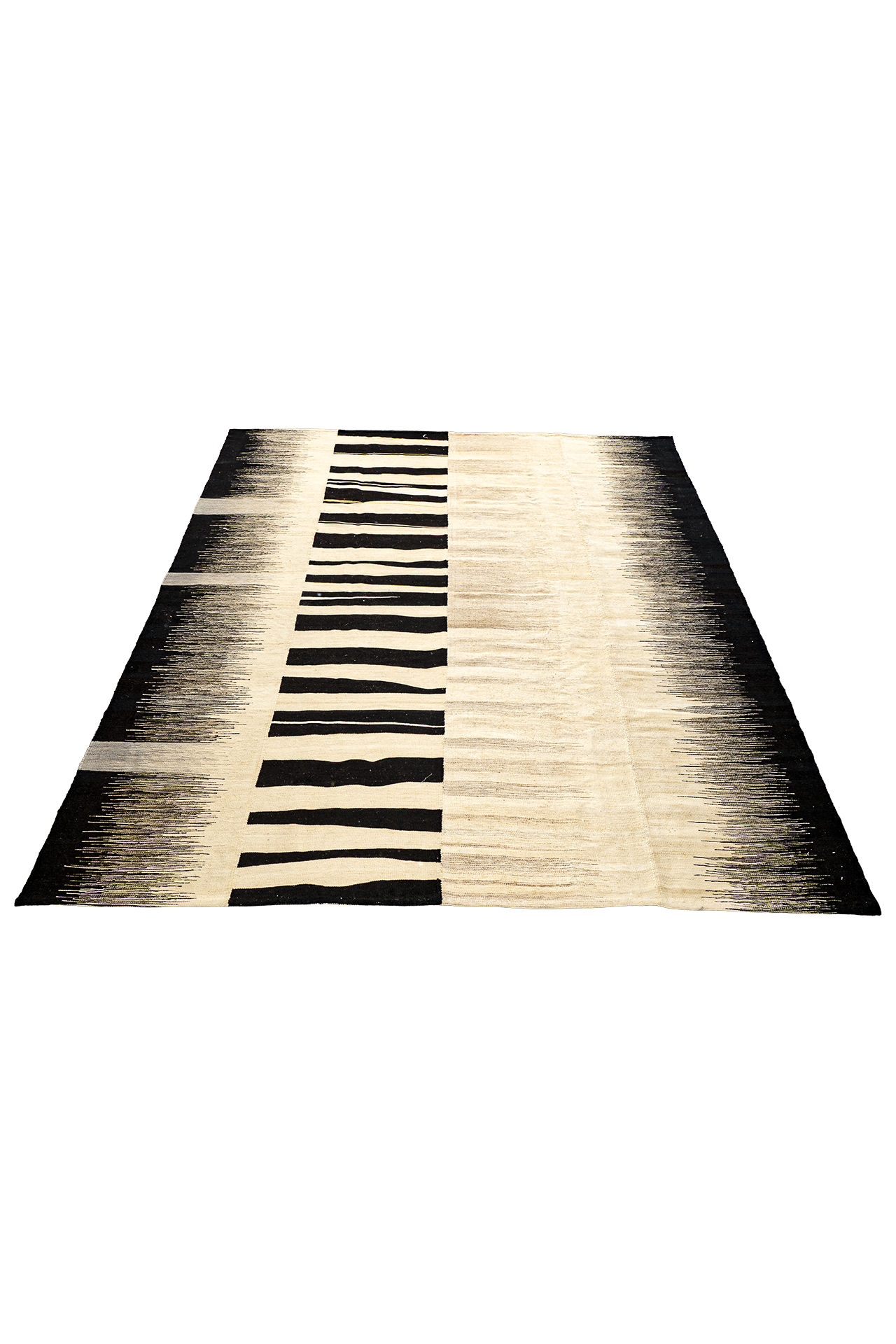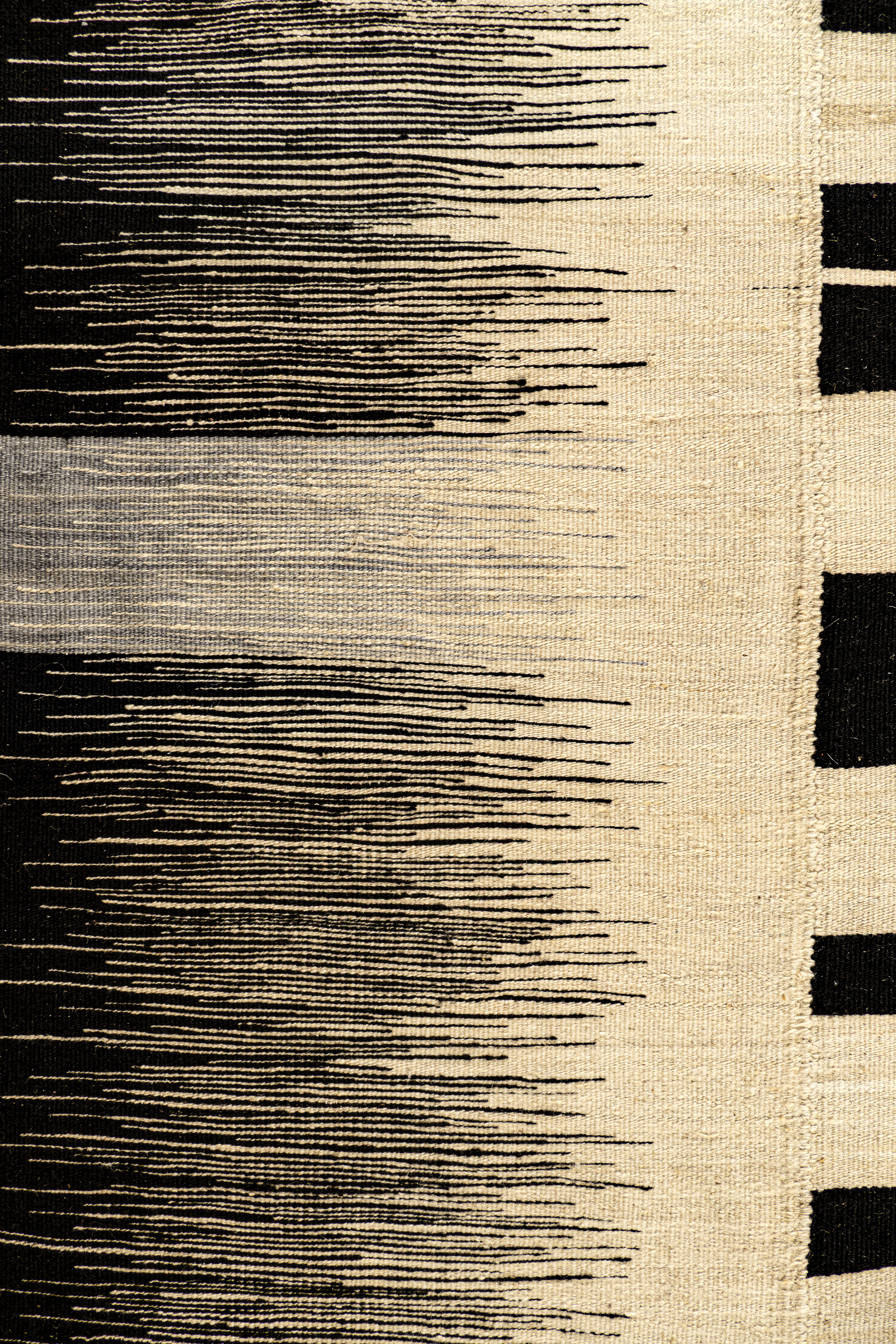 Der Kelim Graphitlicht verbindet zeitlose Nomadentradition mit einer modernen, grafischen Gestaltung. Handgewoben im Süden Irans aus robuster, handversponnener Schurwolle, zeigt er ein faszinierendes Spiel aus tiefem Schwarz und naturbelassenem Beige. Die kontrastreichen Linien erinnern an abstrahierte Landschaften und erzeugen eine spannungsvolle Balance zwischen Klarheit und Wärme. Mit Naturfarben dezent akzentuiert, bleibt der Teppich beidseitig legbar und damit besonders vielseitig. Graphitlicht ist mehr als ein Teppich – er ist ein kunstvolles Statement für Wohnräume, die Authentizität, Qualität und Design gleichermaßen schätzen.