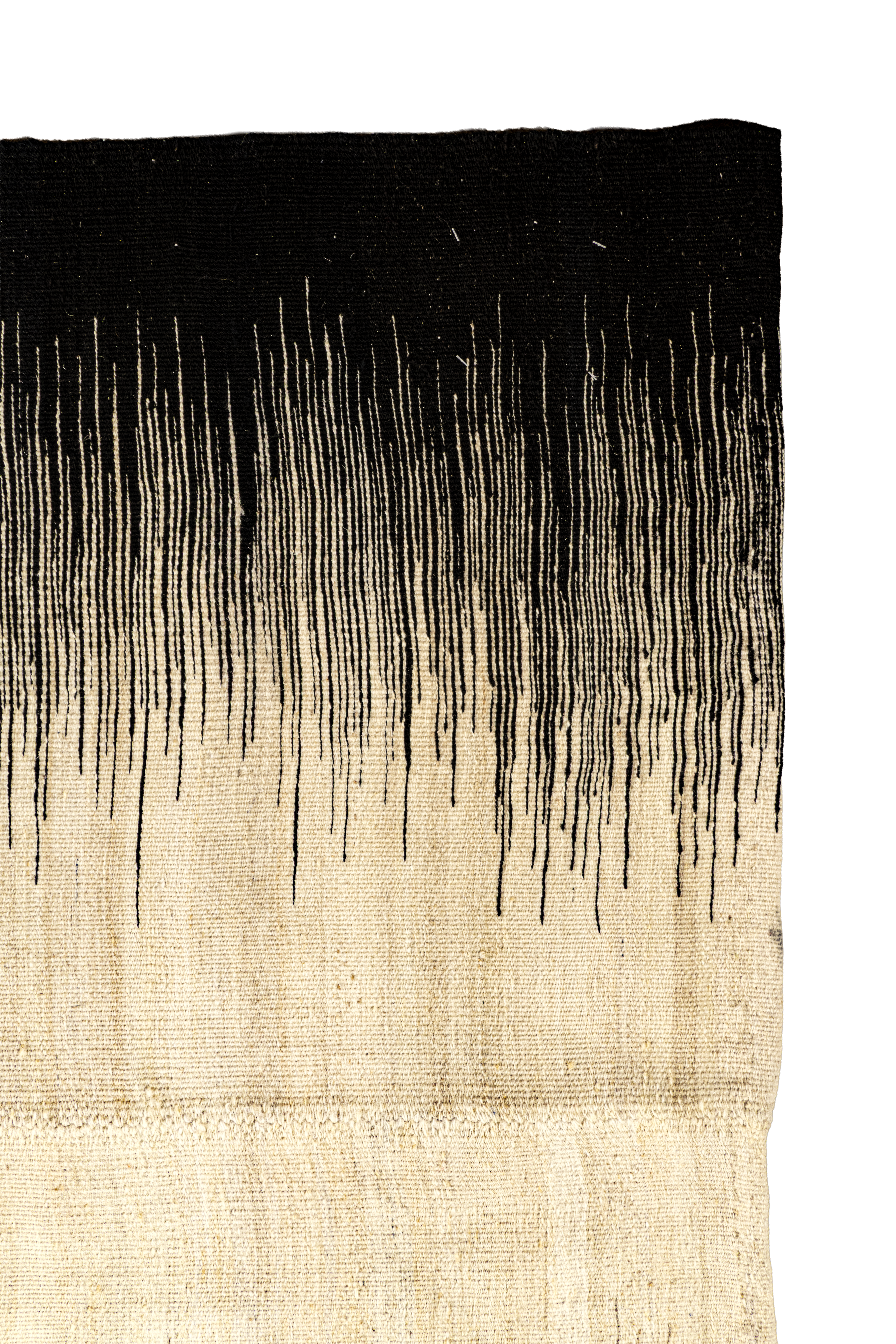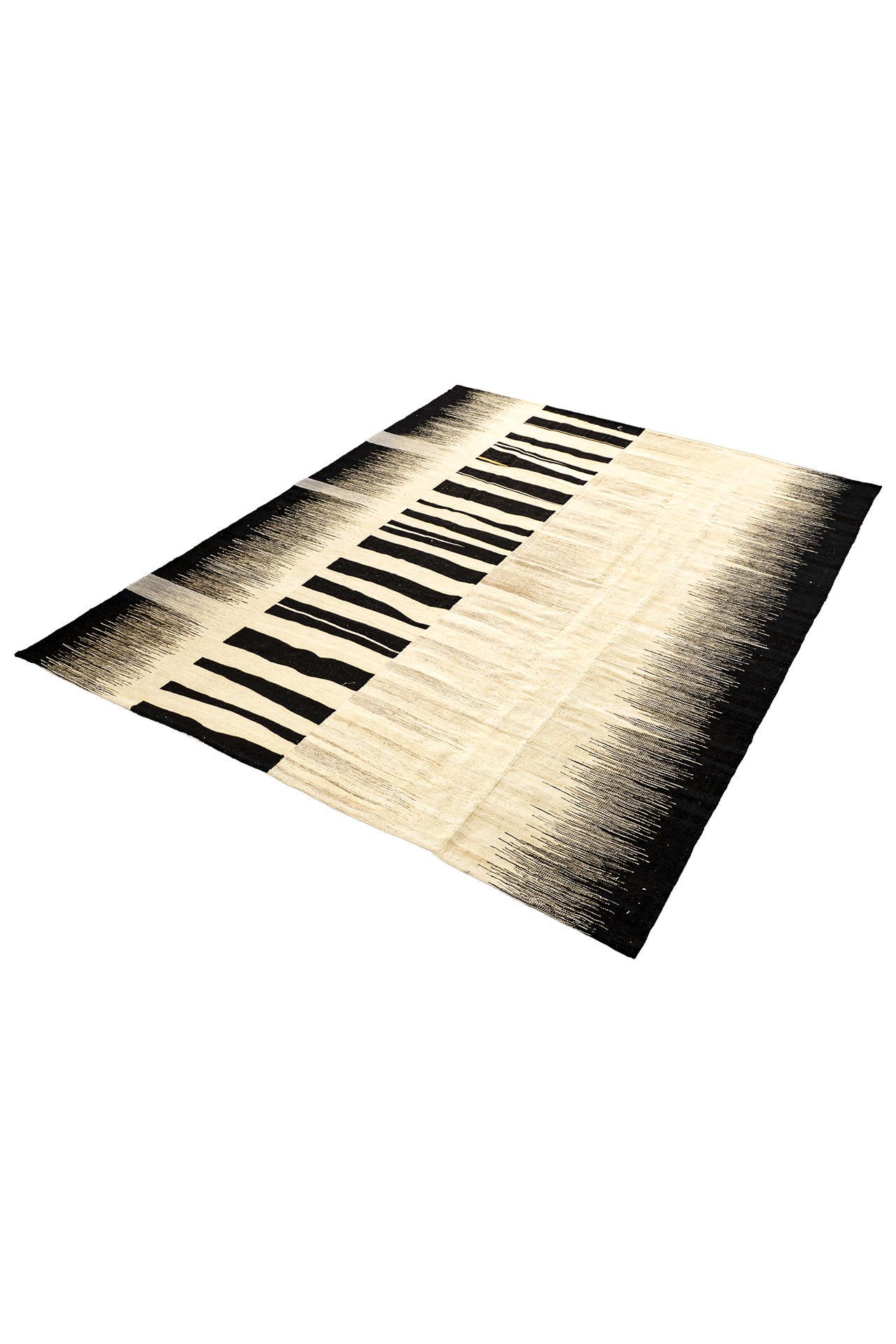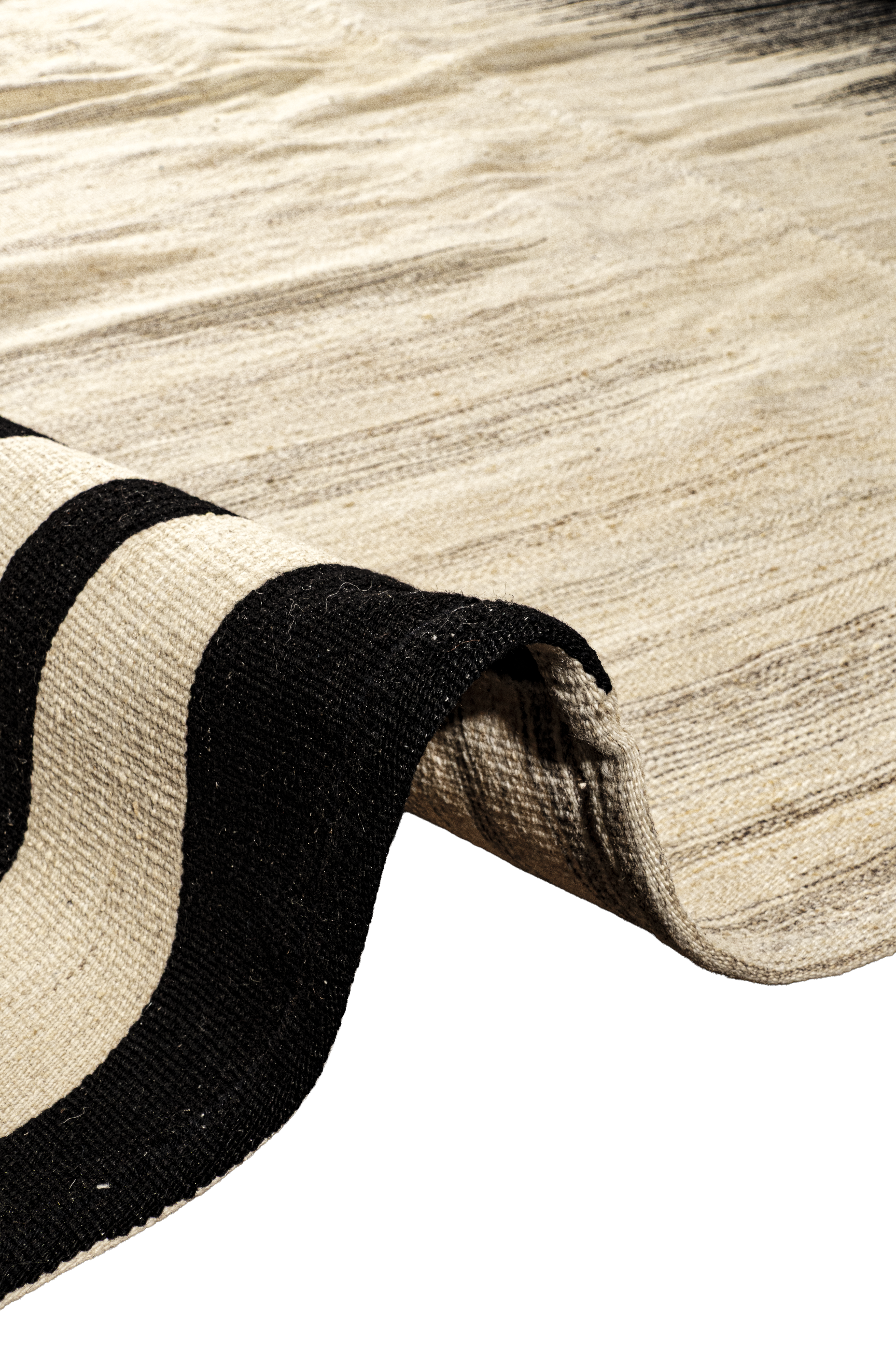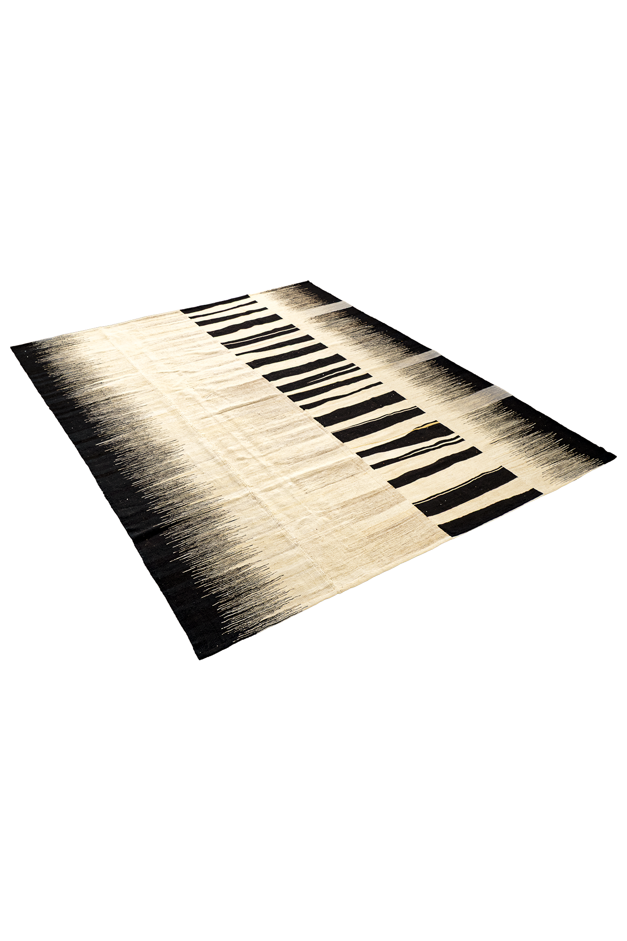 Der Kelim Graphitlicht verbindet zeitlose Nomadentradition mit einer modernen, grafischen Gestaltung. Handgewoben im Süden Irans aus robuster, handversponnener Schurwolle, zeigt er ein faszinierendes Spiel aus tiefem Schwarz und naturbelassenem Beige. Die kontrastreichen Linien erinnern an abstrahierte Landschaften und erzeugen eine spannungsvolle Balance zwischen Klarheit und Wärme. Mit Naturfarben dezent akzentuiert, bleibt der Teppich beidseitig legbar und damit besonders vielseitig. Graphitlicht ist mehr als ein Teppich – er ist ein kunstvolles Statement für Wohnräume, die Authentizität, Qualität und Design gleichermaßen schätzen.