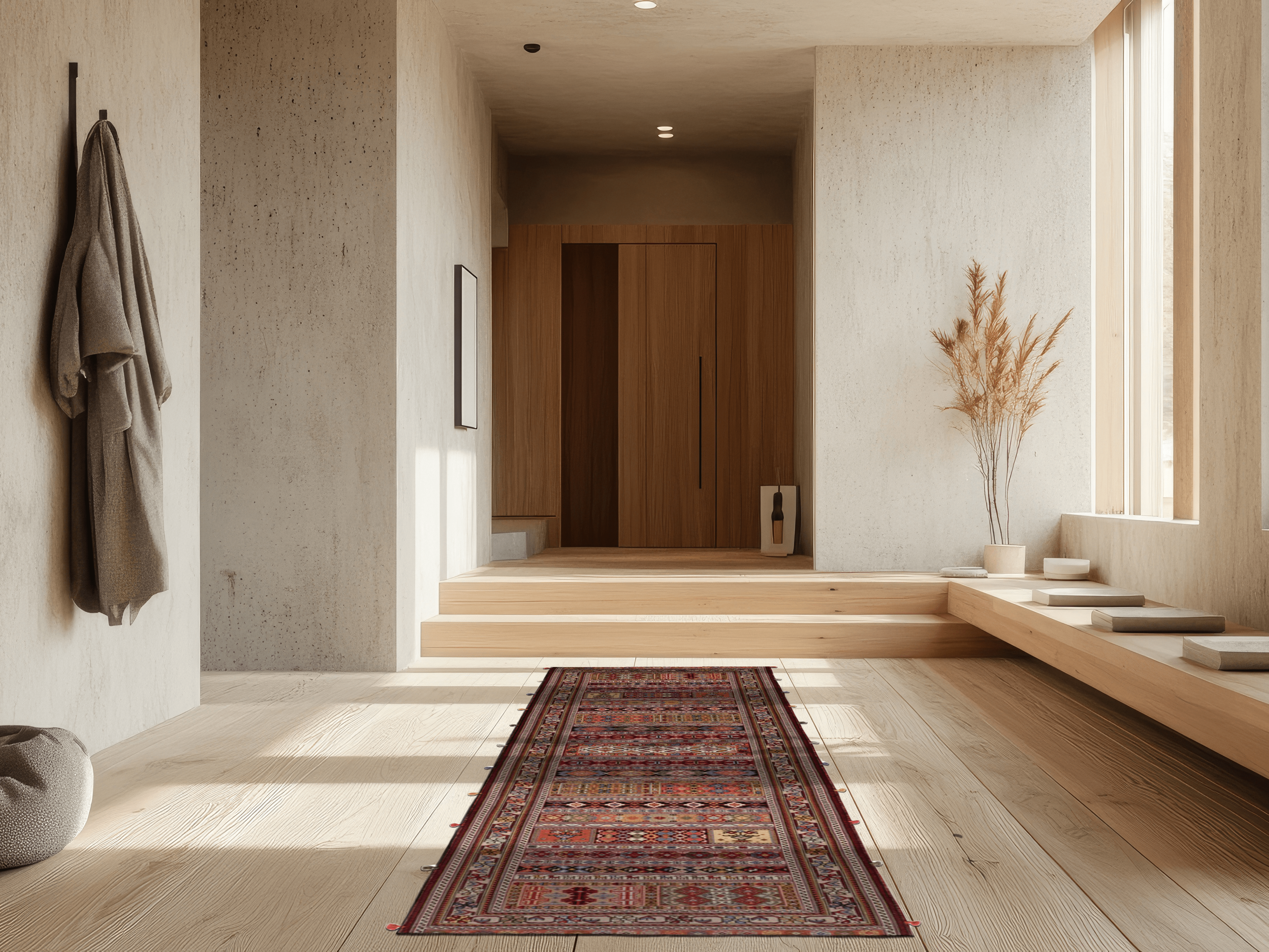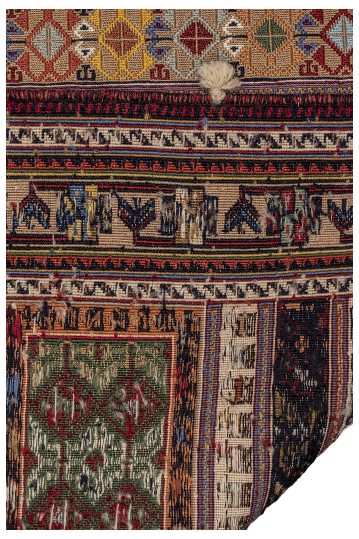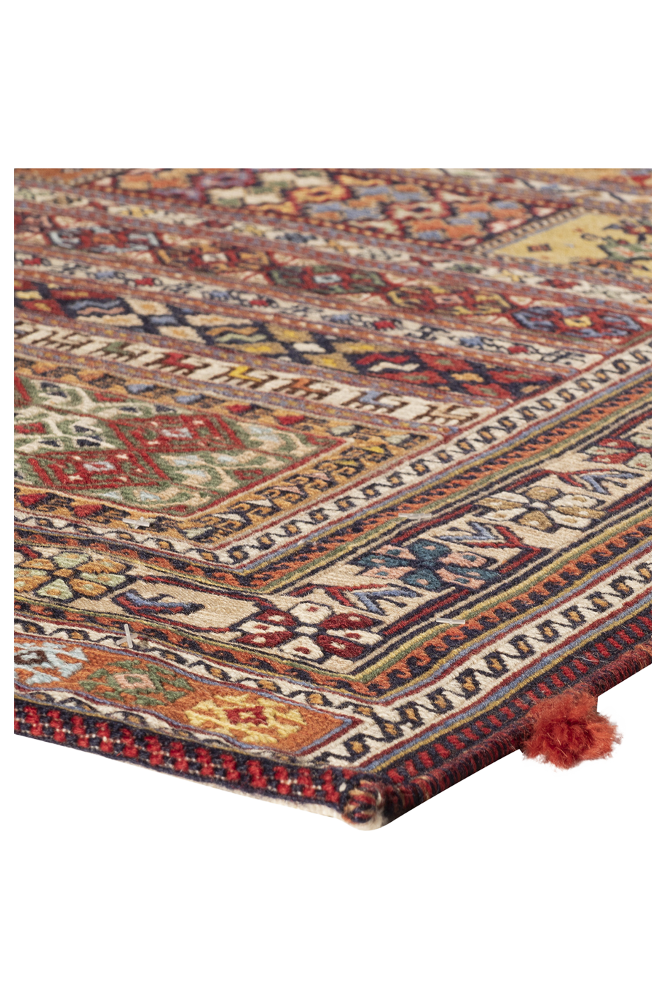 Dieser besondere, sehr fein gewebte Kelim Läufer aus dem Iran, hat einen ausgefallenen Look. Er ist aus reiner Zagroswolle gewoben und die Wolle wurde mit Naturfarben gefärbt. Die traditionellen Muster geben dem Läufer eine wertige und einzigartige Ausstrahlung. Die kleinen Wollbüschel am Rand des Teppichunikates, wurden hineingeknüpft. Der Läufer passt sehr gut in Wohneinrichtungen mit viel Holz oder alternativ in sehr moderne Wohnräume. Ebenfalls beliebt sind die flachen Teppichläufer für den etwas ausgefalleneren Bohemien Wohnstil.