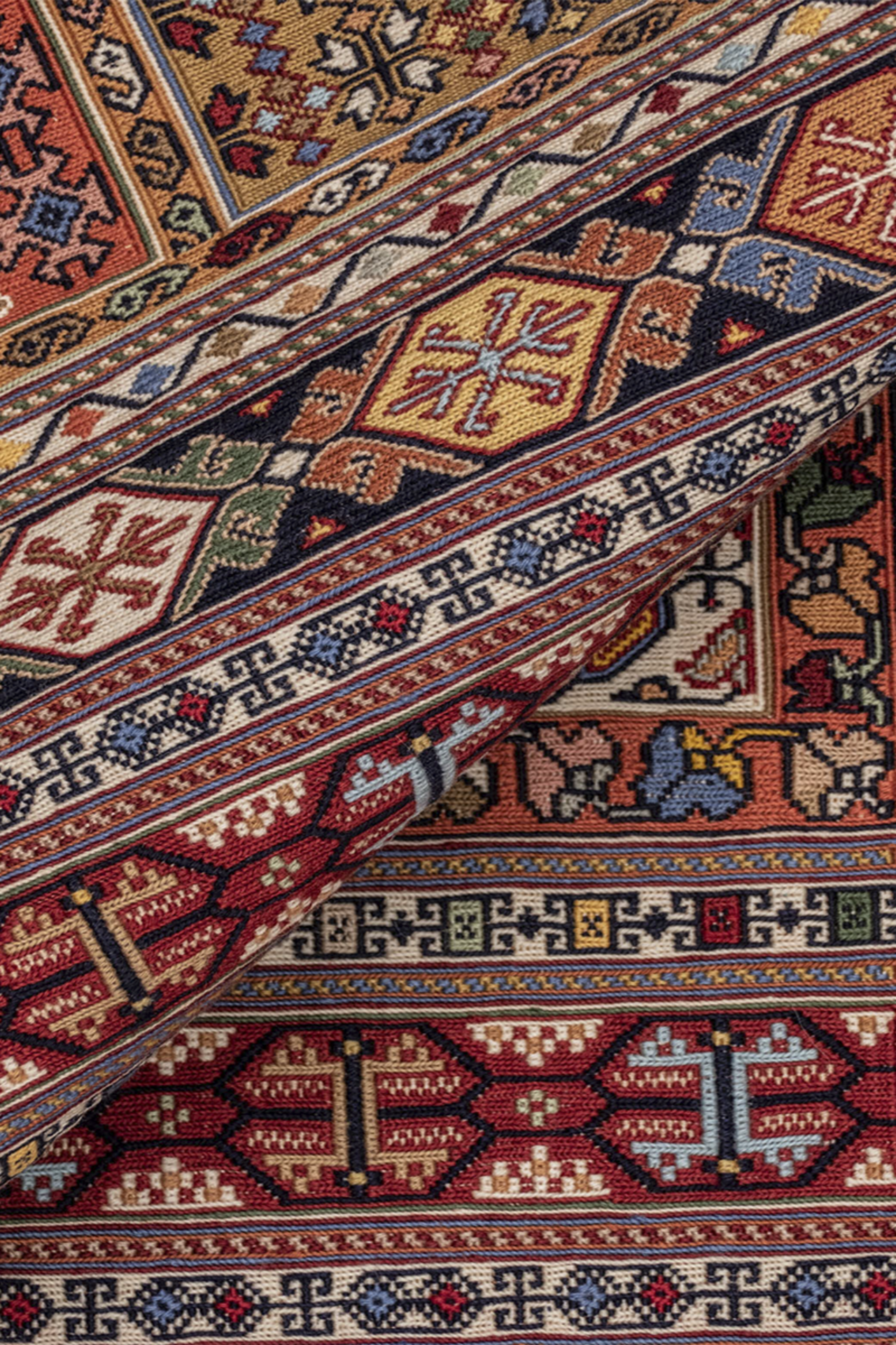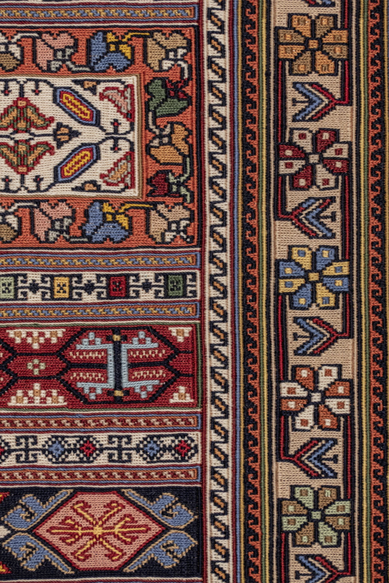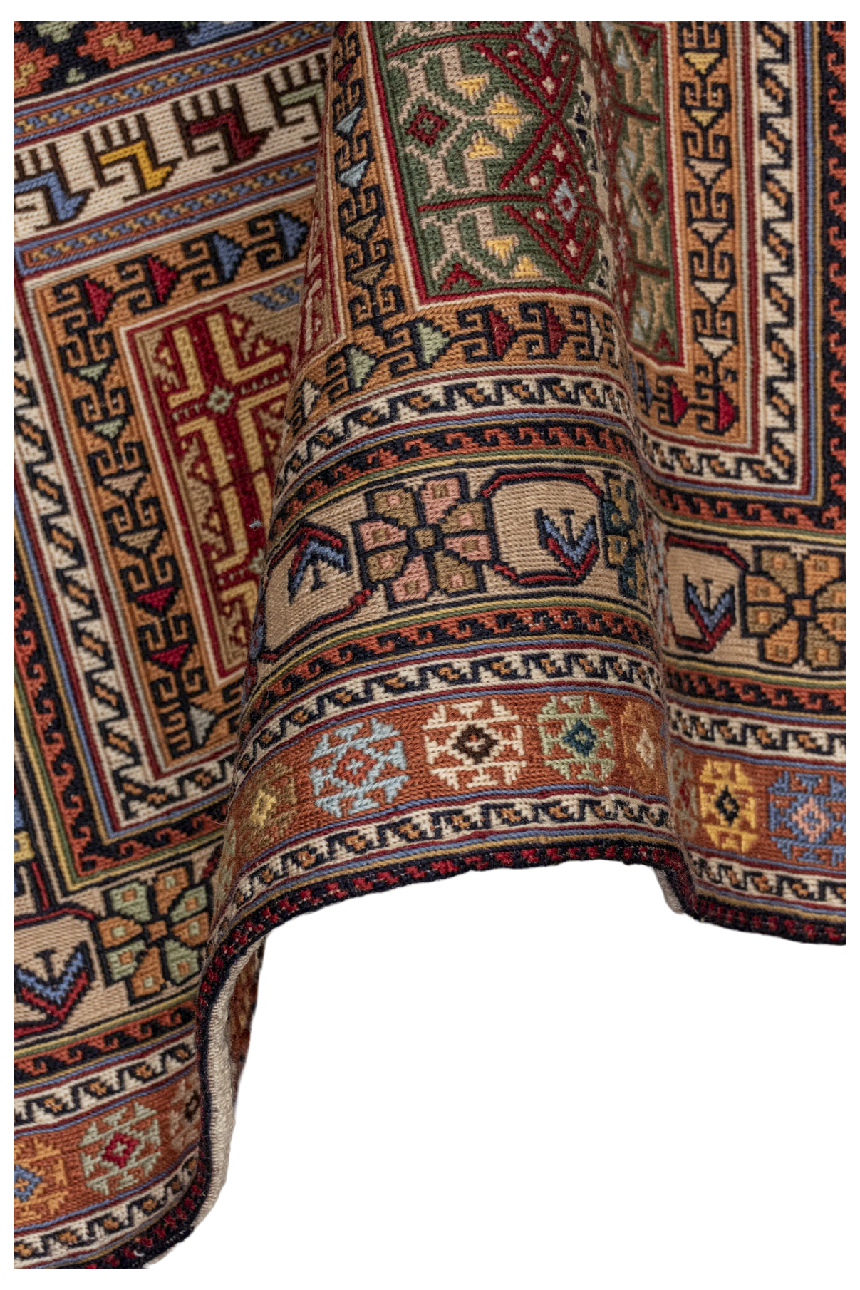 Unsere Kelim Teppiche sind entweder von Hand gewoben, geknüpft oder in Soumakh-Technik teils gewoben und teils geknüpft. Wir empfehlen Ihnen einen Staubsauger mit flacher Düse zu benutzen. Dies ist schonender für den handgemachten Teppich. Da es sich bei diesem Teppich um ein reines Naturprodukt handelt, können Flecken generell sehr einfach und unkompliziert entfernt werden. Einfach den Fleck mit Neutralseife und Wasser rauswaschen. Auf keinen Fall sollten Sie zu chemischen Putzmitteln greifen, da der Teppich aus reinen Naturmaterialien besteht und die Wolle dann angegriffen wird. Wenn Sie hartnäckigere Flecken haben, oder Sie den Teppich nach einiger Zeit grundreinigen möchten, dann können die handgeknüpften Kelim Teppiche gewaschen werden. Wir bieten diesen Teppichwasch-Service für unsere Teppiche an. Besonders wichtig ist bei den flachen Kelim-Teppichen die Verwendung einer rutschfesten Teppichunterlage. Ihr Boden und der Teppich werden dadurch geschützt und Sie können auf dem Teppich nicht ausrutschen. Da Kelim Teppiche sehr flach sind und dadurch gerne rutschen, ist eine Antirutsch Unterlage ein Muss.