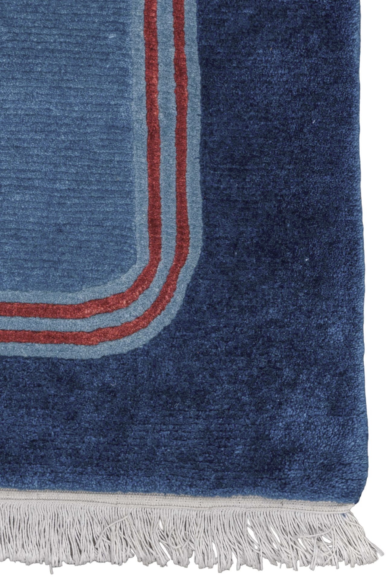 Ein wundervoller Nepal Teppich, der durch seine klassischen Zeichnungen auffällt. Die beste, von Hand versponnene, tibetische Hochlandwolle wurde mit Indigo Naturfarben gefärbt. Aus diesem Grund leuchtet das Unikat in seinen unglaublich schönen Blautönen. Die langen Fransen am Rand verleihen dem Teppich seinen gewissen Charme und lassen das Teppichunikat sehr modern wirken. Deshalb passt der Teppich sehr gut in eine moderne Wohneinrichtung, aber auch in einen etwas rustikaleren Wohnstil. Der Nepal Designer Teppich ist bedenklos für Böden mit integrierter Fußbodenheizung geeignet. Damit der Teppich auf glattem Boden nicht rutscht, empfehlen wir Ihnen eine rutschfeste Teppichunterlage.