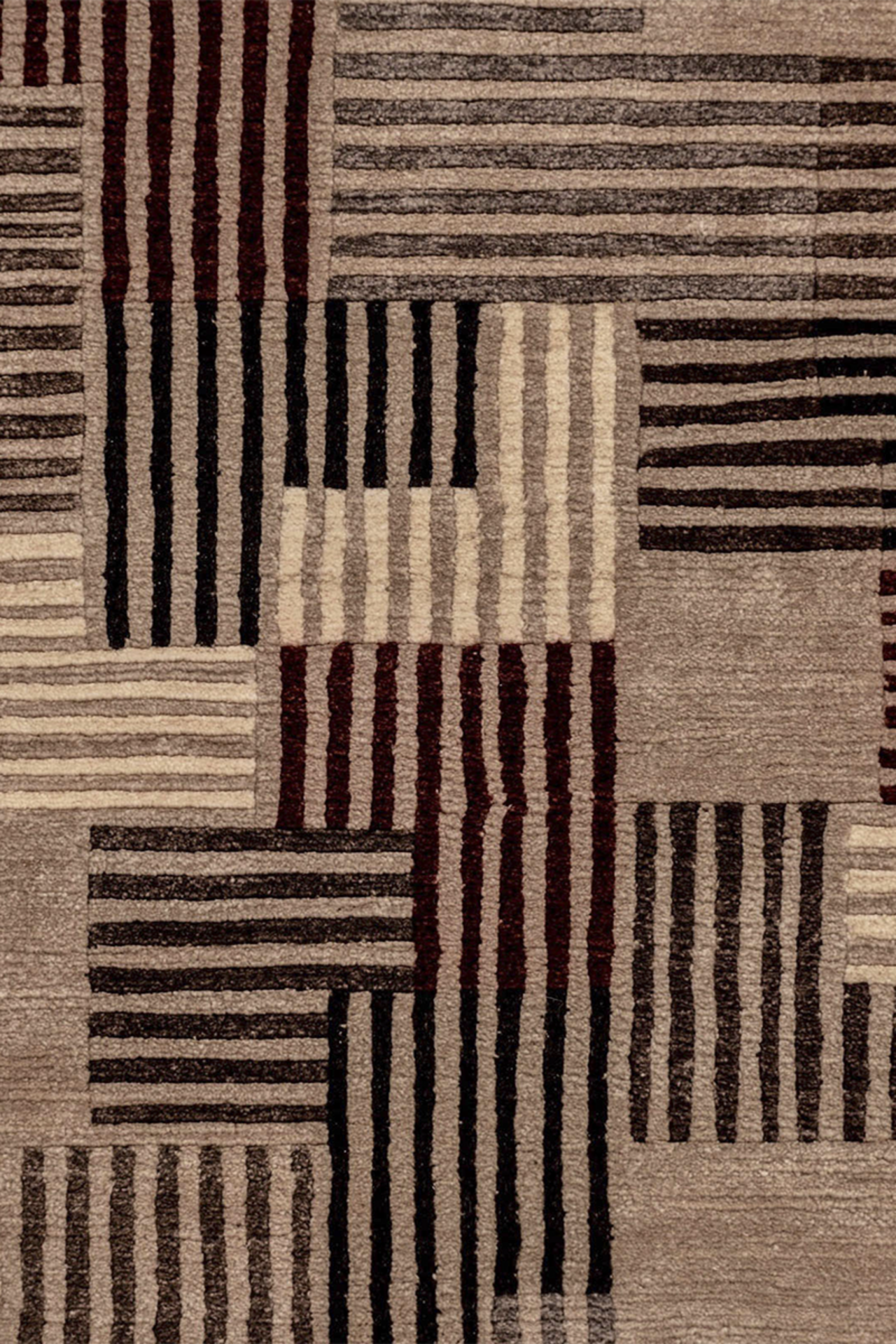Dieser elegante Nepal Designer Teppich erinnert an ein modernen Teppich und wirkt durch sein Tetris Muster sehr verspielt. Das Unikat besteht aus bester, von Hand versponnener, tibetischer Hochlandwolle und ist sehr strapazierfähig. Die verschiedenen Farben machen den Teppich einzigartig und verleihen Ihnen eine warme und gemütliche Atmosphäre in Ihrem Zuhause. Der handgeknüpfte Teppich ist bedenklos für Böden mit Fußbodenheizung geeignet. Um das Rutschen auf glattem Boden zu verhindern, empfehlen wir Ihnen eine rutschhemmende Unterlage.