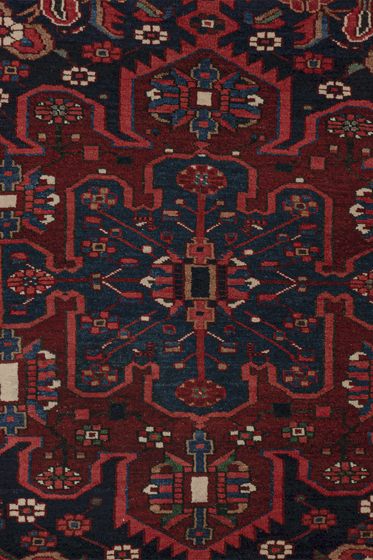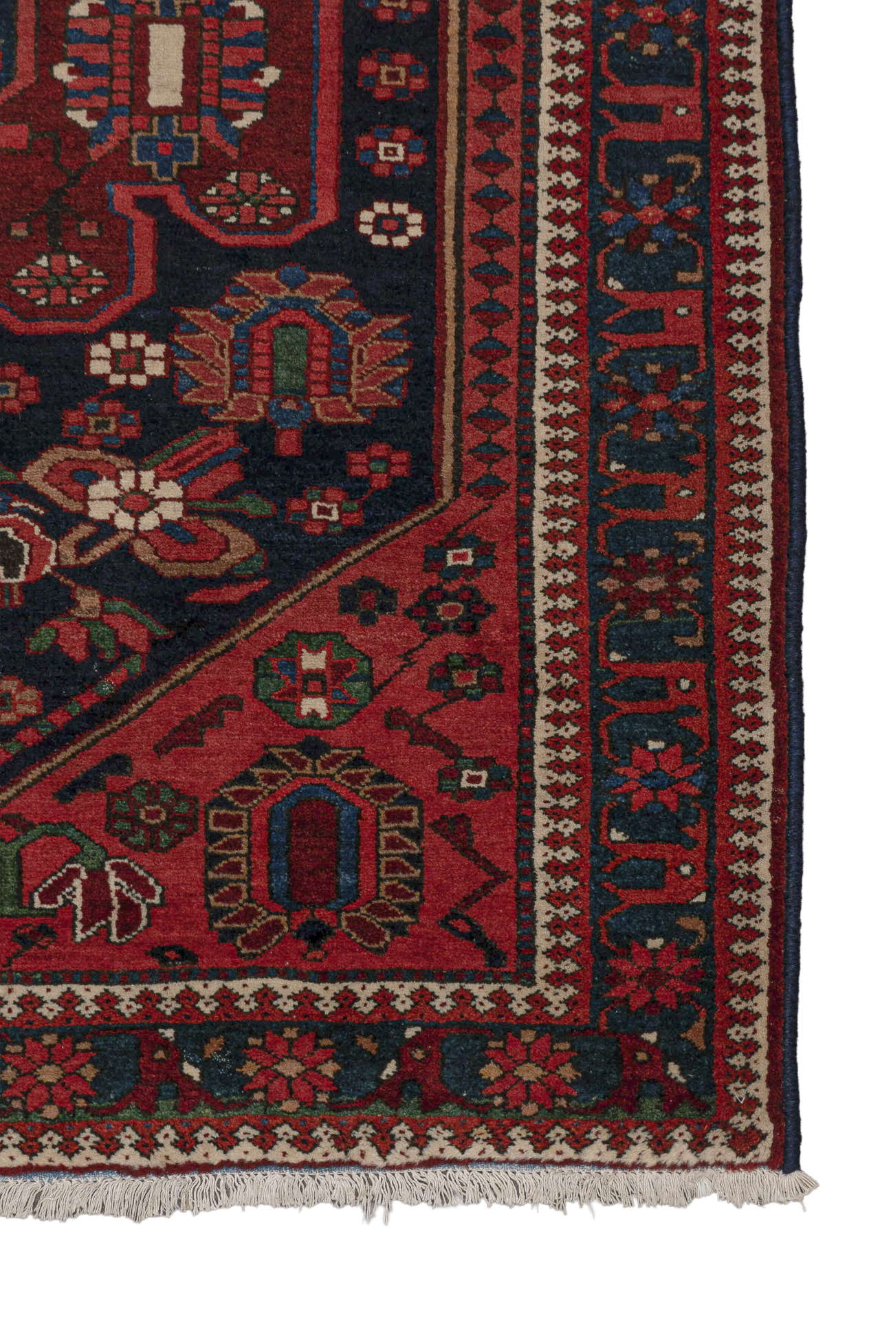 Dieser besondere Orientteppich Bachtiar ist ein alter Orientteppich aus der Region Bachtiar. Bachtiar liegt auf halbem Weg zwischen Isfahan und dem Persischen Golf im Iran. Das schöne Unikat ist aus reiner Schurwolle und von Hand geknüpft. In der Mitte des Teppichs befindet sich ein schön gezeichnetes Medaillon mit Rosetten. Die smaragdgrünen Farbelemente, die sich immer wieder in dem Teppich finden, sind selten in einem klassischen Orientteppich zu finden, hier aber sehr schön in den Teppich geknüpft. Heute werden Orientteppiche gerne für hochmoderne Interieur Konzepte genutzt und sind somit echte Statement Pieces.
