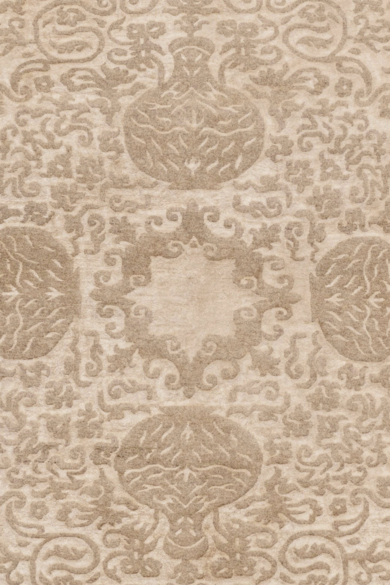 Elysar gehört zur Reihe der Jordan Masterpieces – eine Auswahl außergewöhnlicher Teppiche, die innerhalb der Jordan Collection kuratiert wurden. Handgeknüpft aus feiner Merinowolle und schimmernder Naturseide, verbindet Elysar klassische Ornamentik mit moderner Leichtigkeit. Das große Medaillon ruht wie eine Spiegelung im Sand, eingebettet in ein feines, sich auflösendes Dekor. Sanfte Verläufe in Beige, Creme und seidigem Licht verleihen dem Teppich Tiefe und eine ruhige, fast schwebende Ausstrahlung. Elysar ist mehr als ein Teppich – er ist ein textiles Kunstwerk mit stiller Strahlkraft.