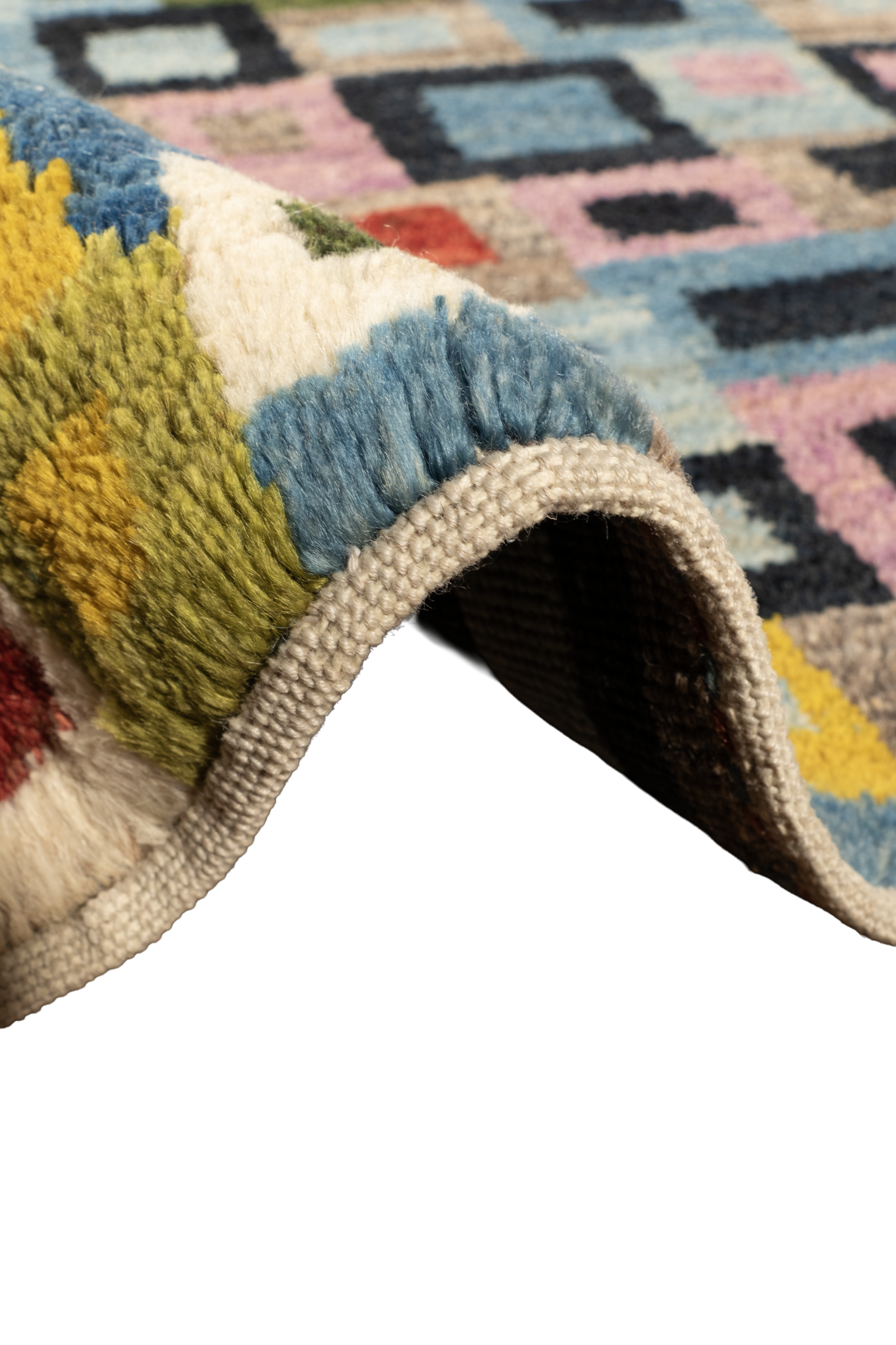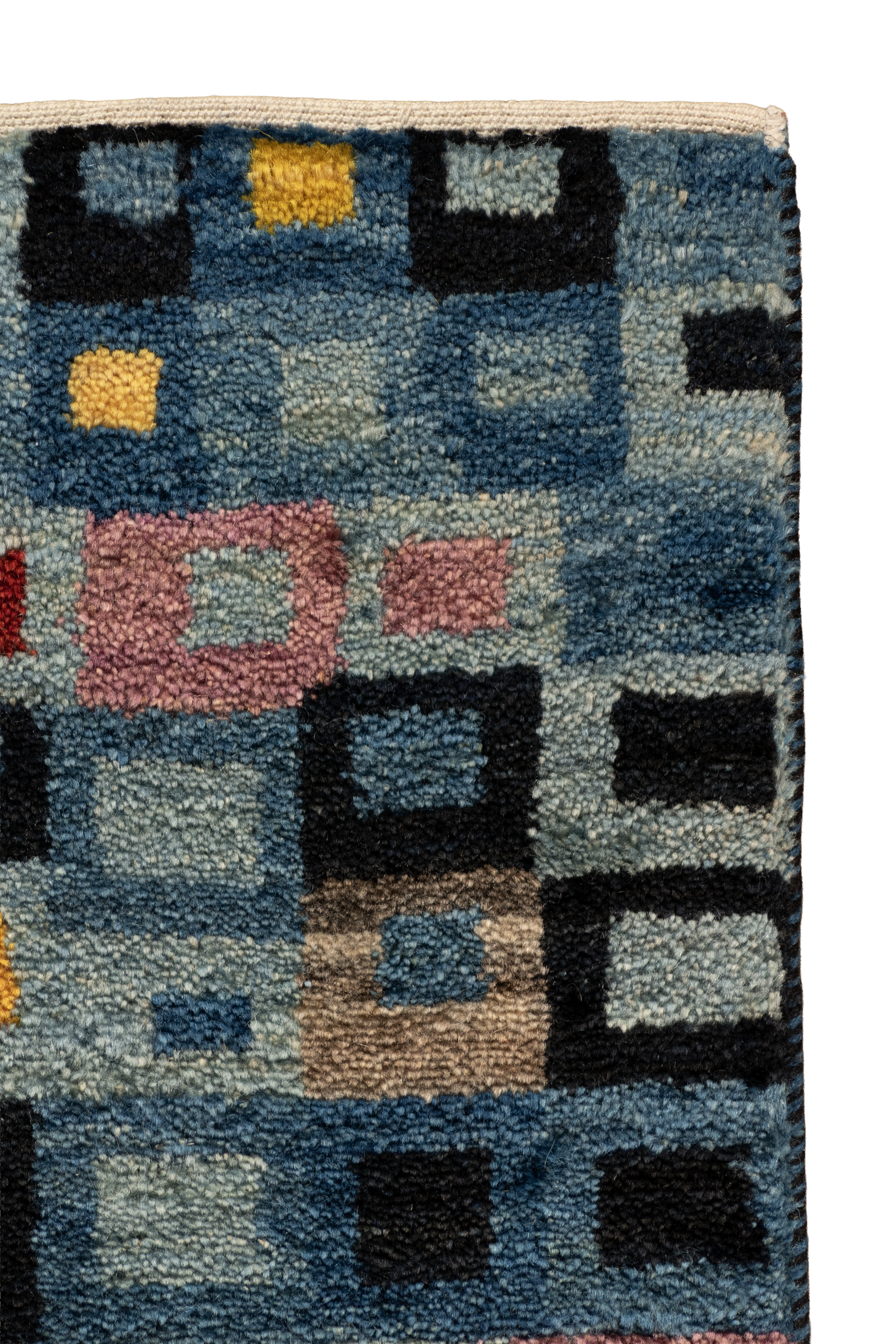 Dieser handgeknüpfte Gabbeh Teppichläufer aus dem Südiran ist ein farbenfrohes Unikat aus reiner Schurwolle, gefärbt mit Naturfarben aus Pflanzen und Rinden. Die harmonischen Nuancen in Blau, Lila und Hellgrün erinnern an ein lebendiges Mosaik und bringen Charakter und Leichtigkeit in jeden Raum. Jeder Teppich entsteht in reiner Handarbeit: Die Nomadenfrauen knüpfen inspiriert von Natur, Himmel und Licht. Das Ergebnis ist ein künstlerisches Einzelstück mit Seele, langlebig, pflegeleicht und absolut einzigartig.